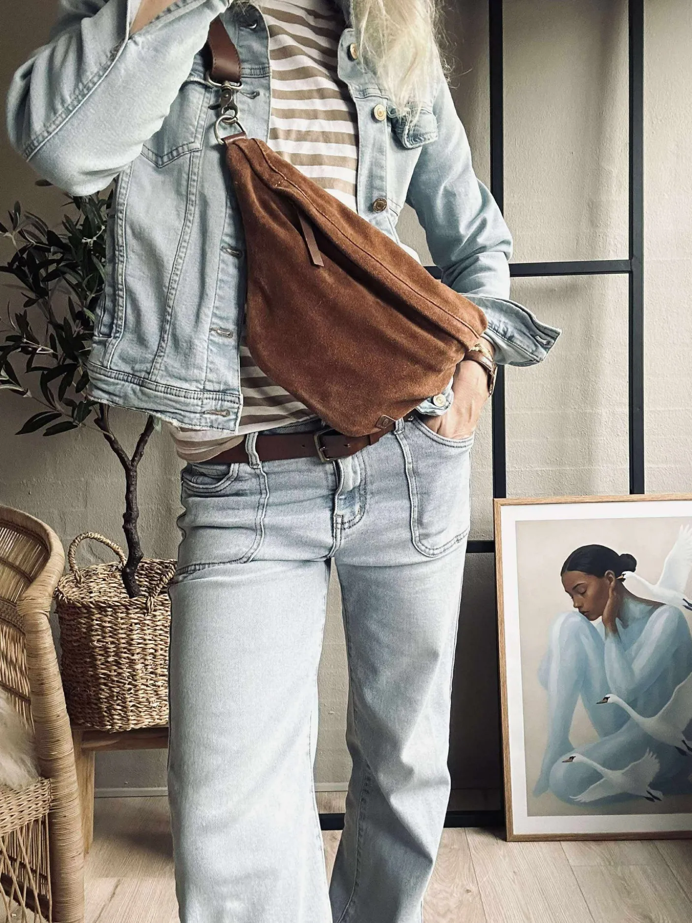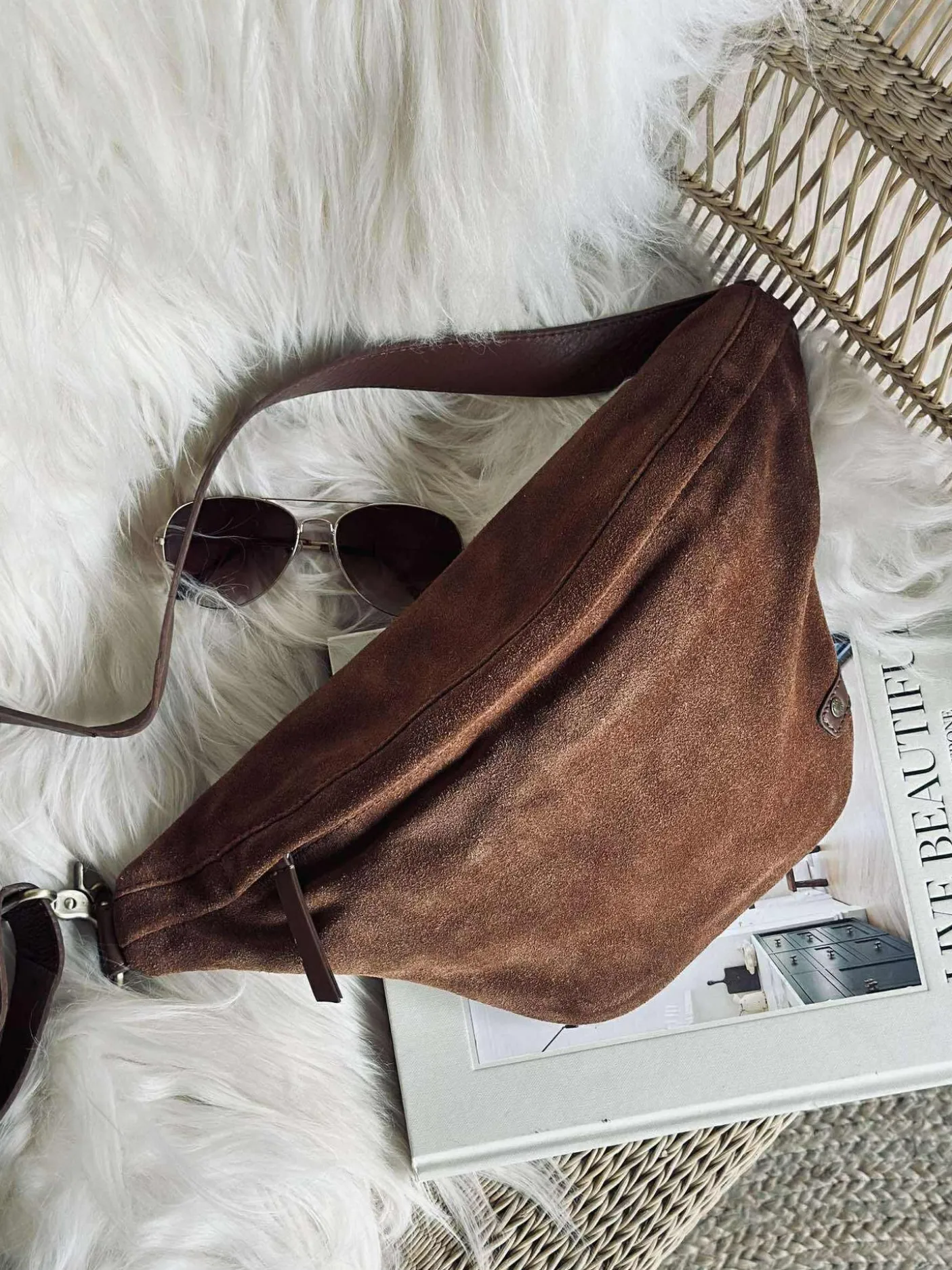 Opgrader din garderobe med denne stilfulde og funktionelle bumbag i ruskind, der kombinerer mode og praktik på elegant vis.