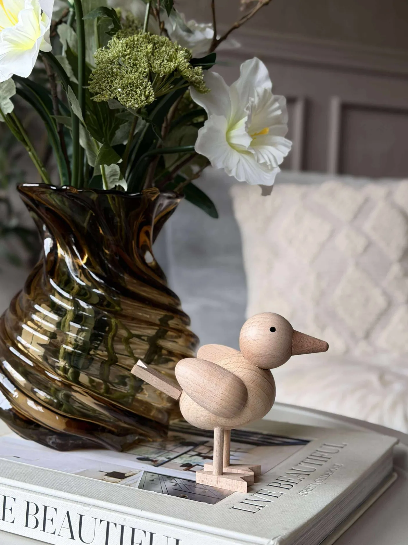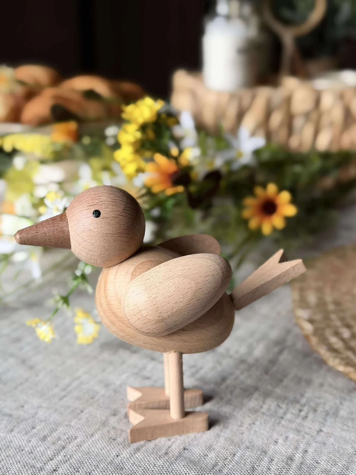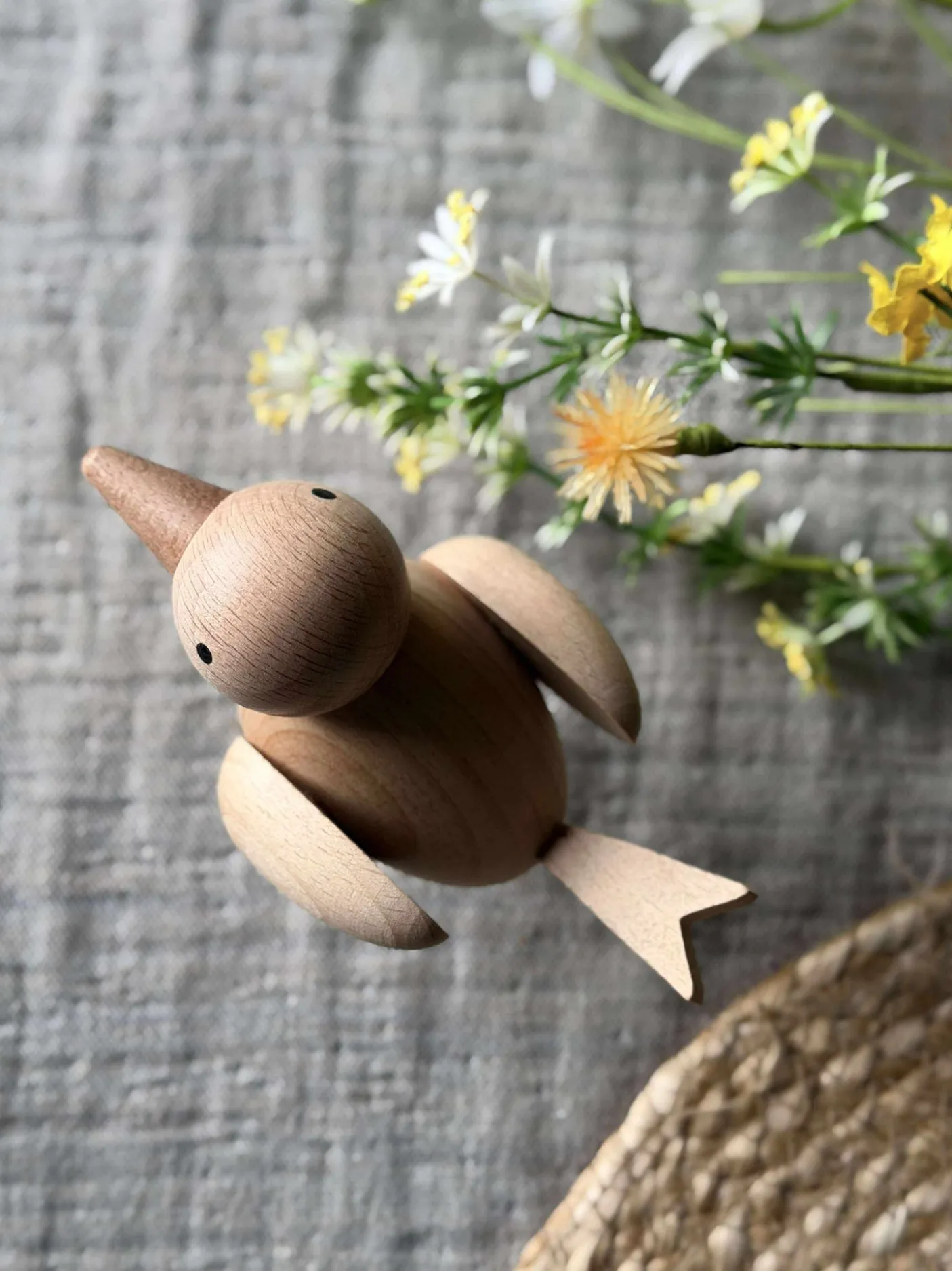 Træfiguren fugl er skabt af ægte bøgetræ i naturfarve, hvilket giver en varm og indbydende atmosfære til ethvert rum. Det naturlige materiale tilføjer en autentisk og tidløs charme, der komplementerer forskellige indretningsstile. Bøgetræets robusthed sikrer langvarig holdbarhed, mens den naturlige farve fremhæver træets unikke åretegninger og tekstur, hvilket gør hver figur til et individuelt kunstværk.