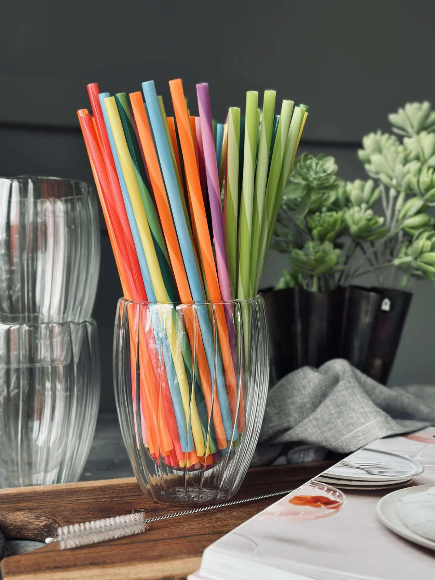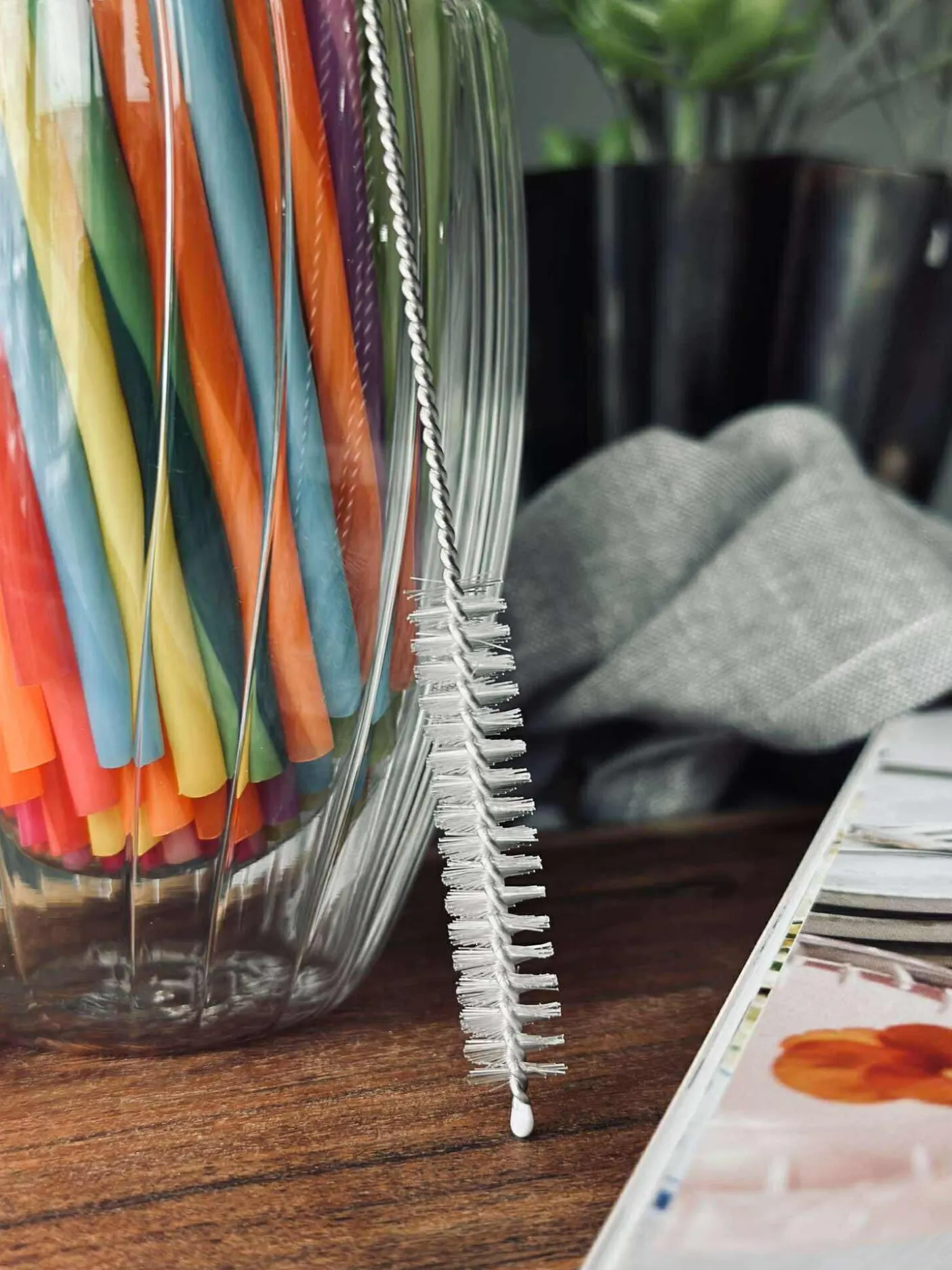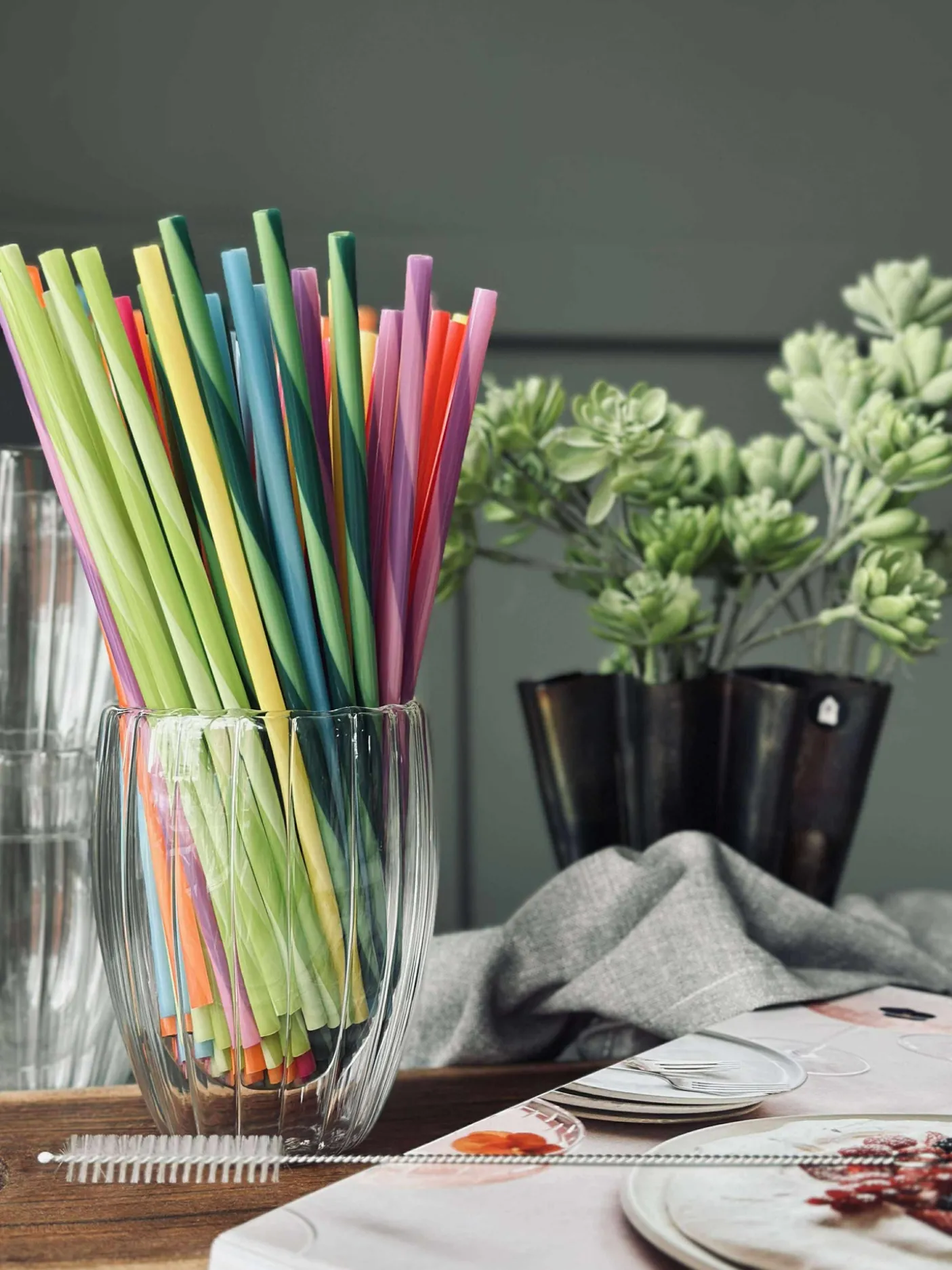 Genanvendelige sugerør med børste til rengøring.