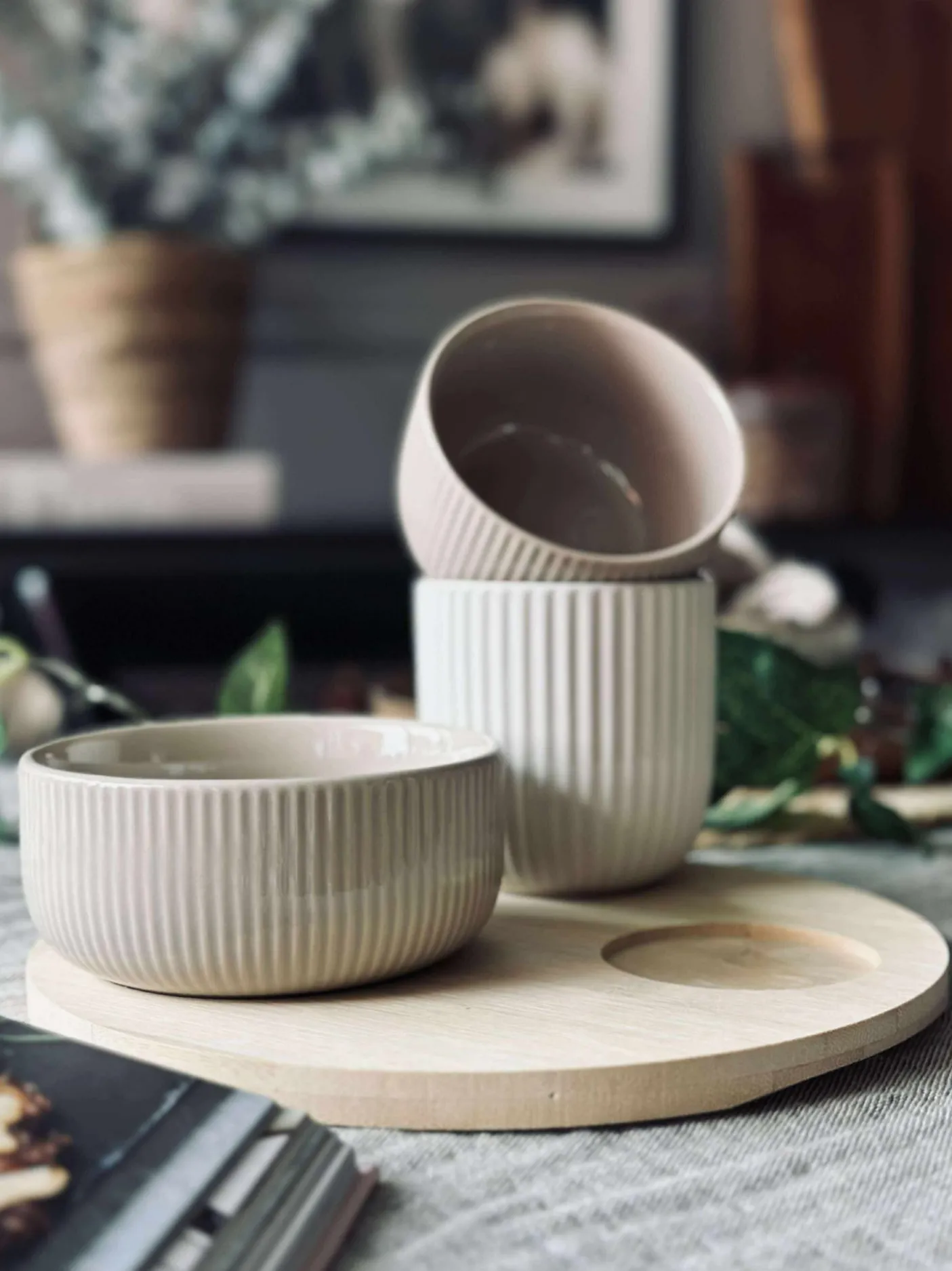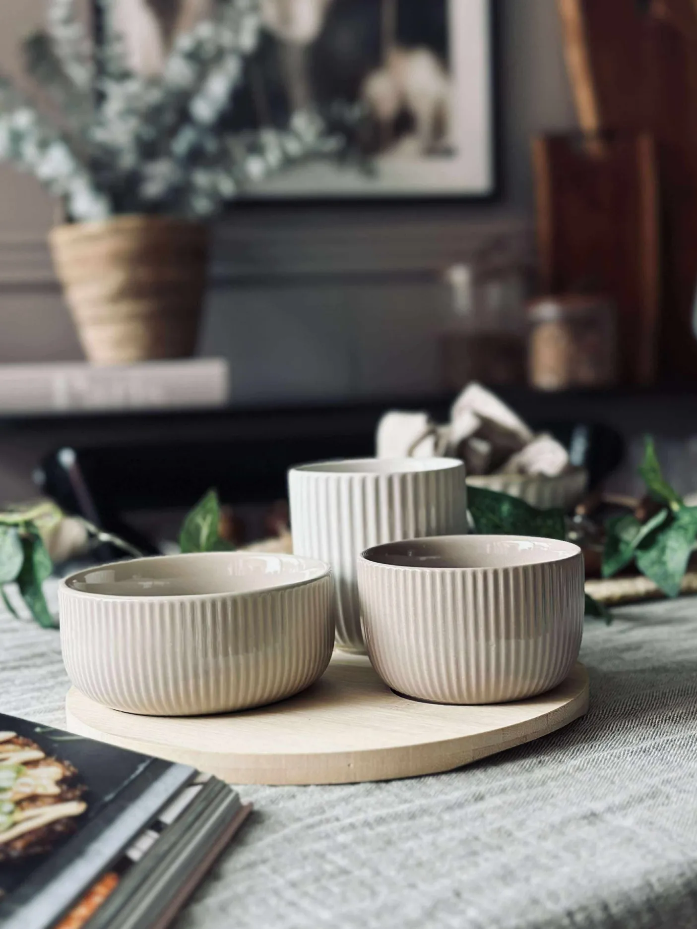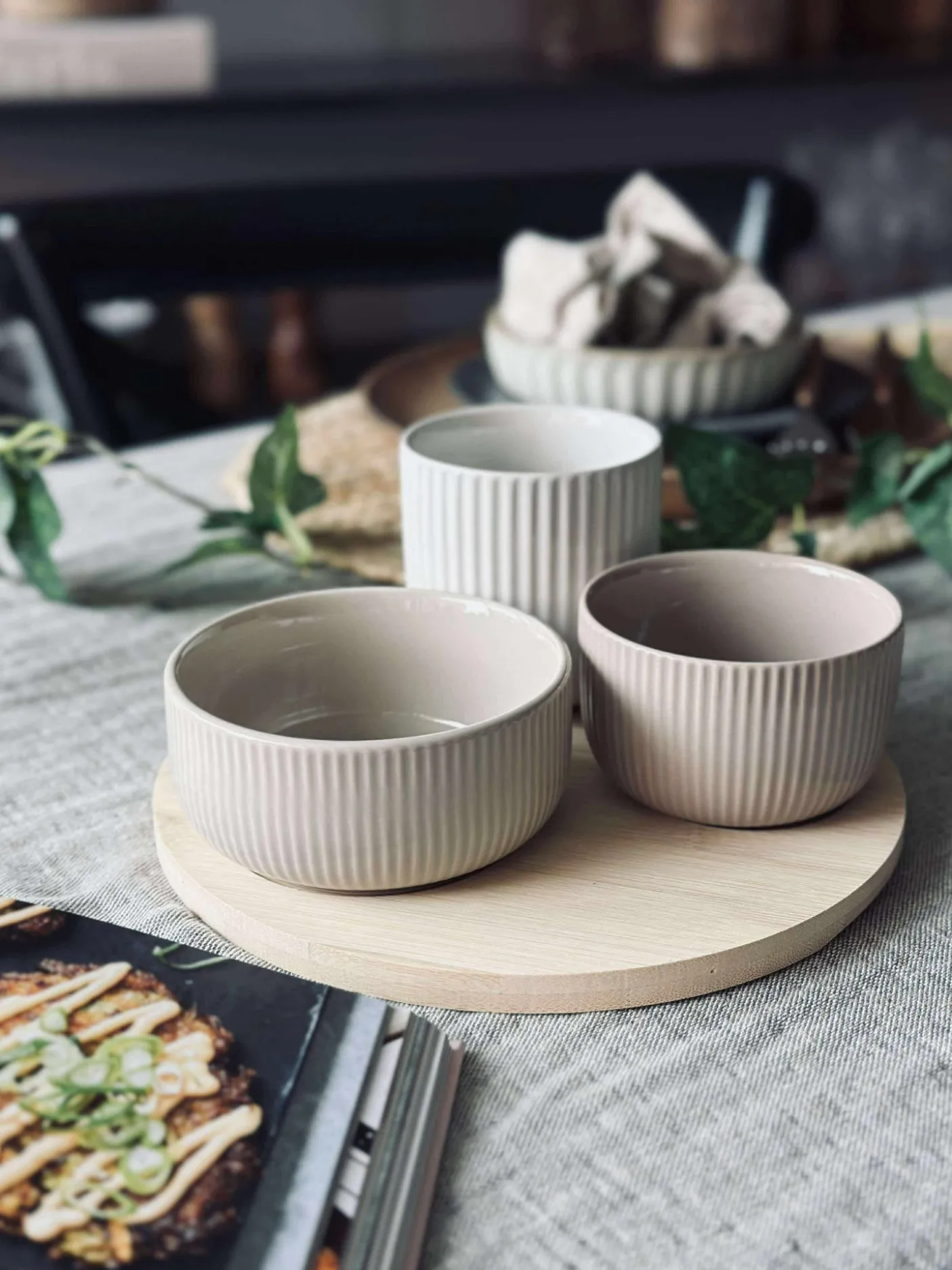 Sættet er lavet i bambus og har et ensfarvet udtryk i beige, der passer fint ind i en nordisk og enkel borddækning.