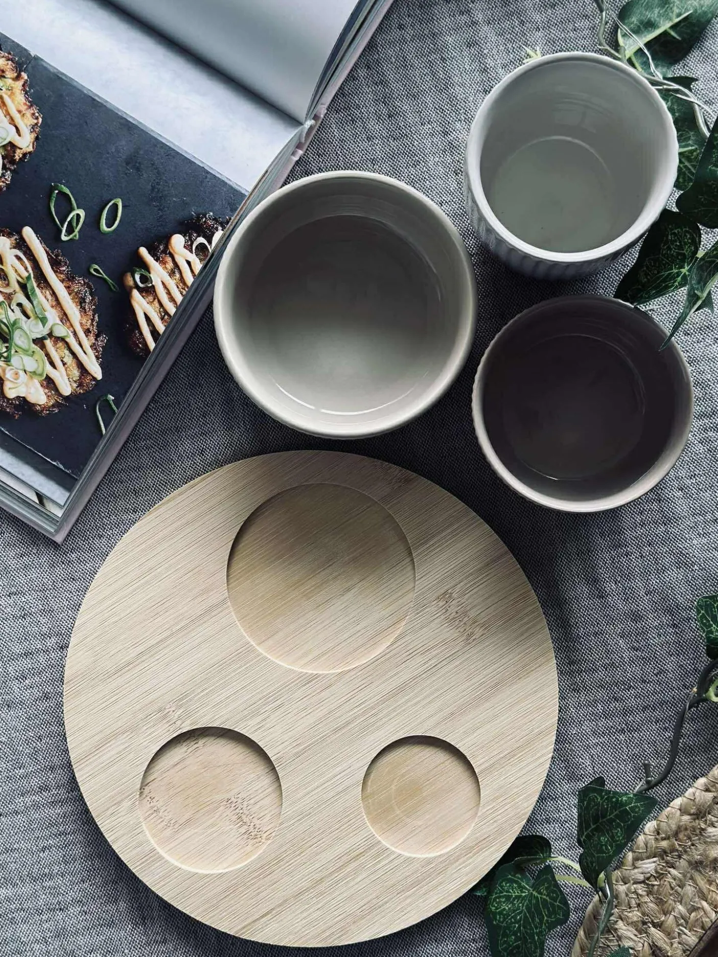 Brug skålene til dip, nødder, oliven eller andre små snacks, og lad det samlede bambus fad skabe et overskueligt serveringsområde. Skålene tåler opvaskemaskine.