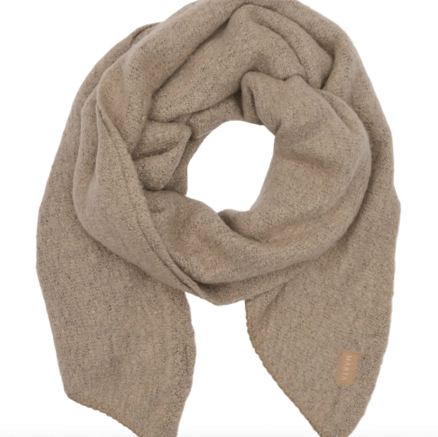 Tørklædet er lavet i akryl og kommer i en beige nuance, der passer godt ind i en enkel og tidløs garderobe.
