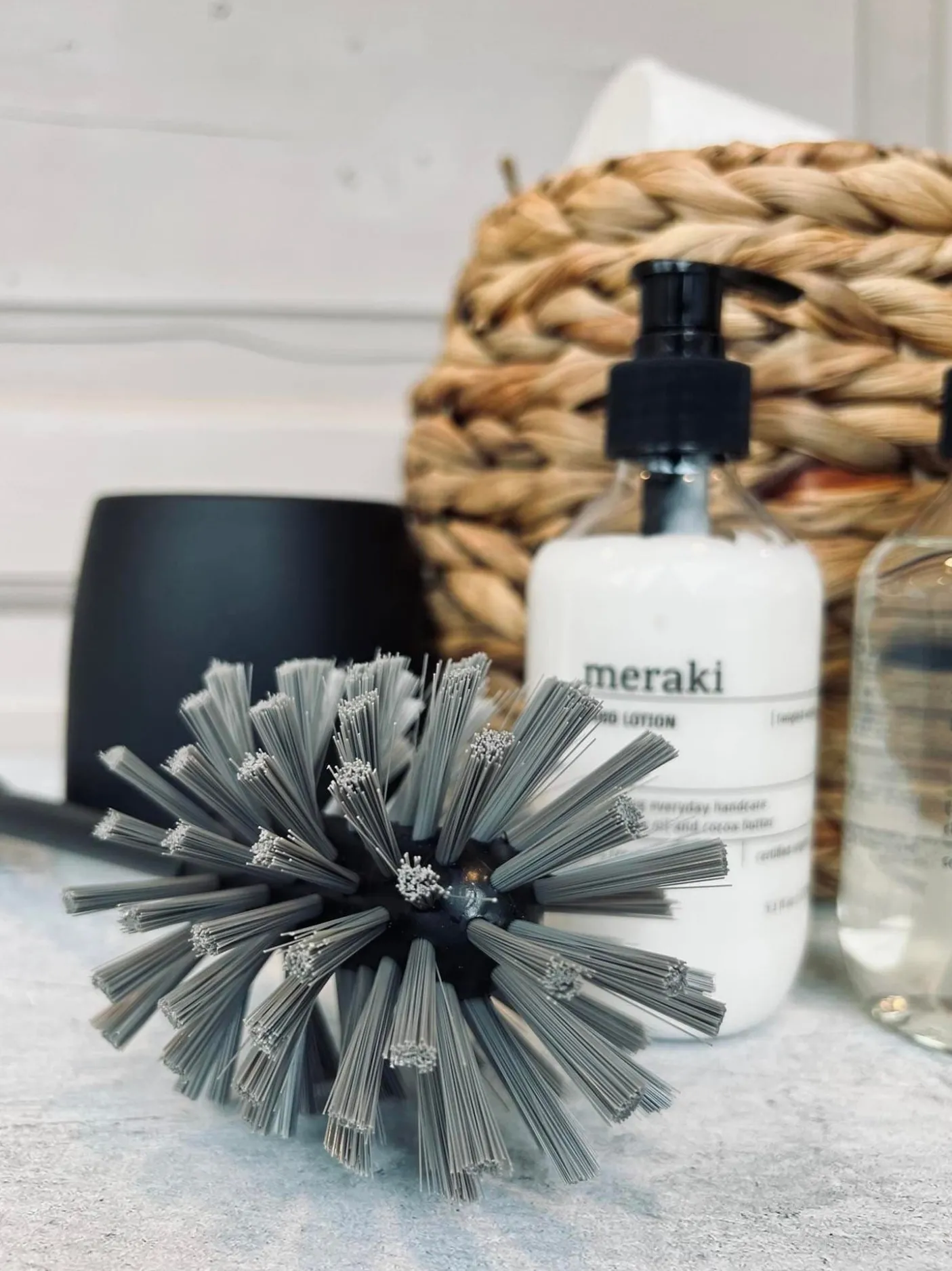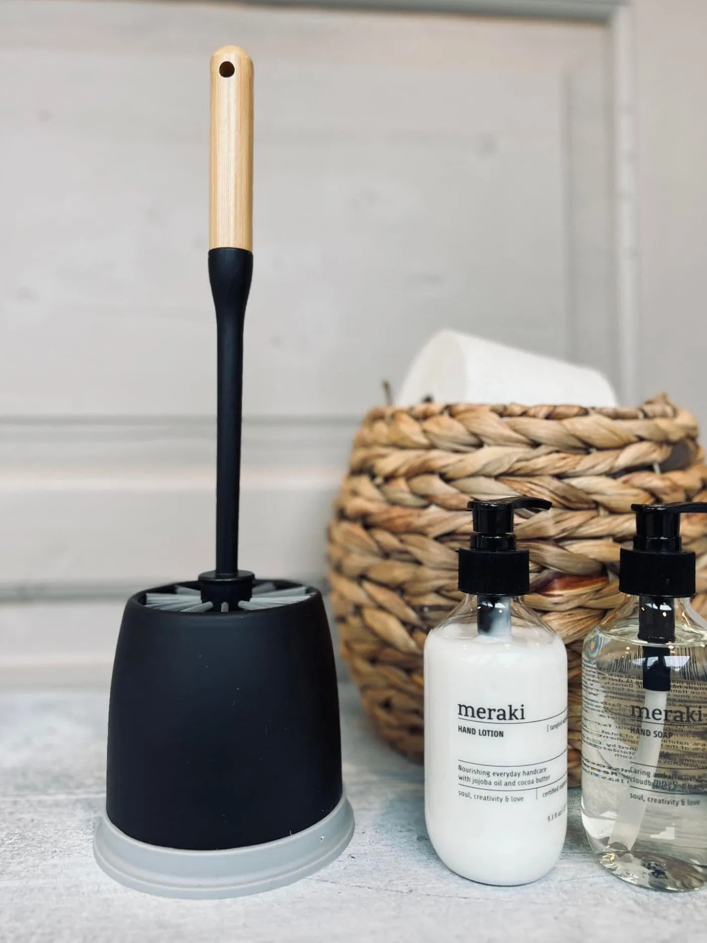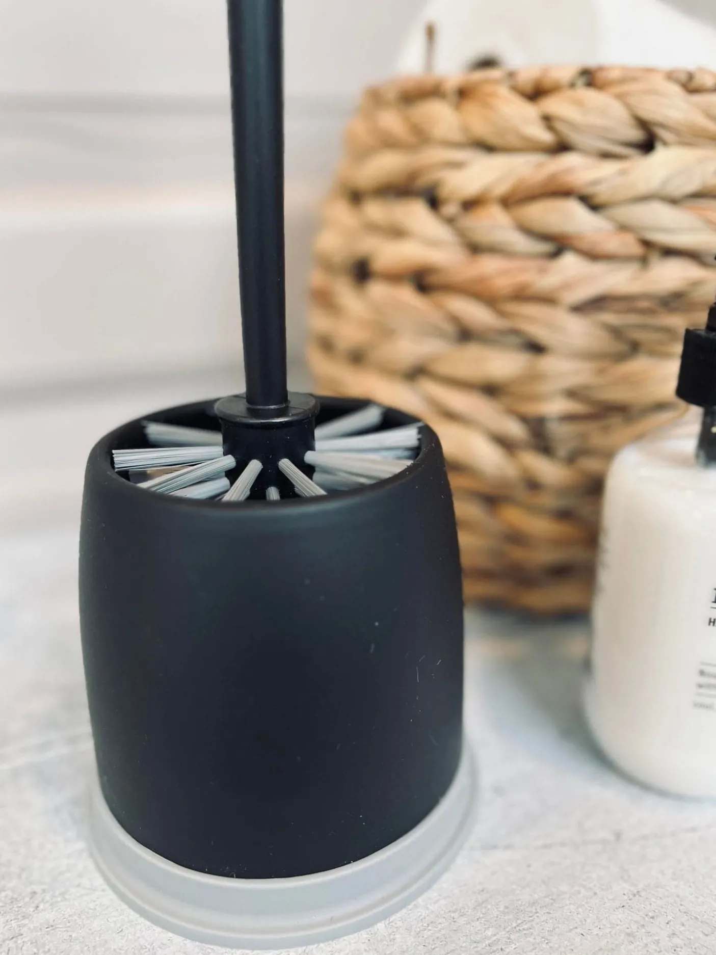 Toiletbørste i plast og bambus.