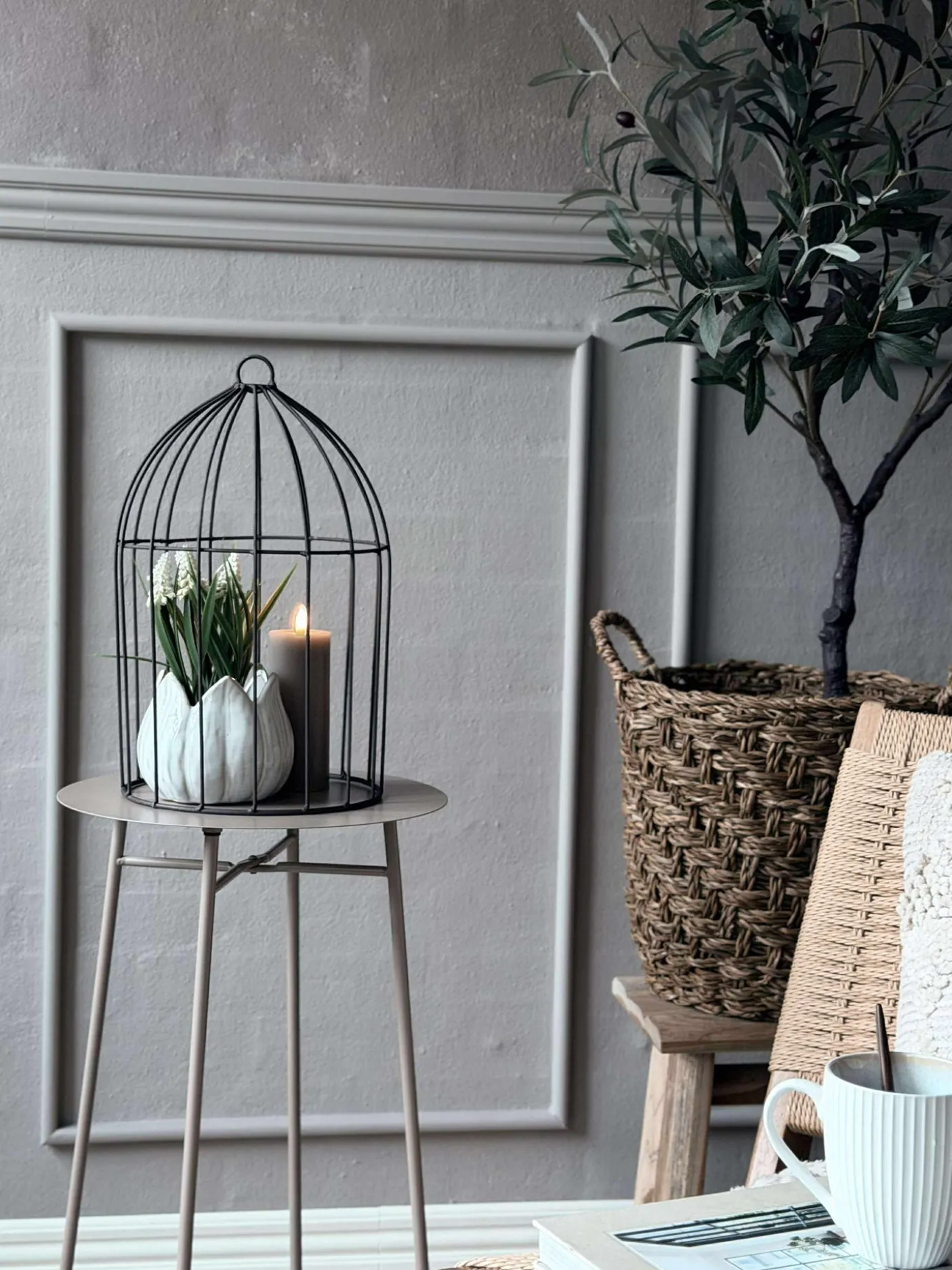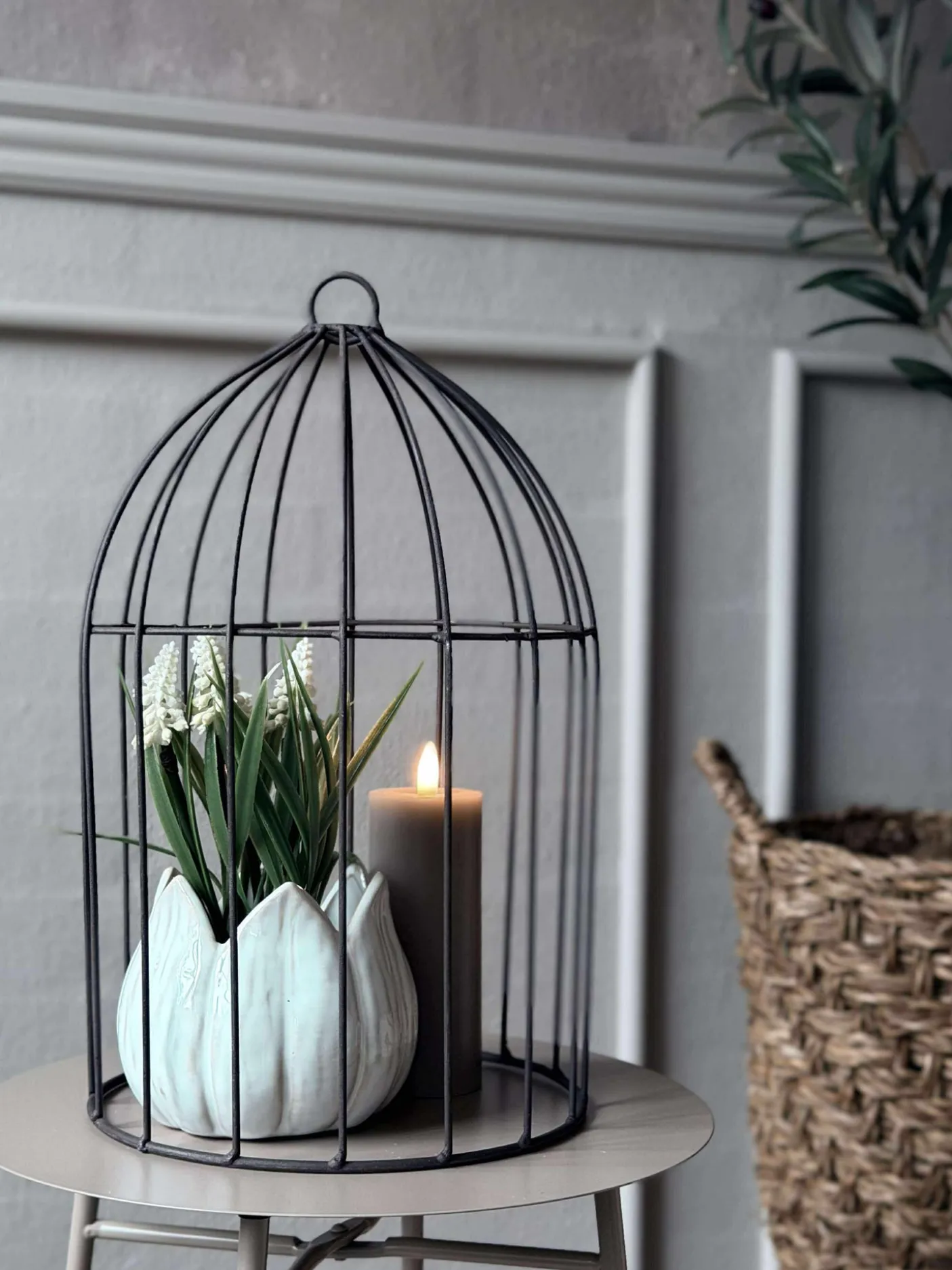Dekorativ metal kuppel til dekoration med blomster eller lys.