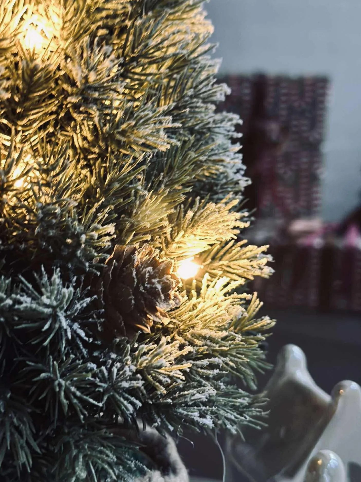 Lyskæde medfølger og sidder på træet.