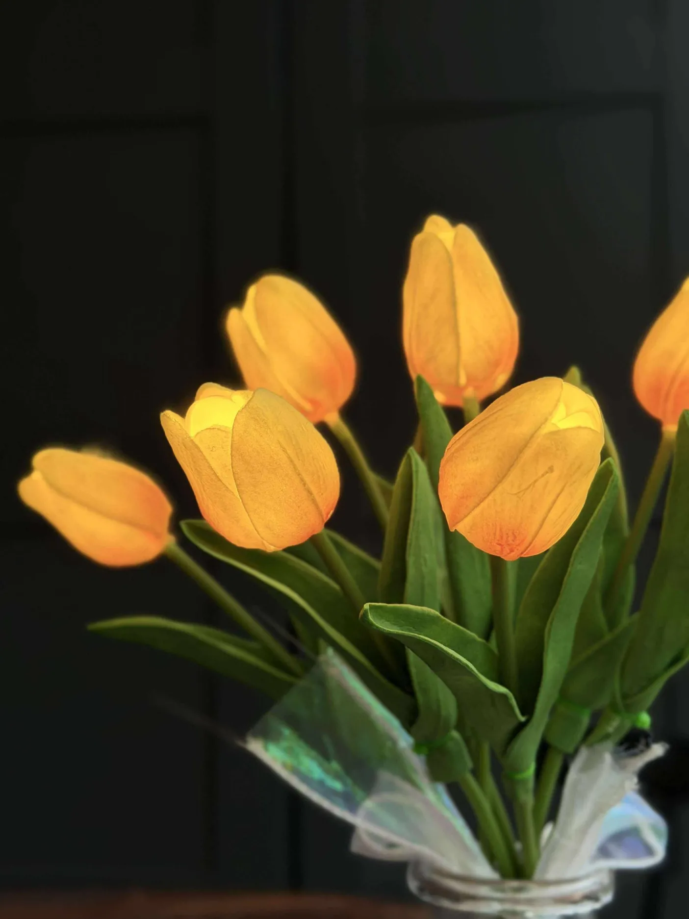 Bundt med 8 tulipaner med led lys.