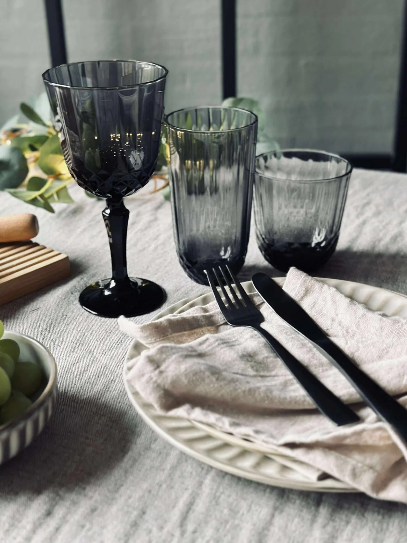 Flot vandglas i grå / røgfarvet glas.