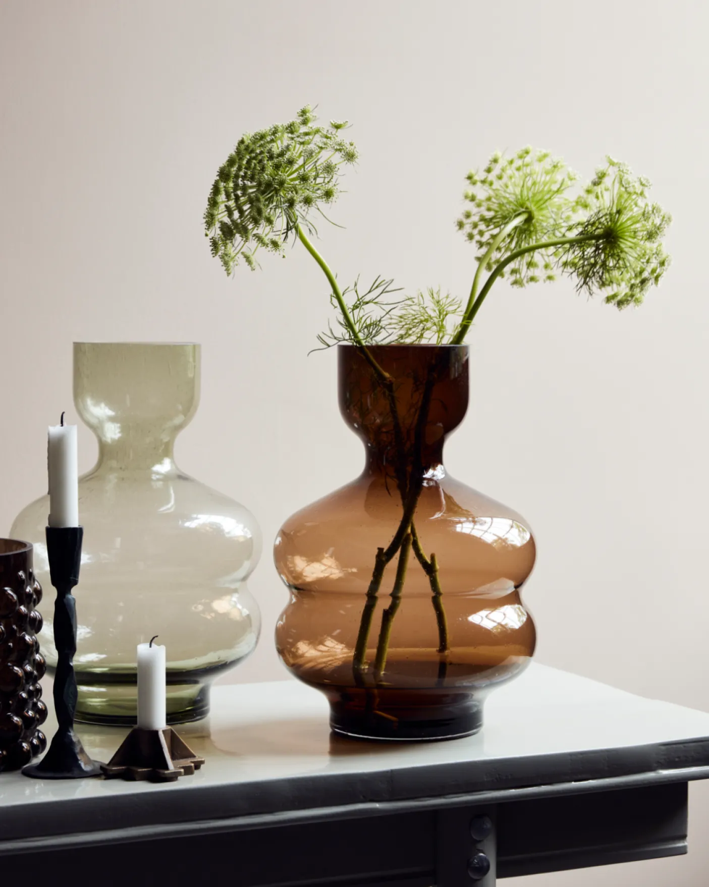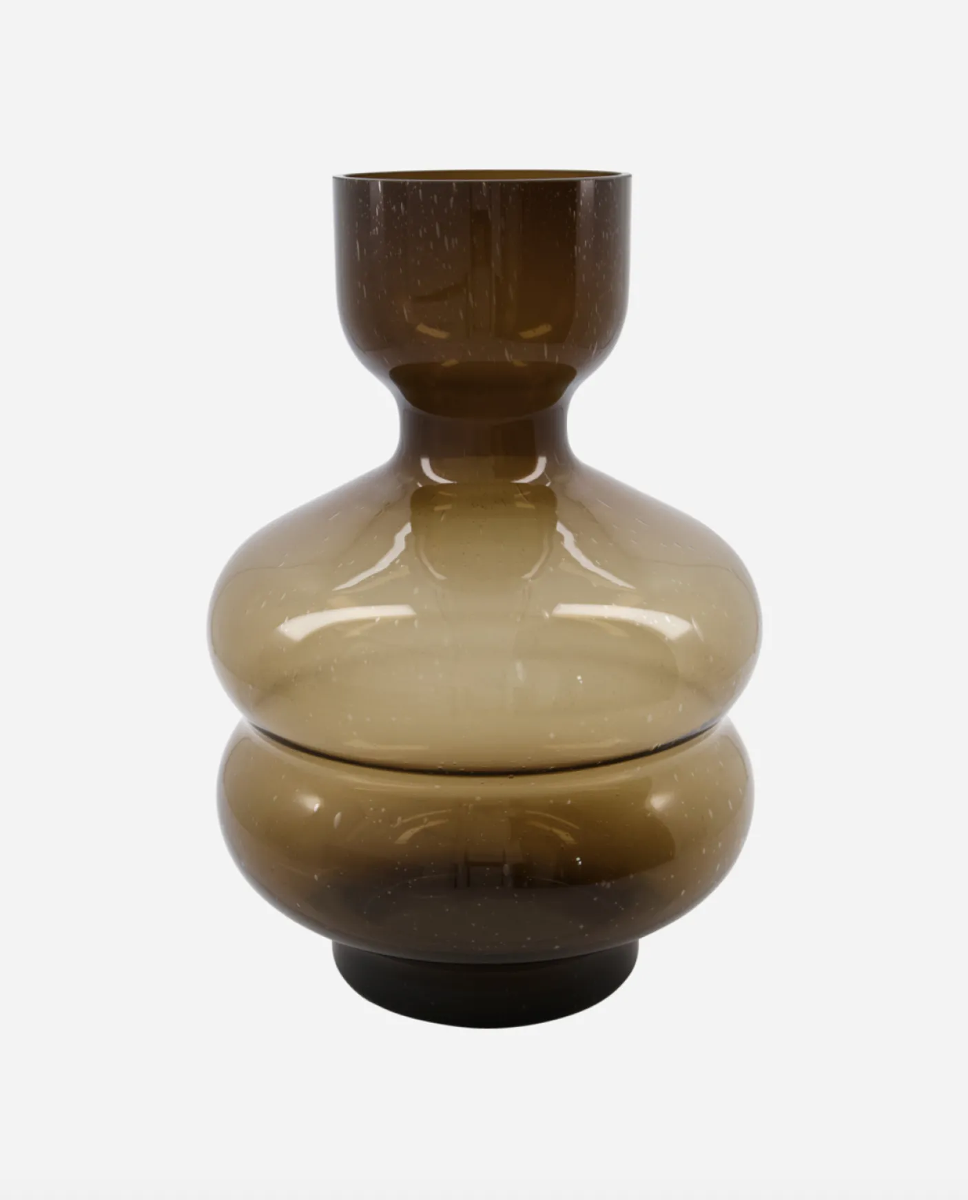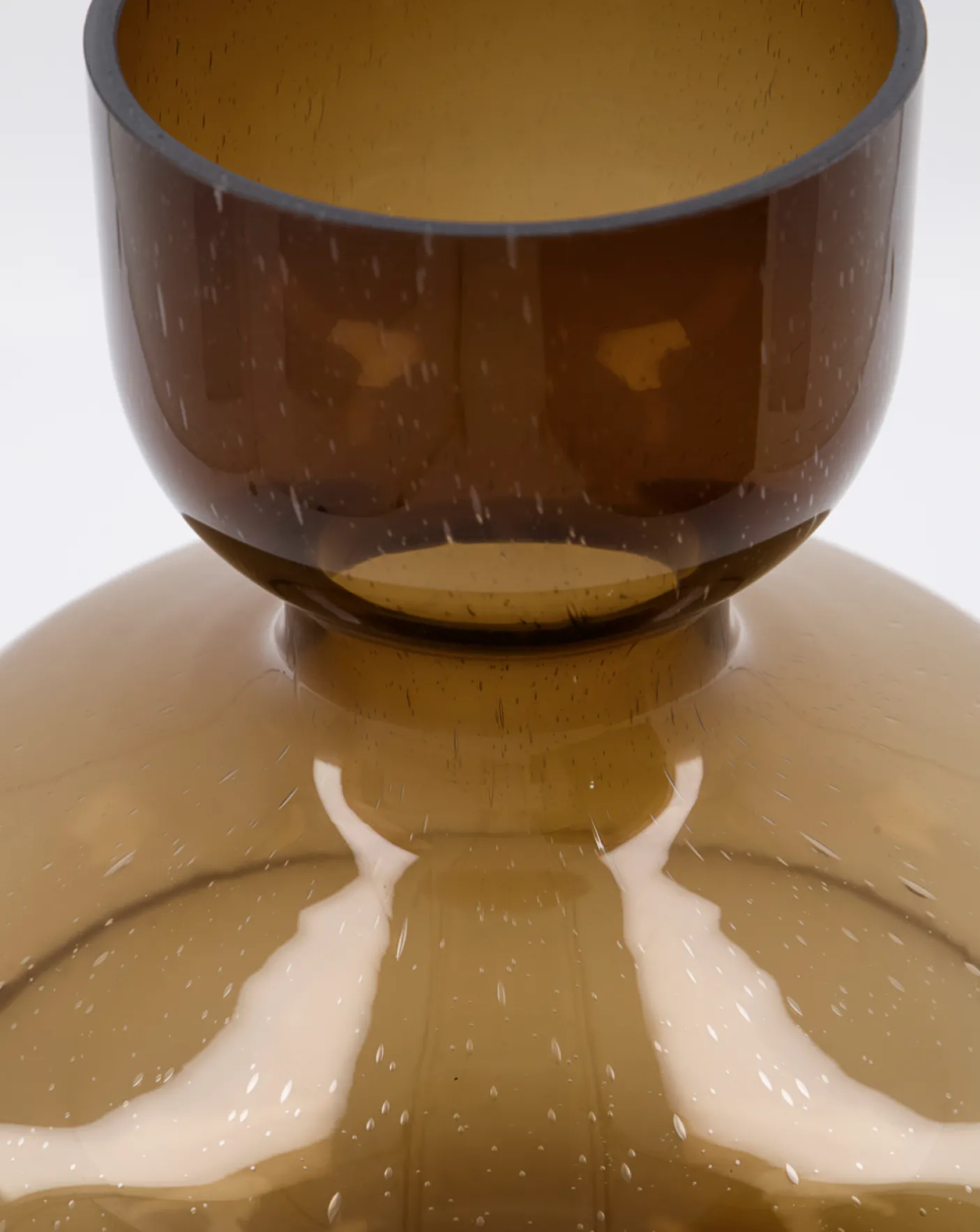 Opgrader din stue med en skulpturel vase. Vasen er designet med små luftbobler i glasset. Det tilføjer dybde og karakter til den varme ravnuance og leder opmærksomheden til glasvasens elegante proportioner. Vasen er en stilfuld tilføjelse til din hylde, vindueskarm eller dit sofabord både med og uden blomster. Sæt den sammen med andre glasvaser eller skab et unikt display med forskellige former og overflader. Vasen kan også stå alene, så den skulpturelle form skiller sig ud.