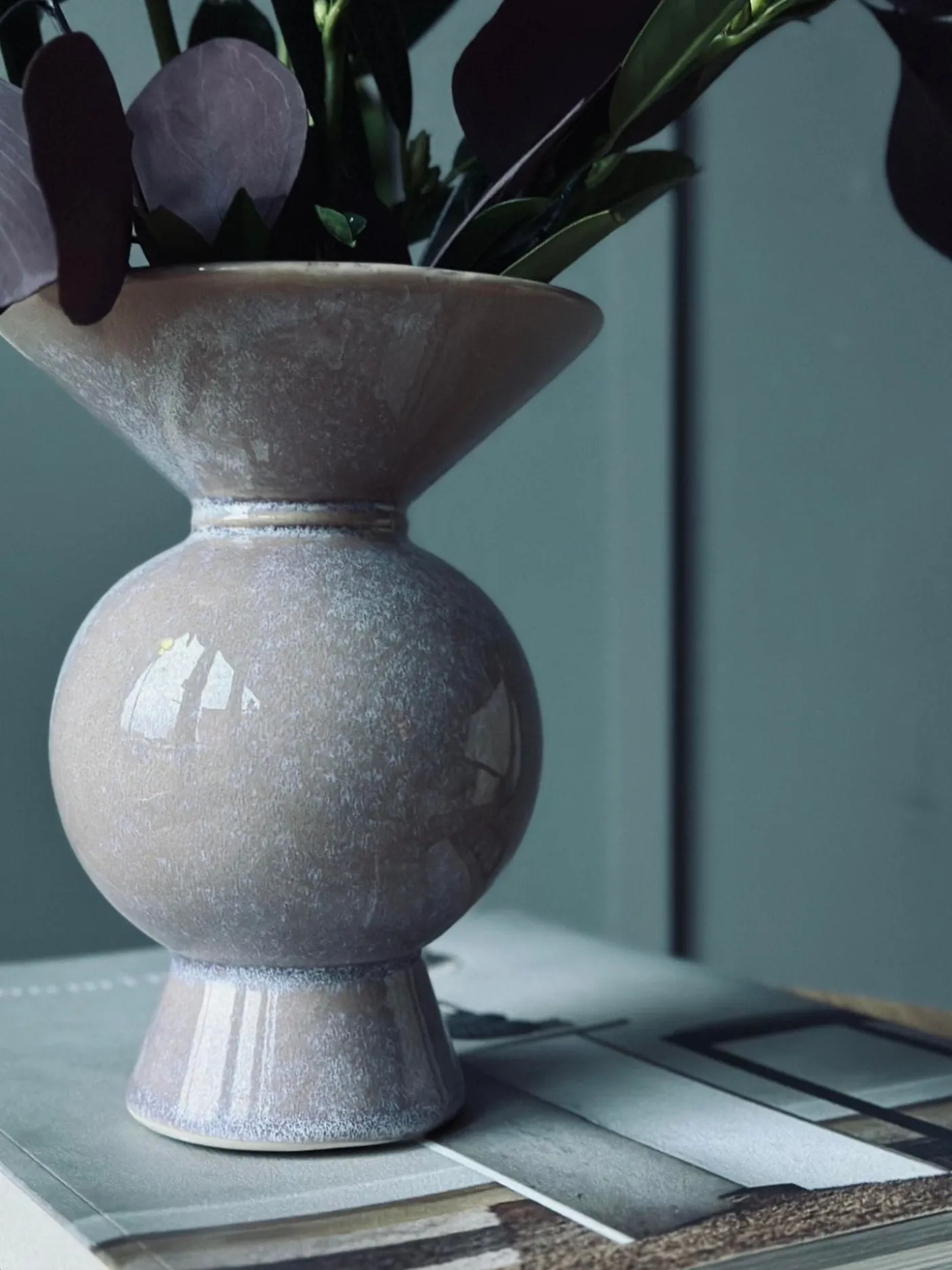 Smuk vase i keramik, flotte rosa nuancer.