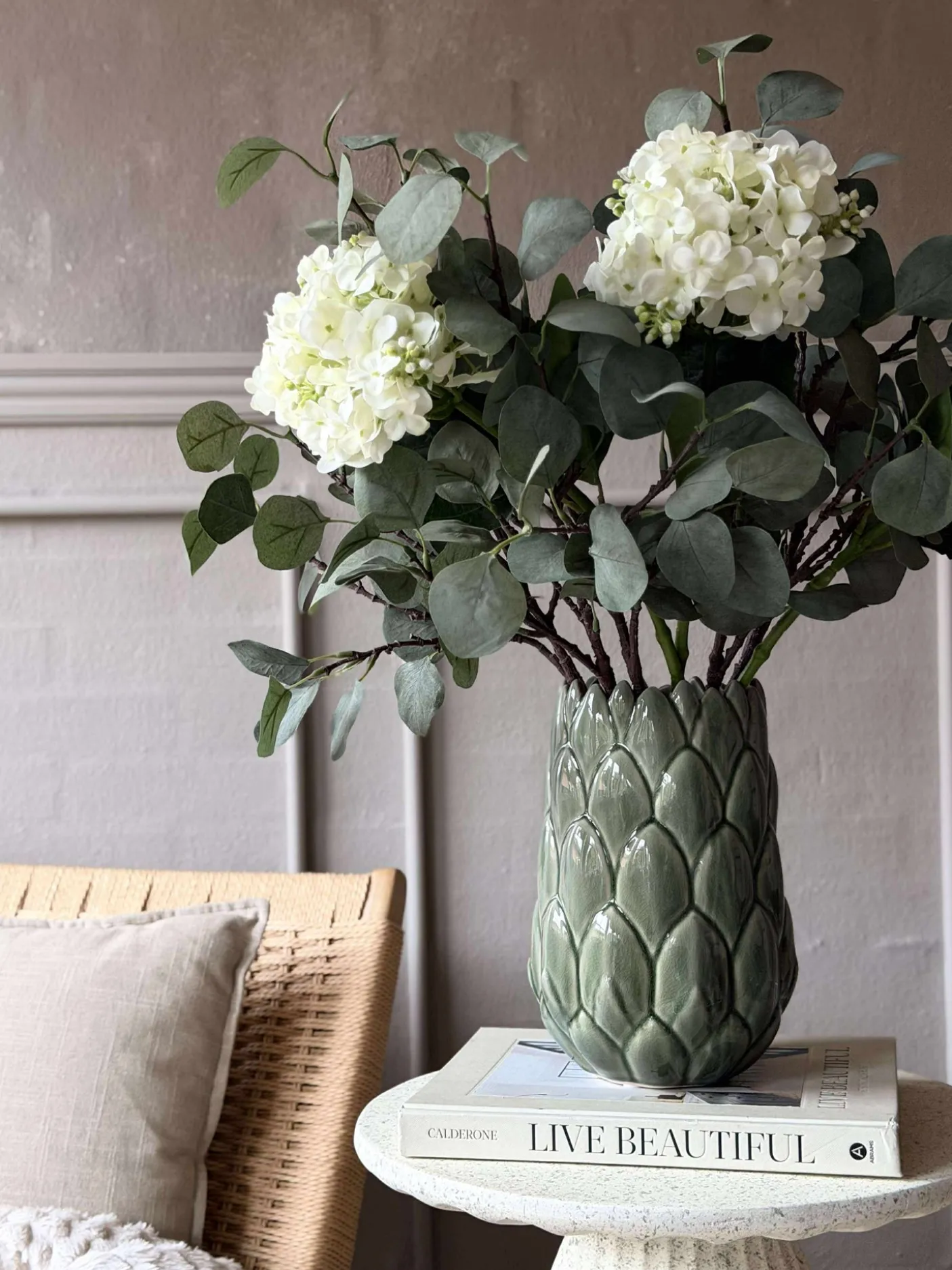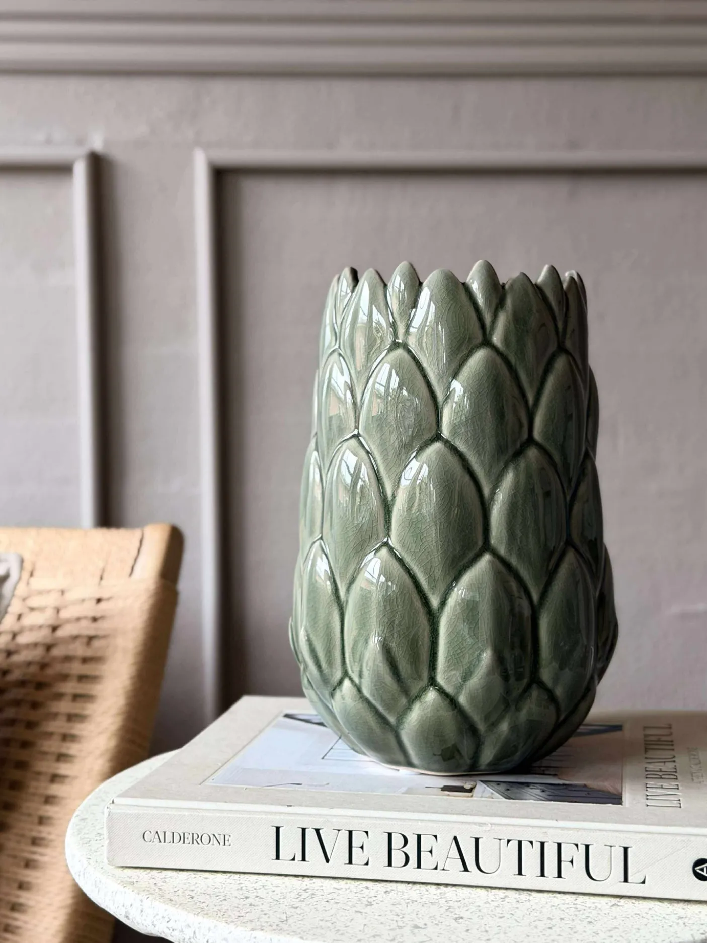 Smuk vase i stentøj.