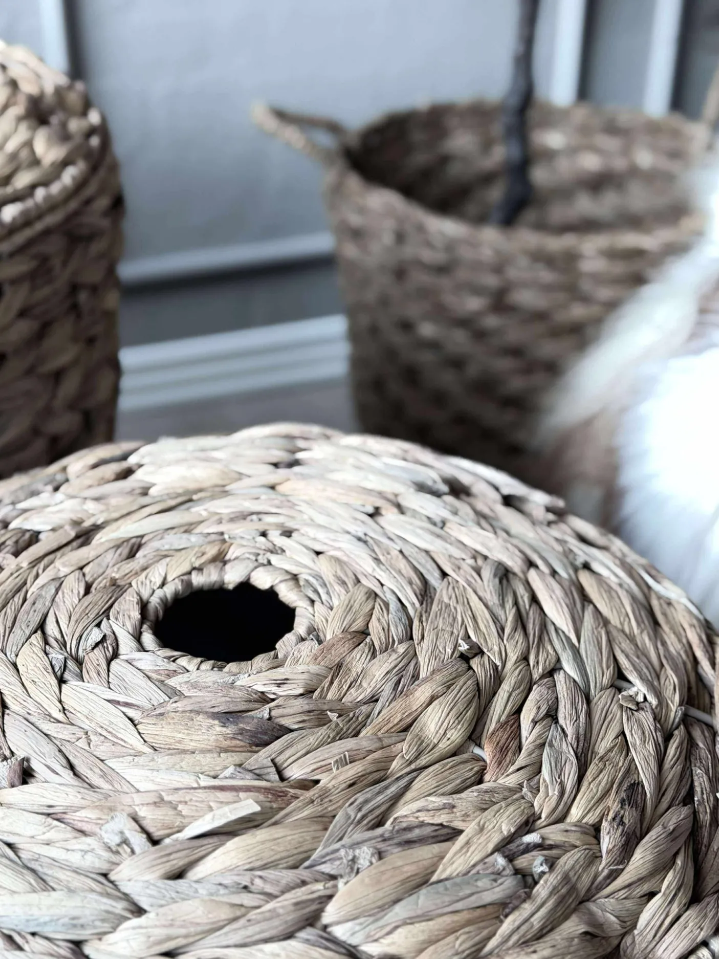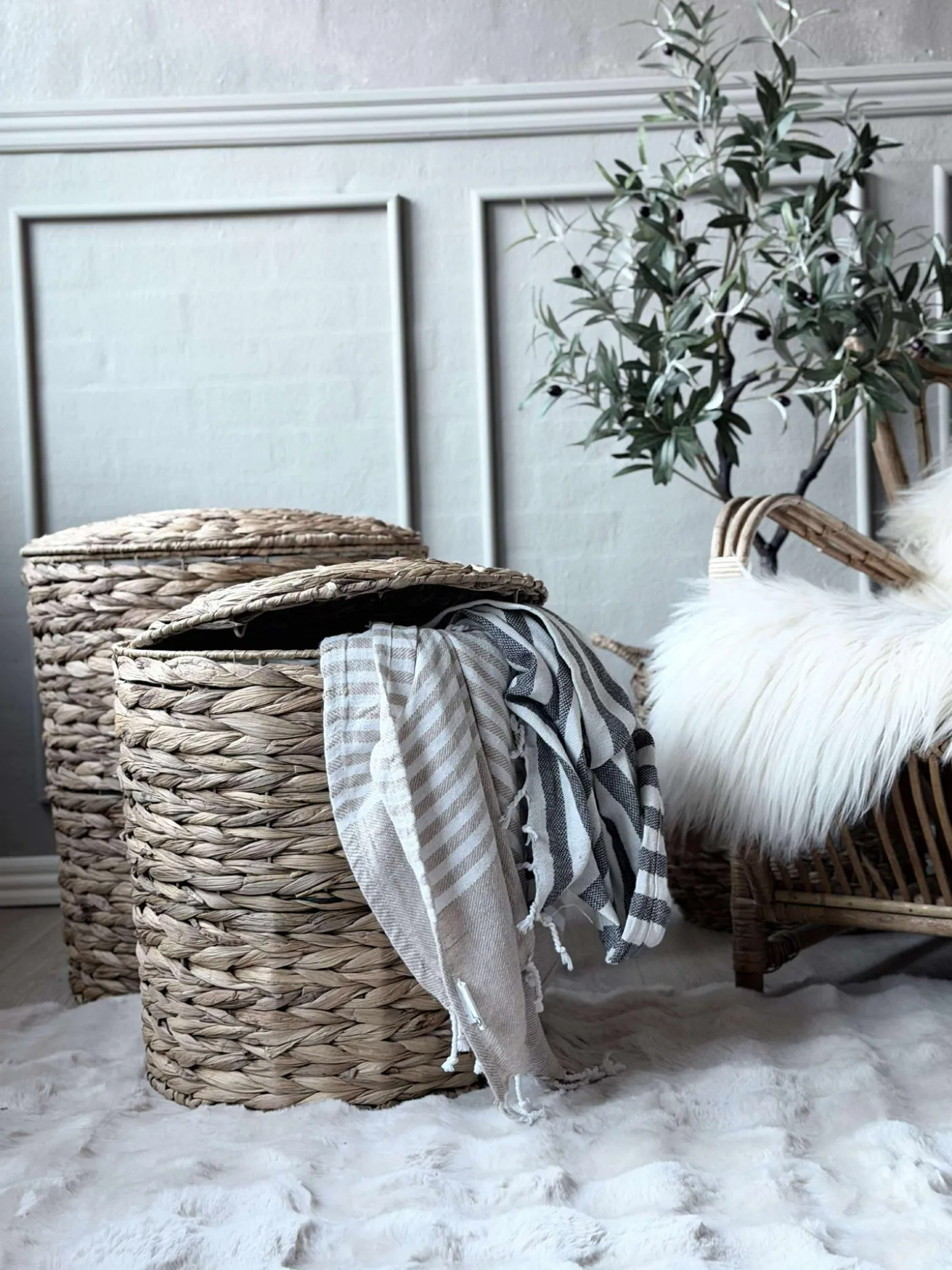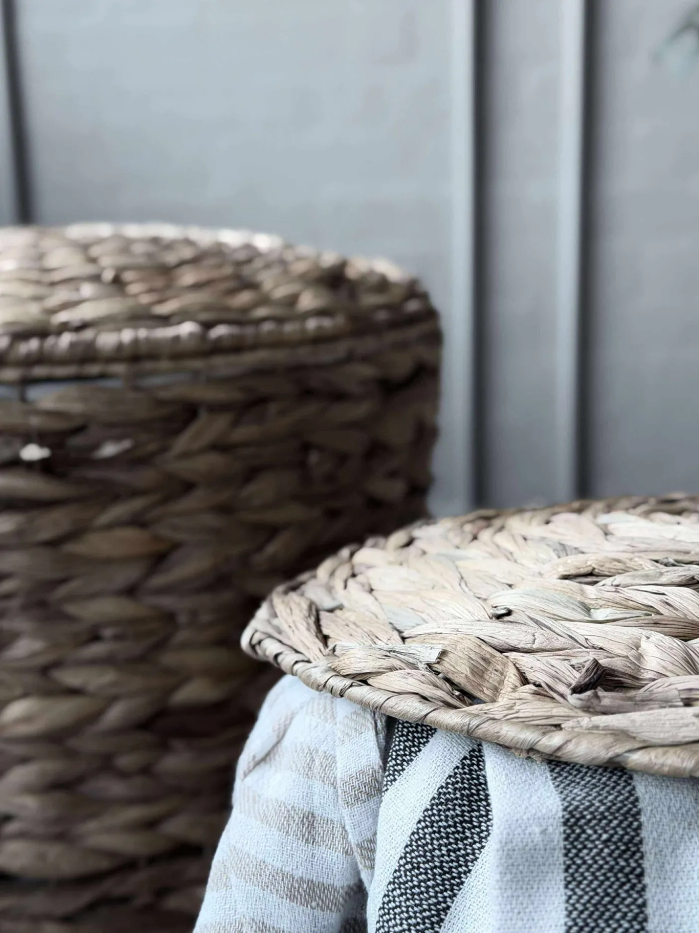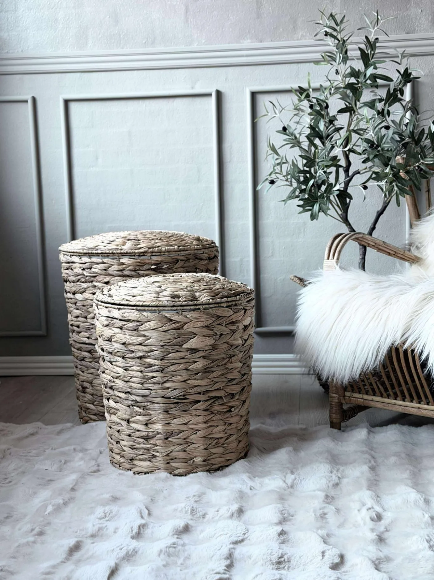 Lækker sæt med 2 vasketøjskurve i vandhyacint.