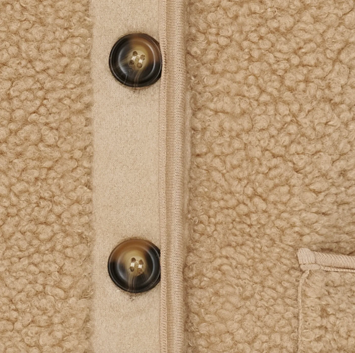 Lommer foran på vesten og lukning med store knapper.