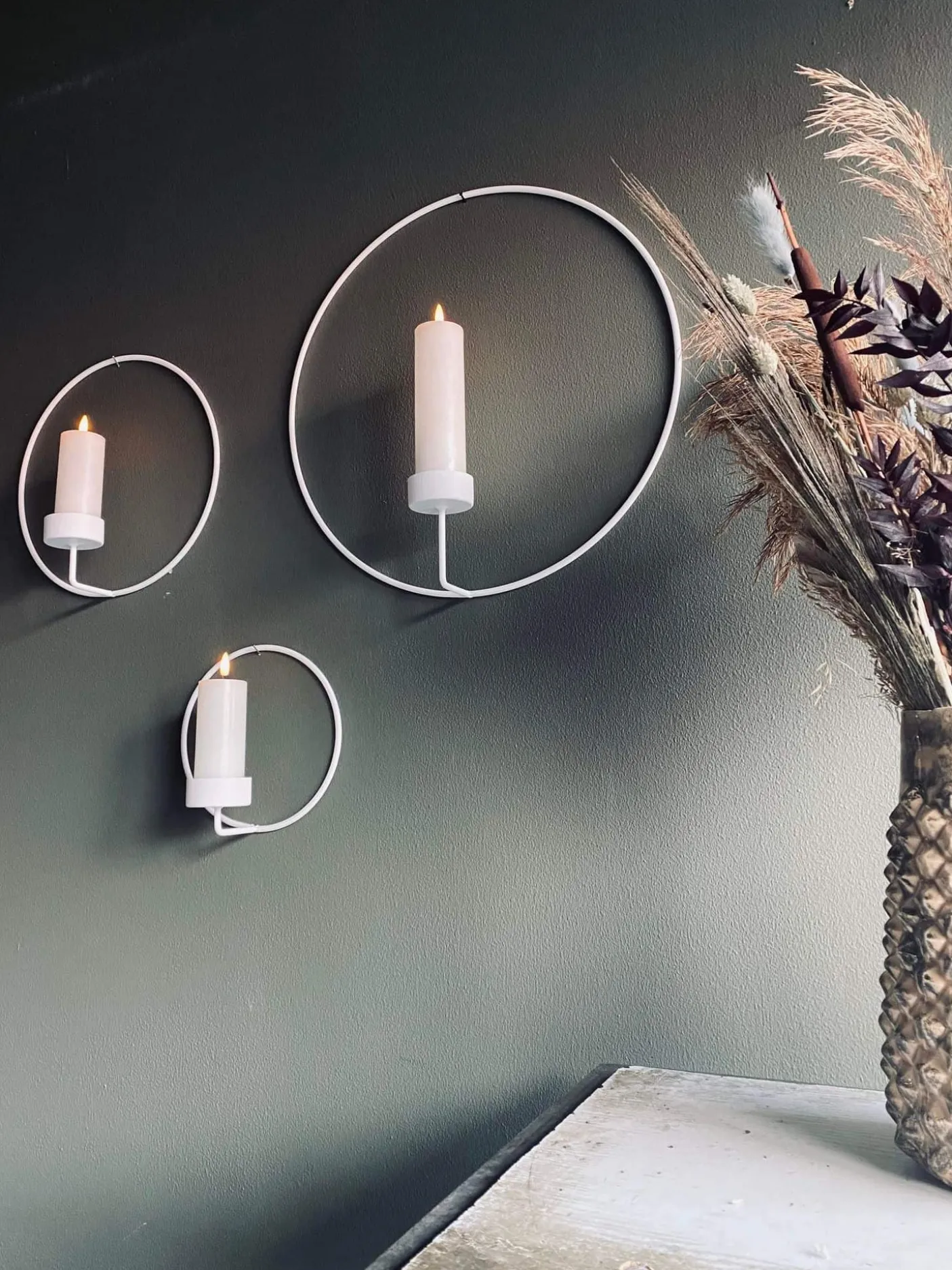 Find en enkel måde at tilføre stil til din vægdekoration. VIAMAJA Cirkel bloklysstage gør det lettere at hænge bloklys op, hvilket skaber en elegant atmosfære. Ideel for dem, der ønsker en praktisk løsning til dekorativ belysning i hjemmet.