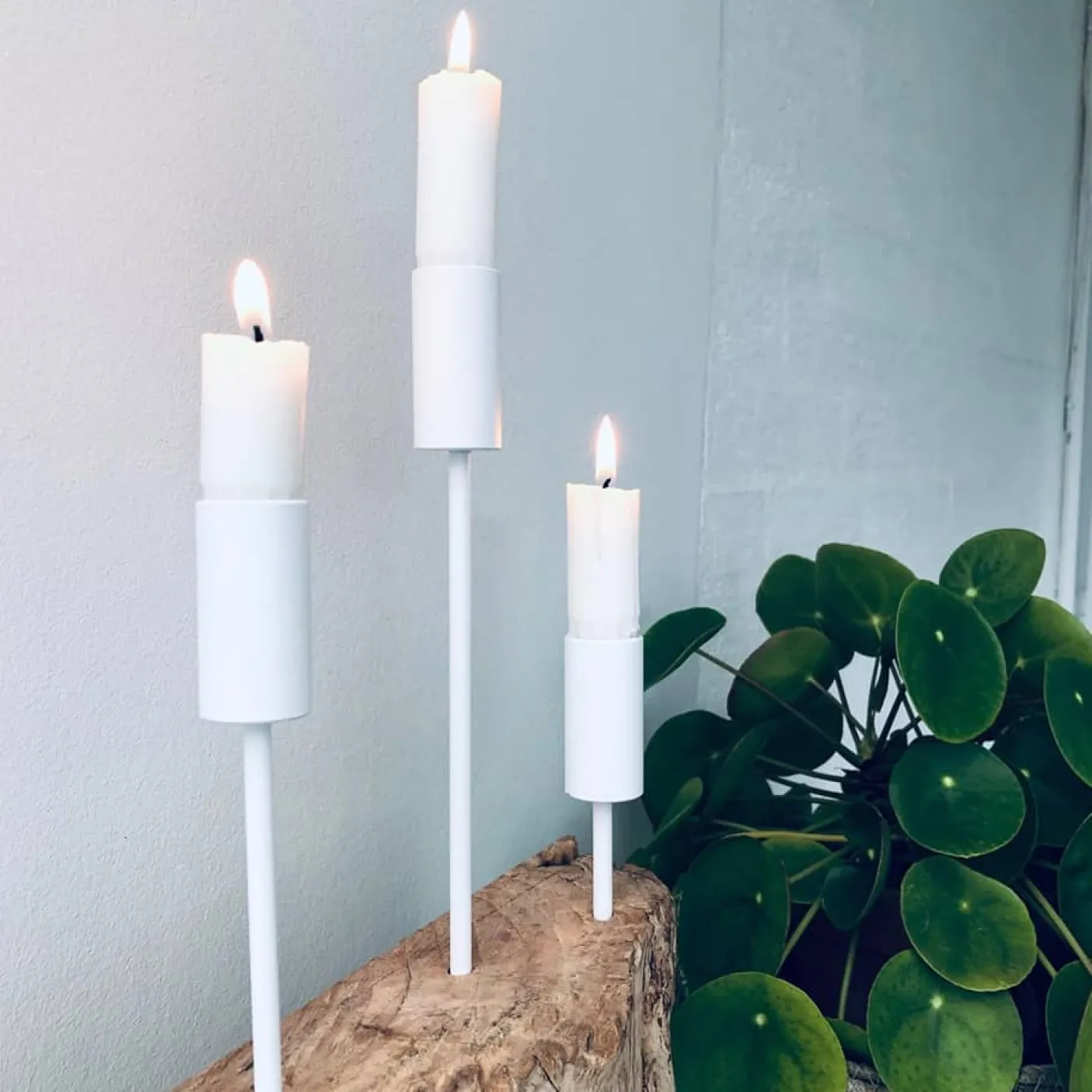 - Sættet indeholder 3 lysspyd i højderne 6 cm, 12 cm og 18 cm