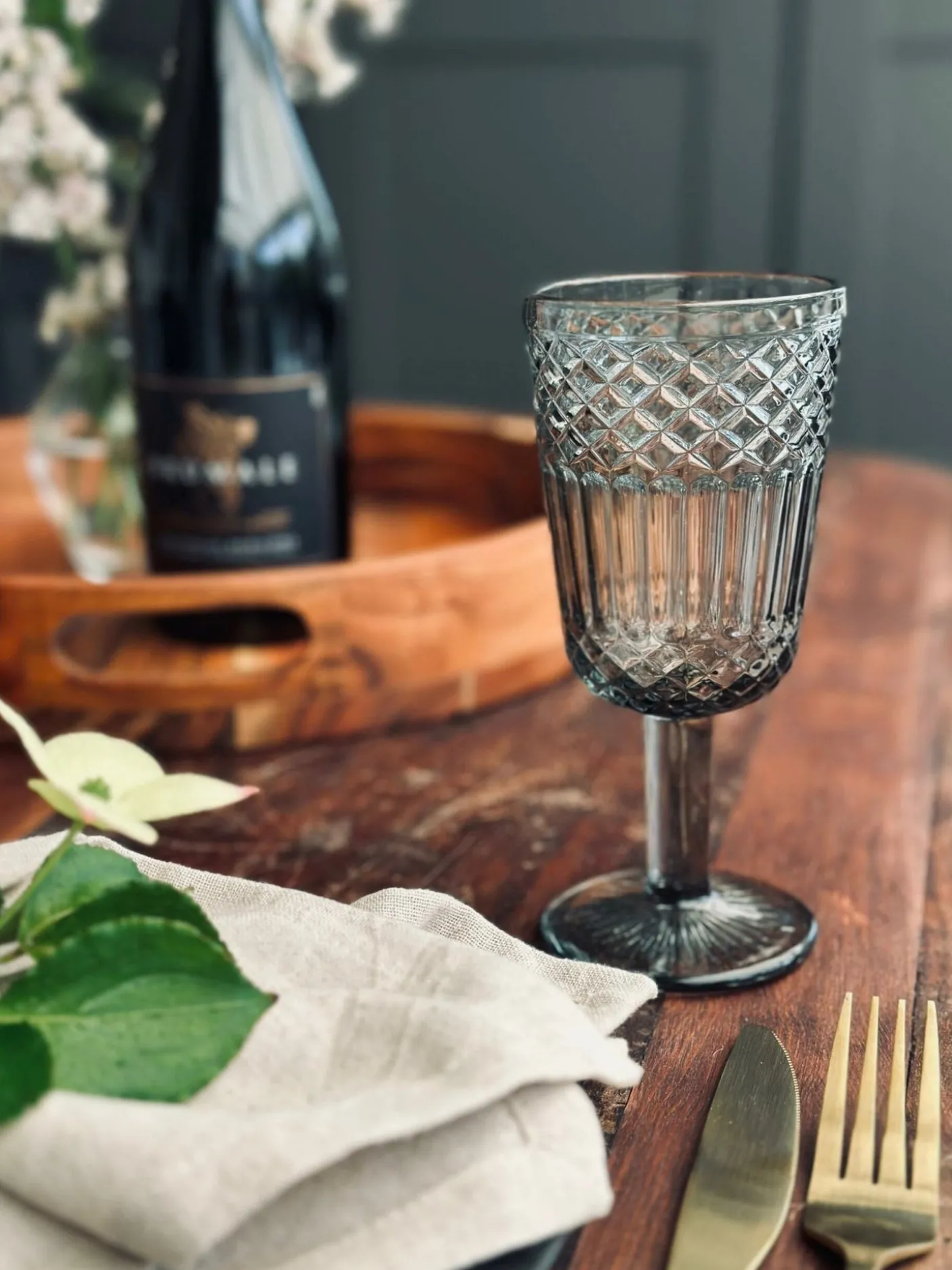 Flot vinglas i grå / røgfarvet glas.