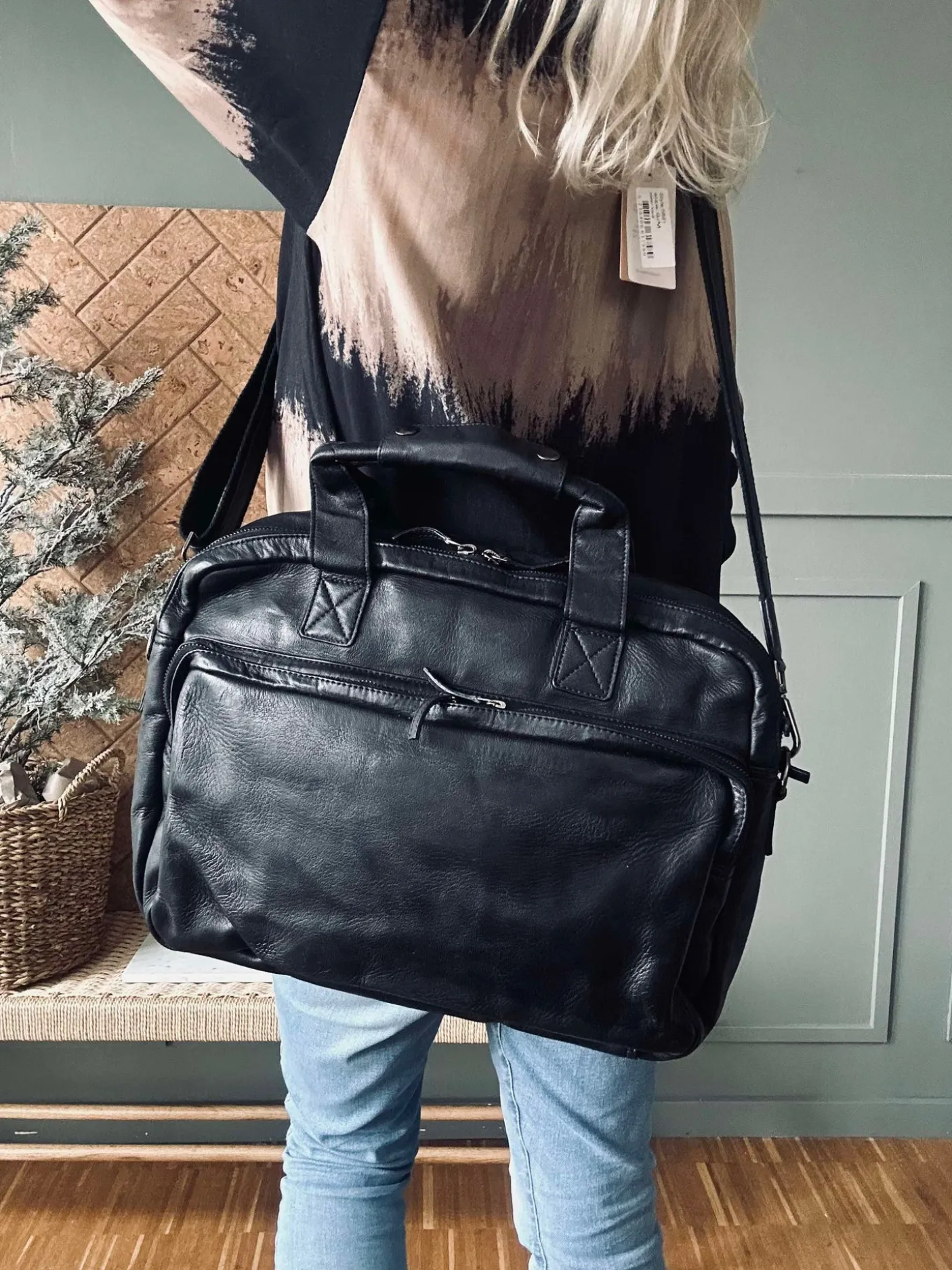 Mål: H 28cm B 38cm D 9cm + 4cm for lomme