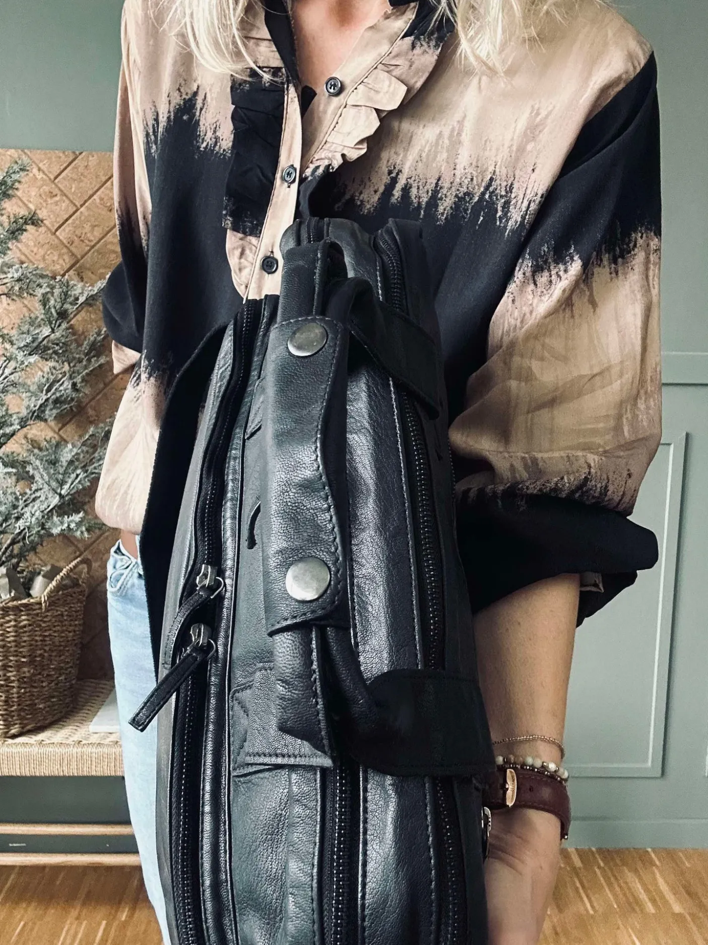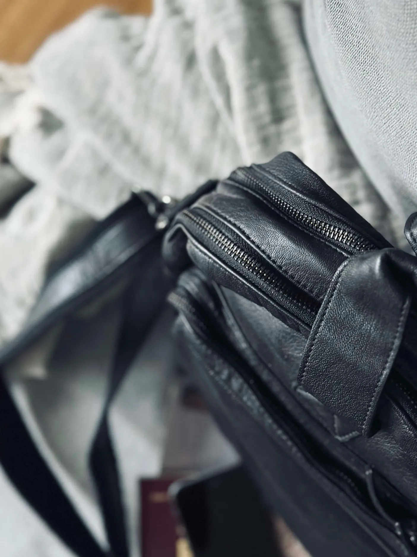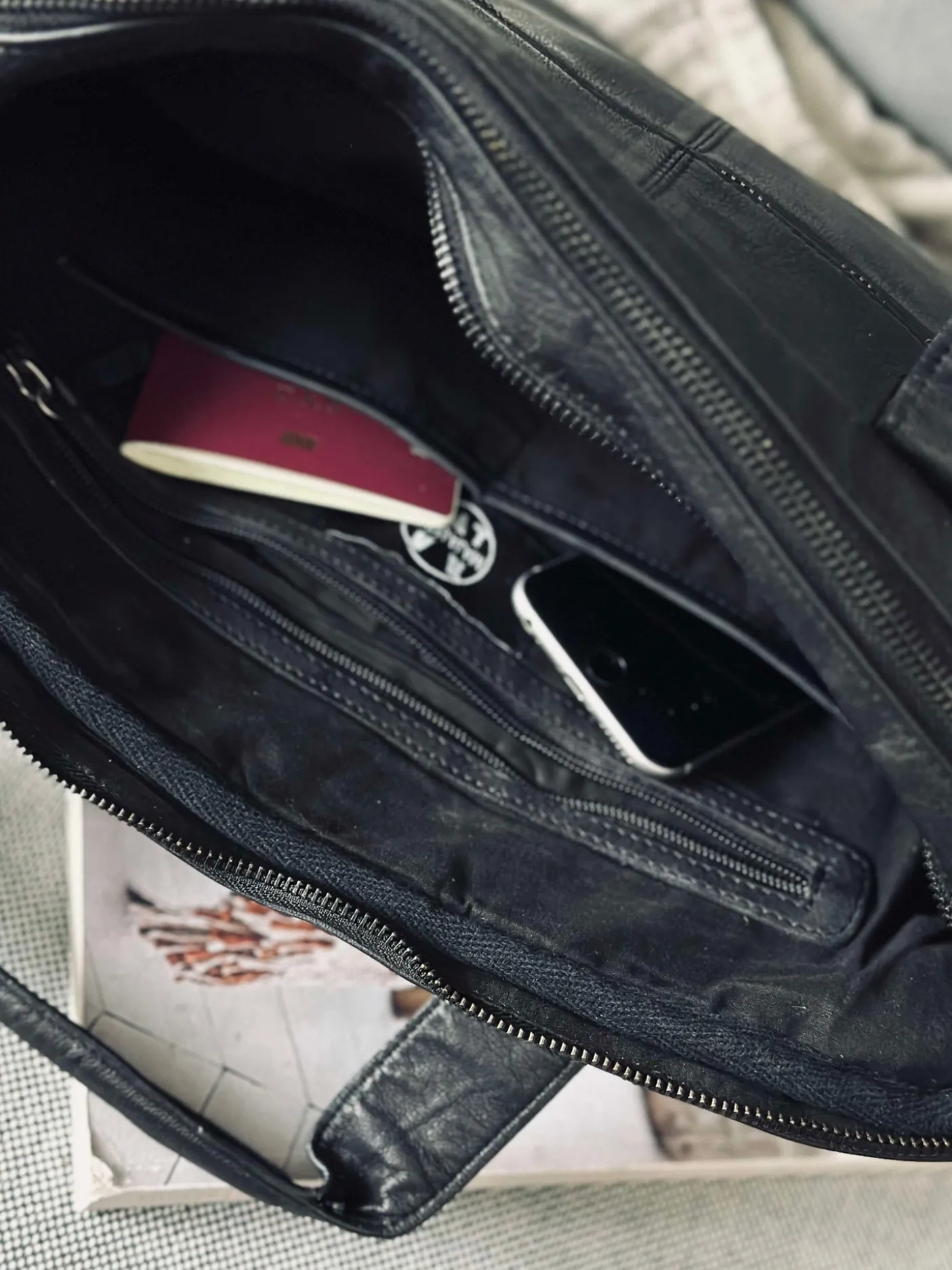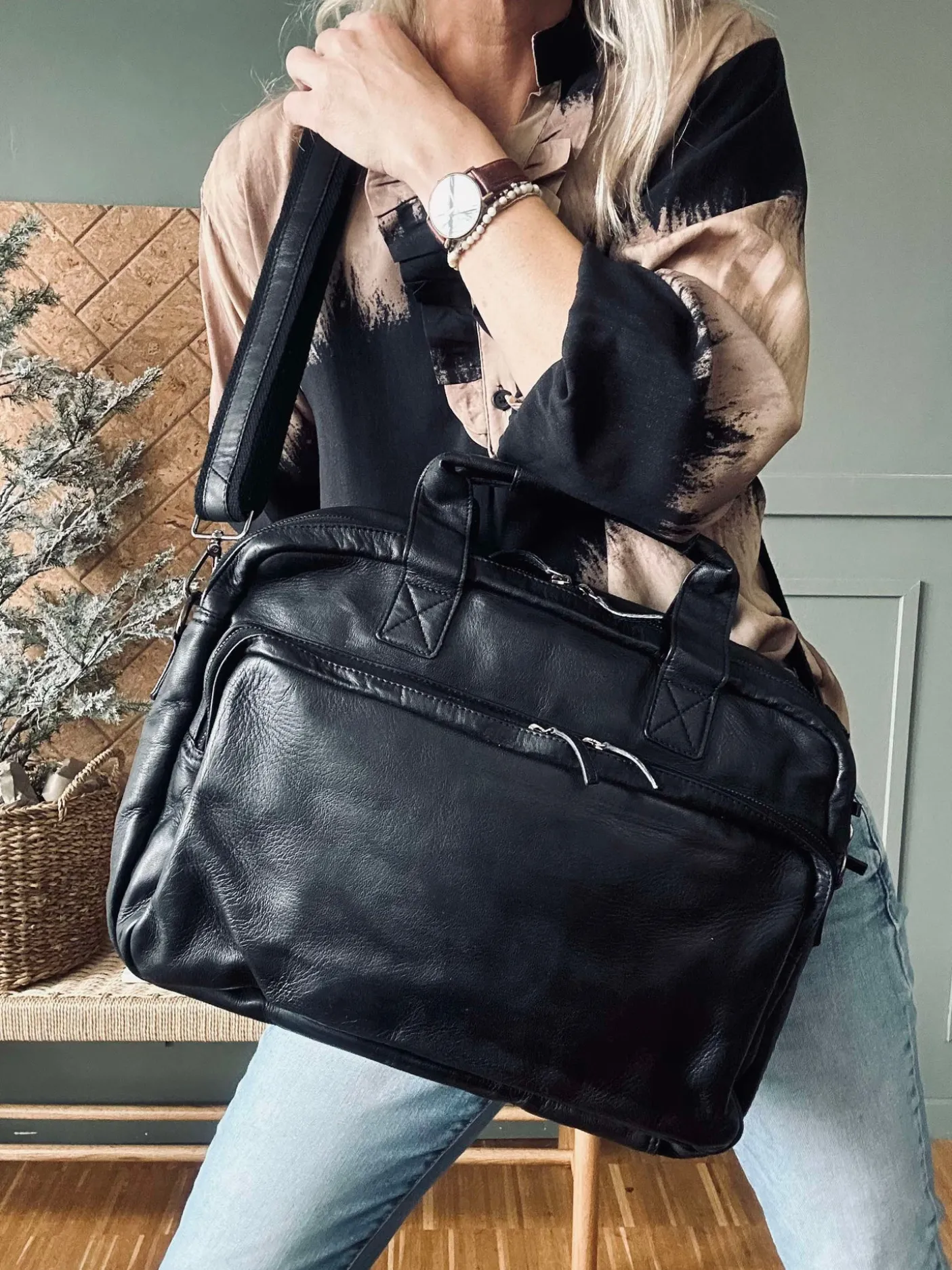 Lækker arbejdstaske med spænder og lynlås i gunmetal.