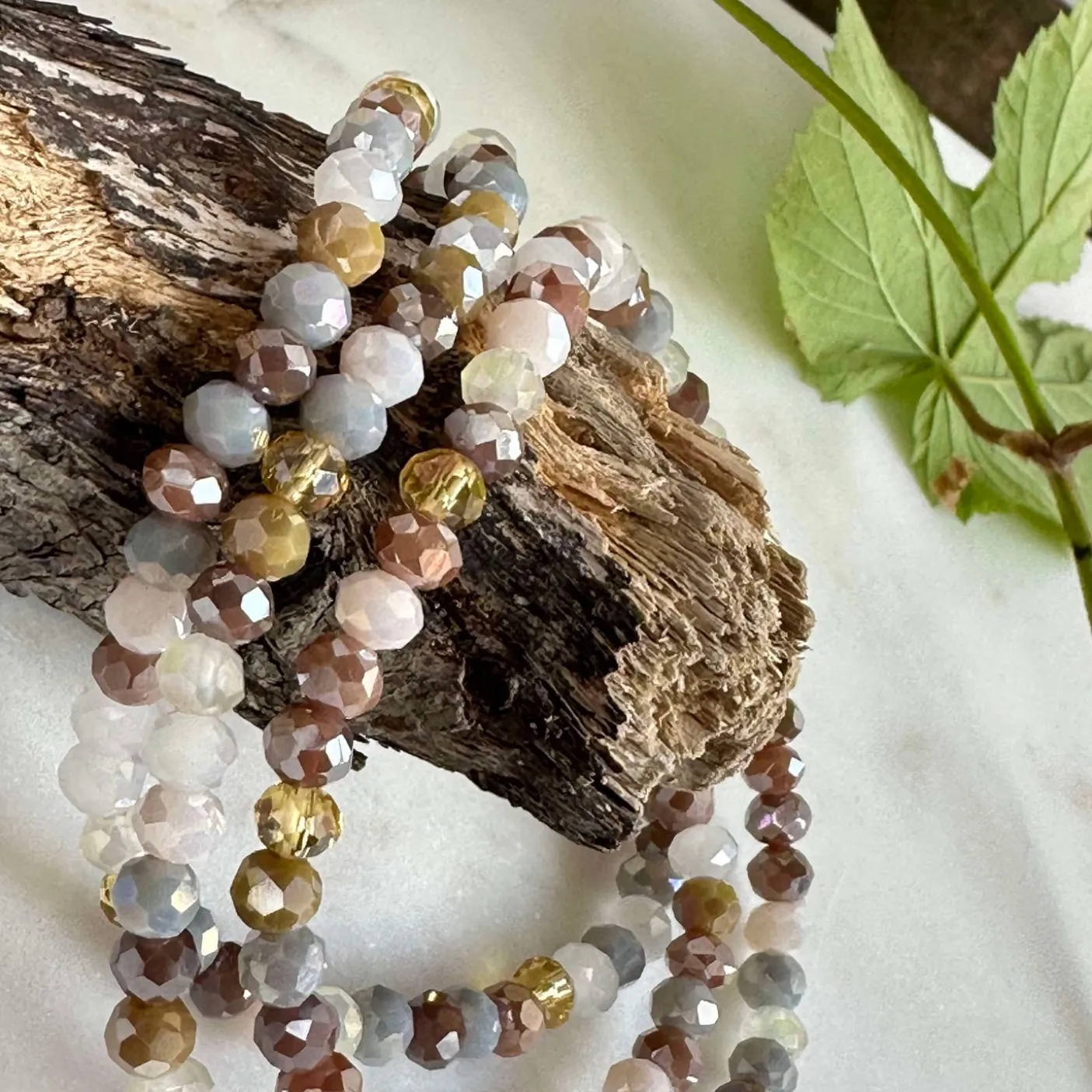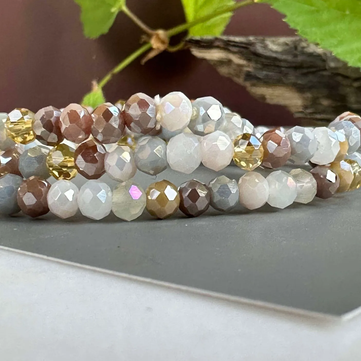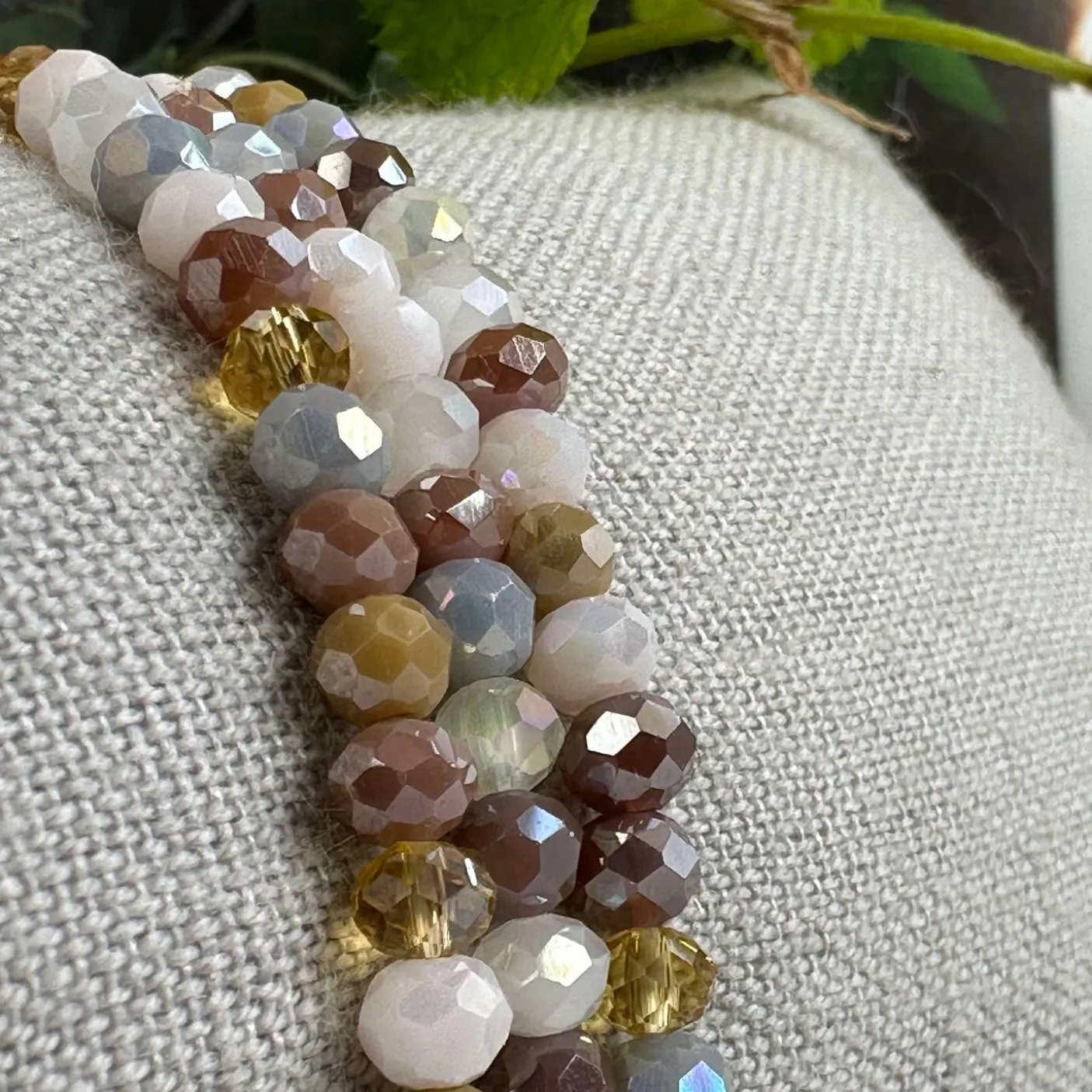 3 smukke armbånd i et sæt – præsenteret i en lækker velour gavepose. I sættet får du tre elastiske armbånd, der passer str XS til L – lækre farver i neutrale nuancer, og med facetterede perler.