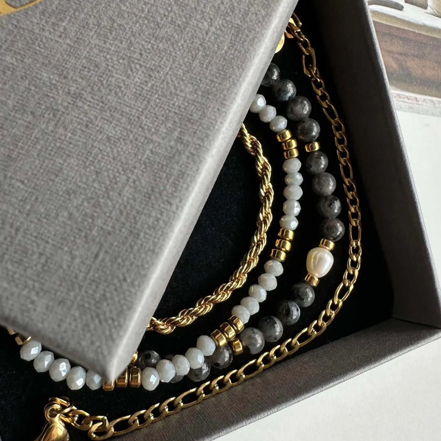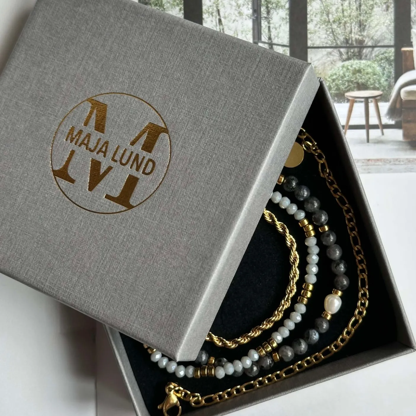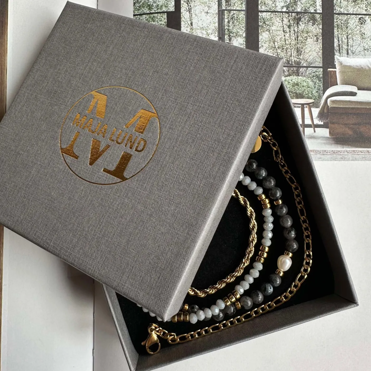 4 armbånd i et sæt – præsenteret i en flot gaveæske.