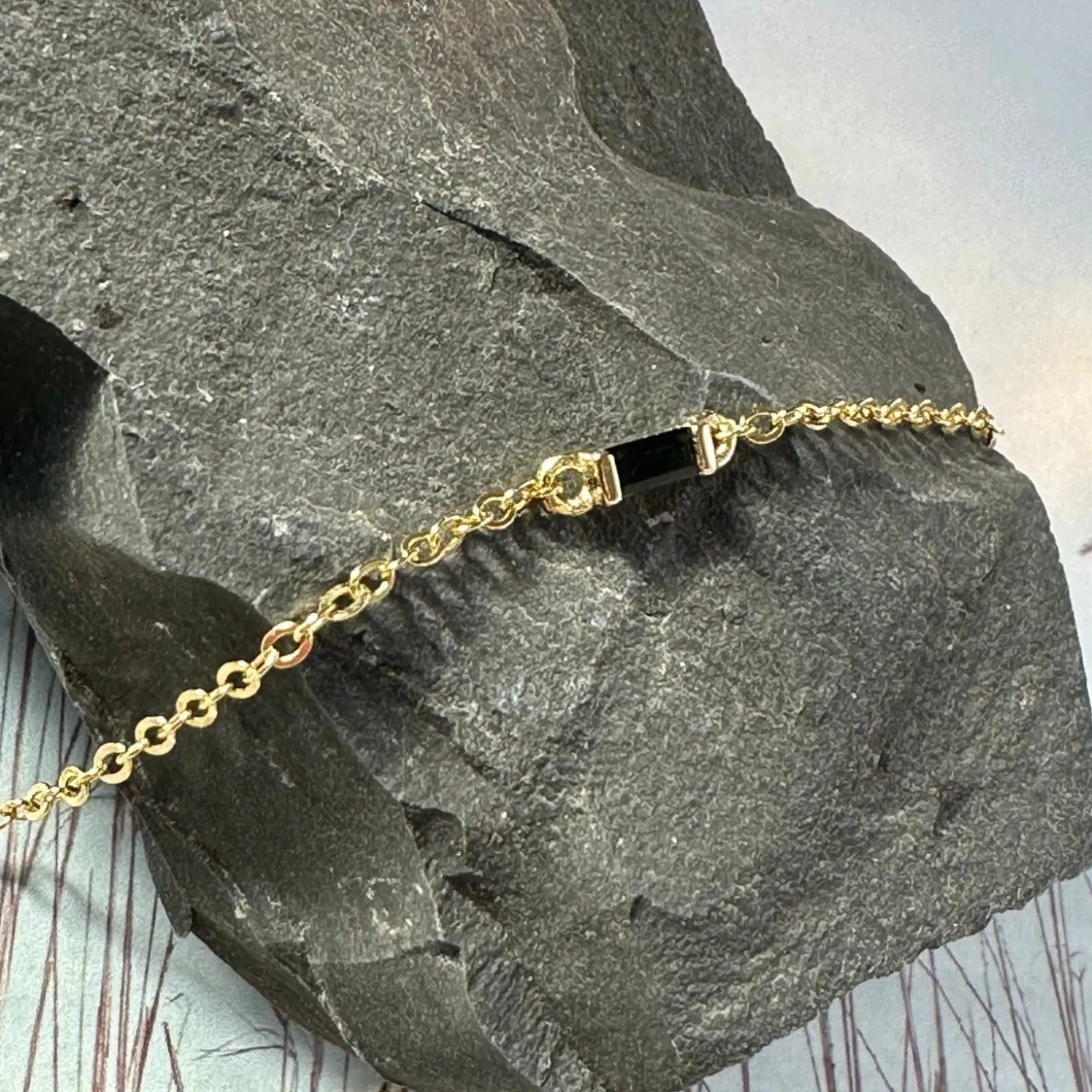Et rigtigt fint armbånd i en fin pris. Udført i Sterling sølv forgyldt i 18K guld. Det er så fint ‘l dig, der ønsker et fint og enkelt armbånd, men er også fint at mikse med andre armbånd. I midten sidder en sort CZ Zirkon.