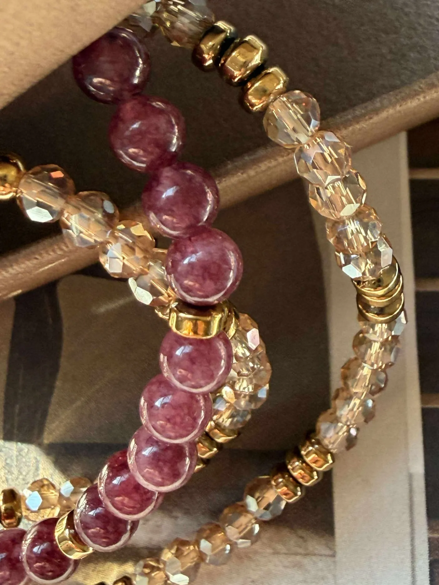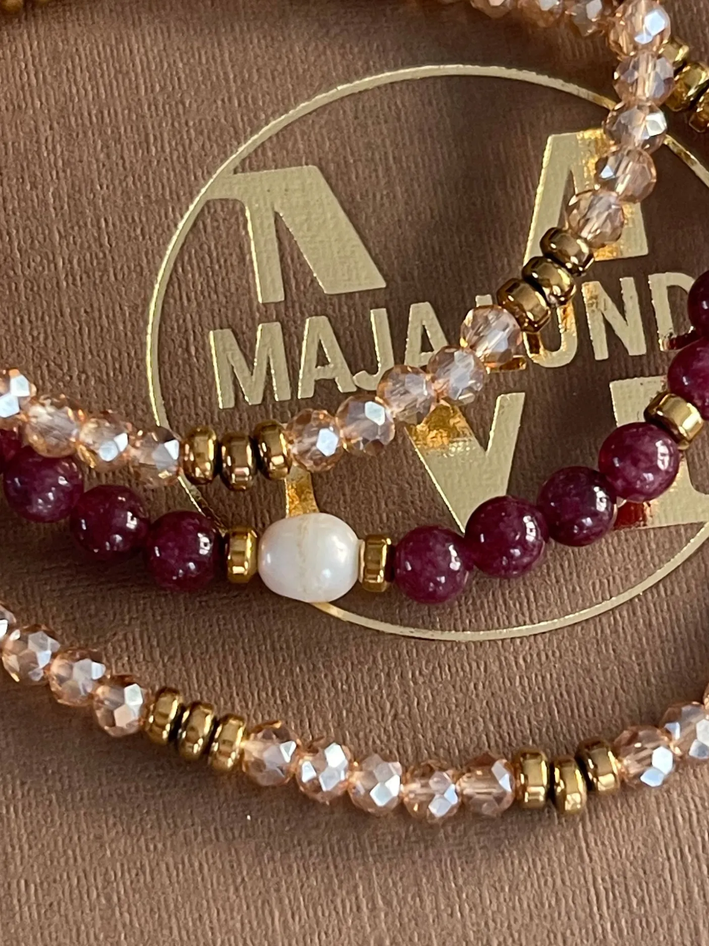 - 1 x Naturstens-armbånd i bordeaux tone og med ferskvandsperle