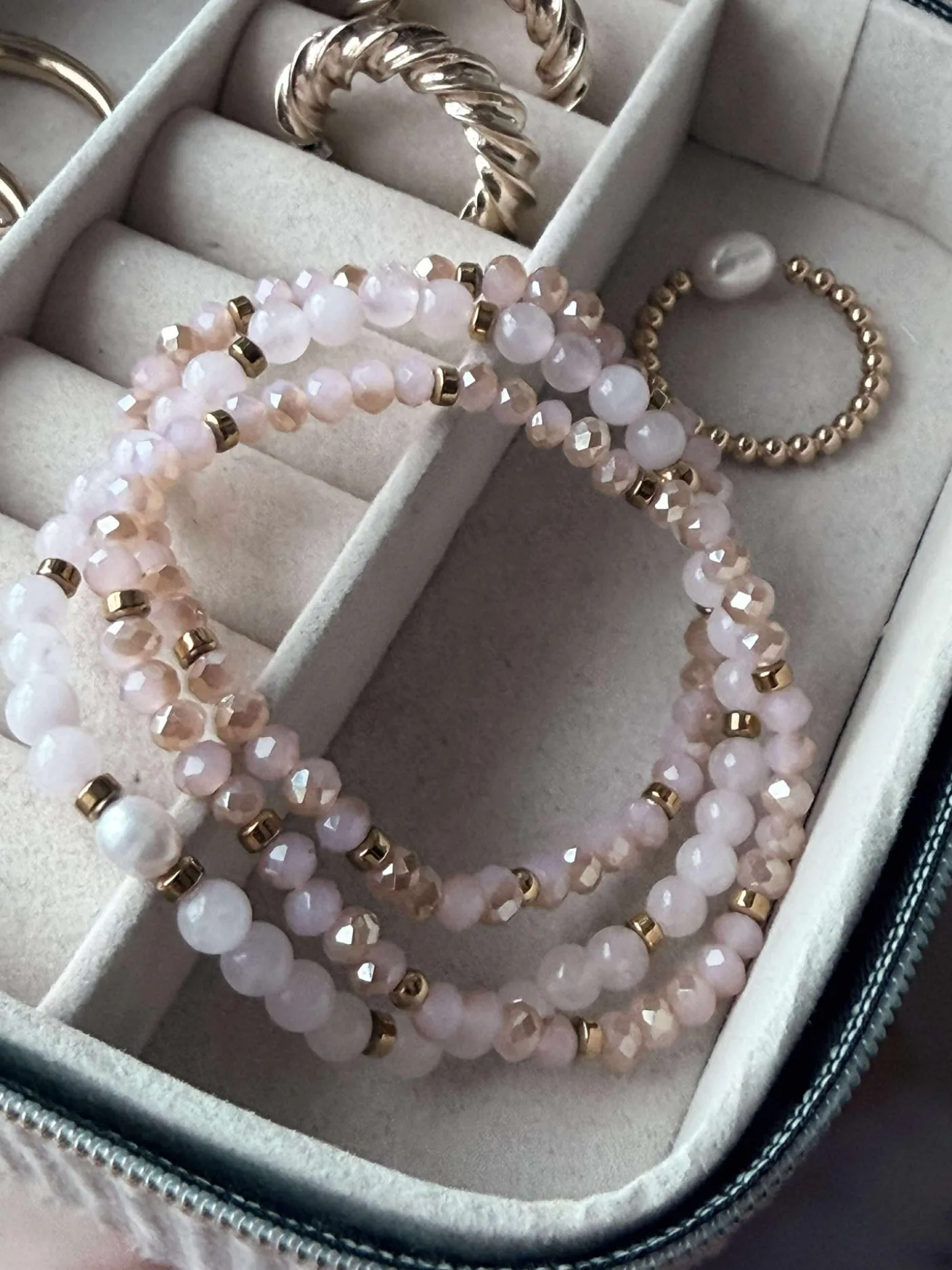 - 1 x Naturstens-armbånd i soft rosa og med ferskvandsperle