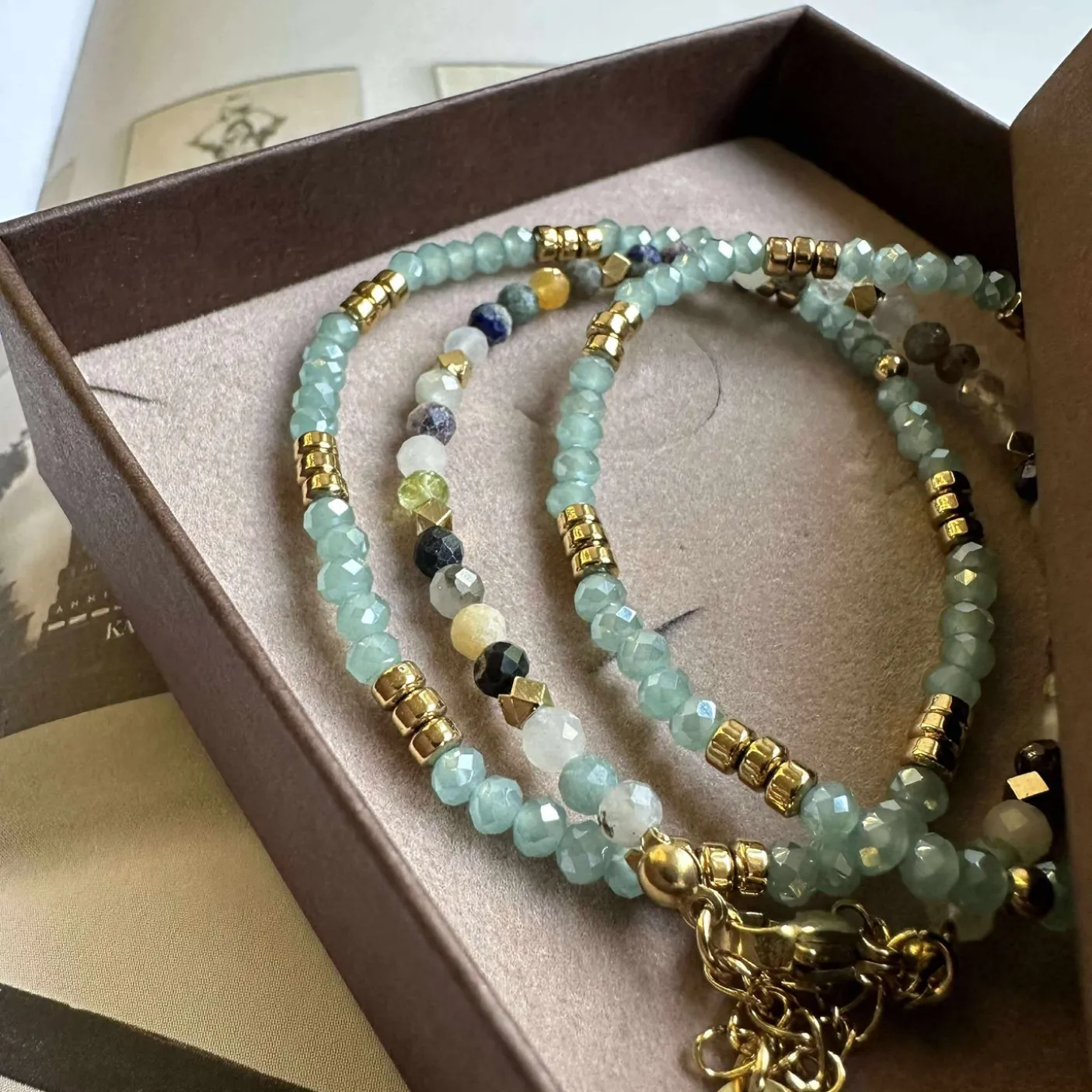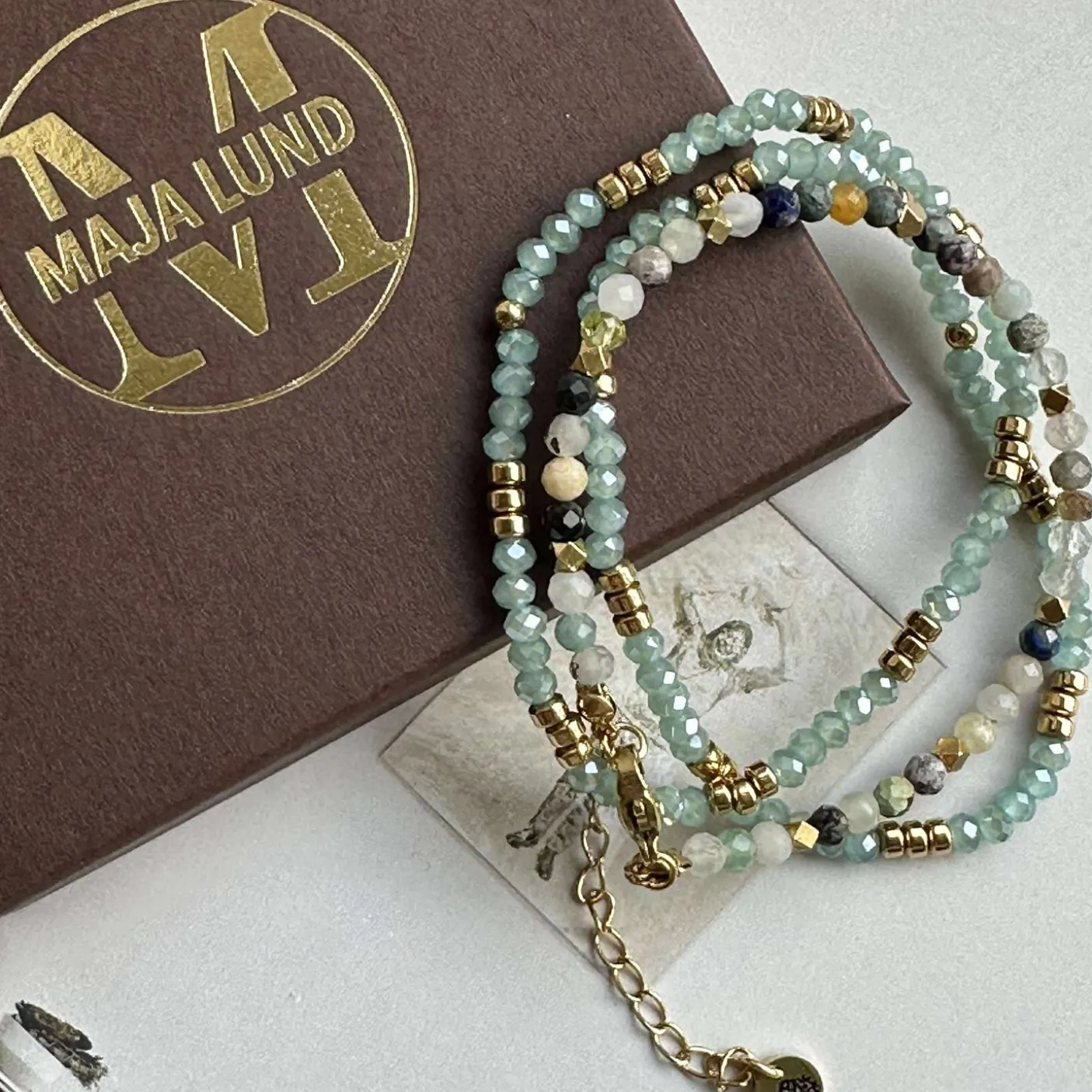 Marika armbånds-sæt med 3 stk armbånd. Armbåndet med de 3 mm facetterede semi precious sten er i mange farve-nuancer. Derudover får du to komplimenterede armbånd, så du får altså hele 3 armbånd til en skarp pris.
