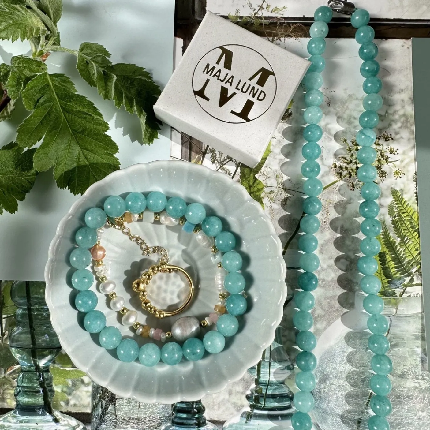 Dette armbånd er i smukke aqua natursten som hver er 7 mm.
