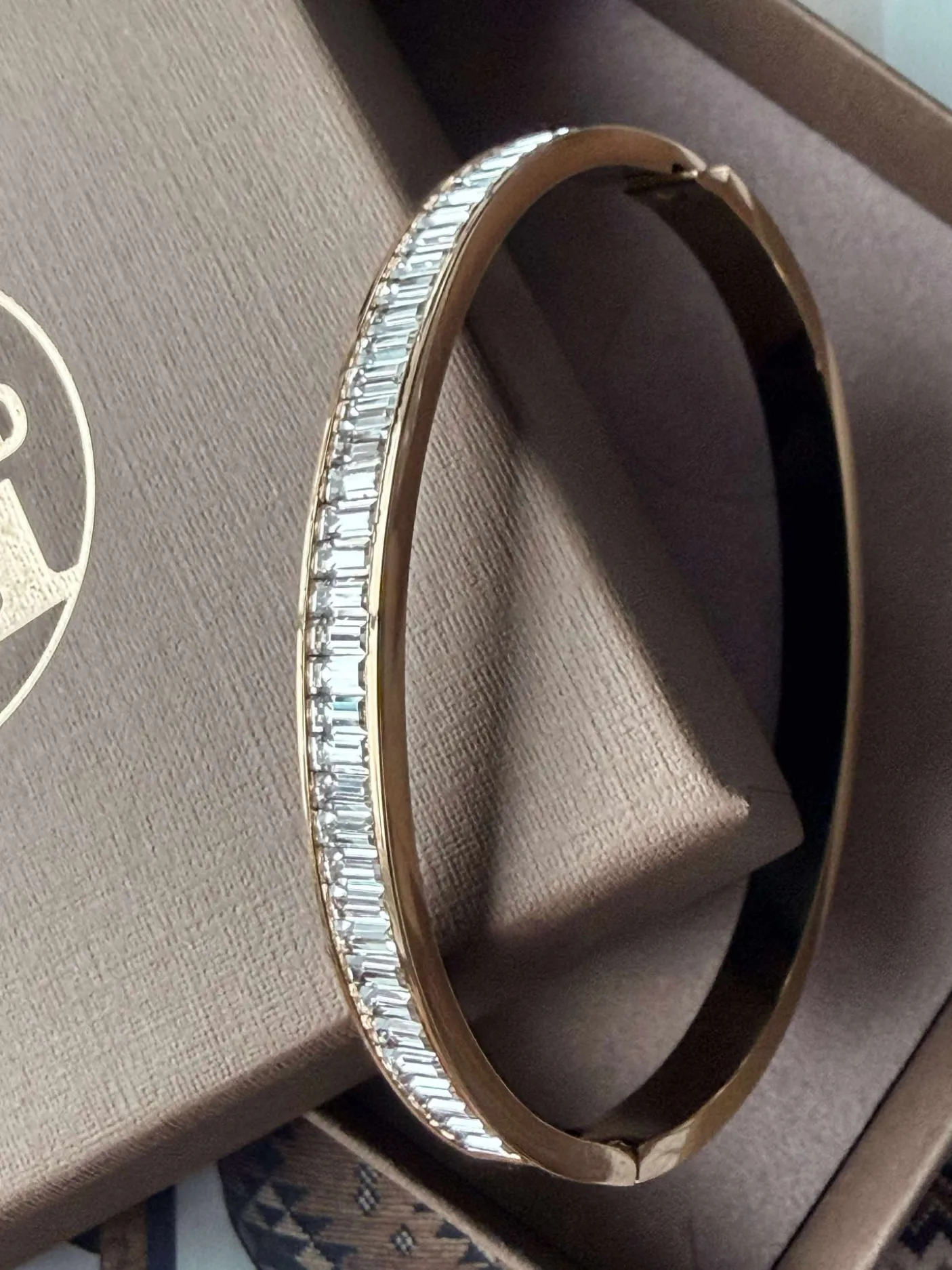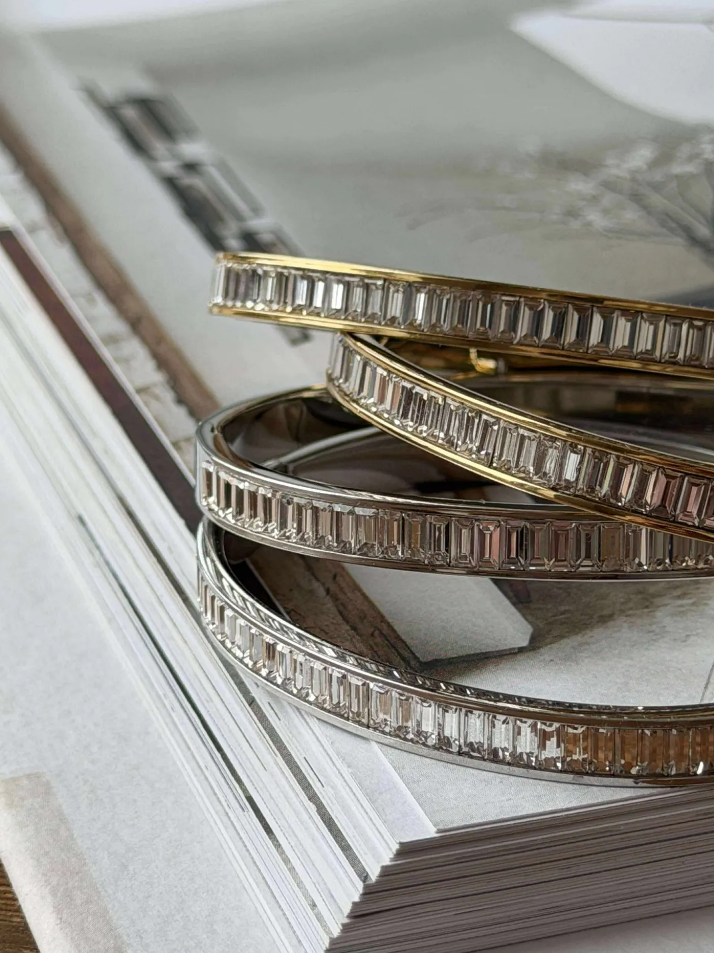 - Sten: Isat baguette CZ sten langs armbåndets bredde.