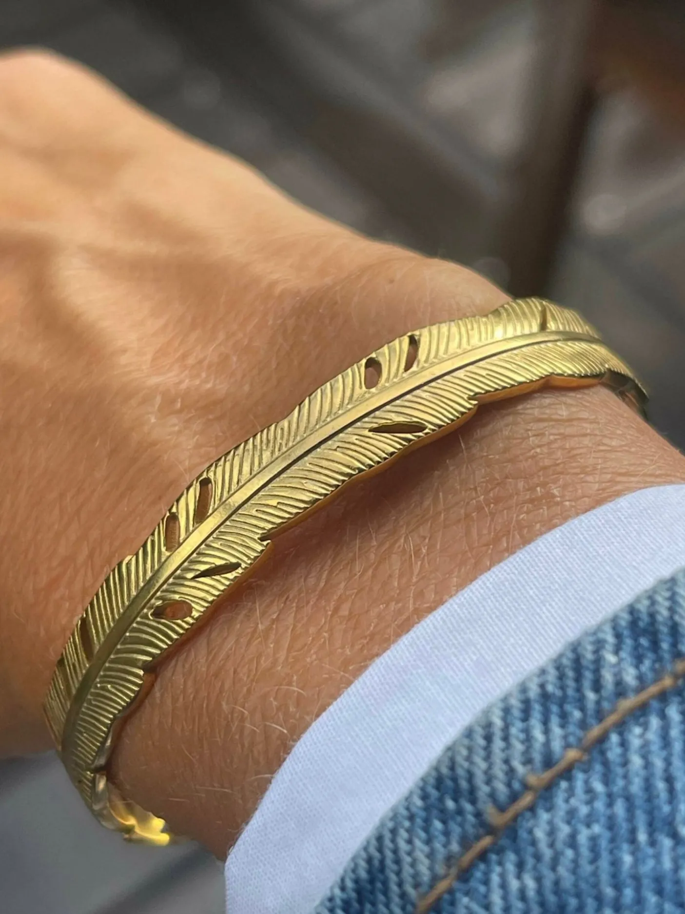 Armringen er forgyldet / guldbelagt og fremstår i guld, hvilket giver et varmt og markant udtryk.