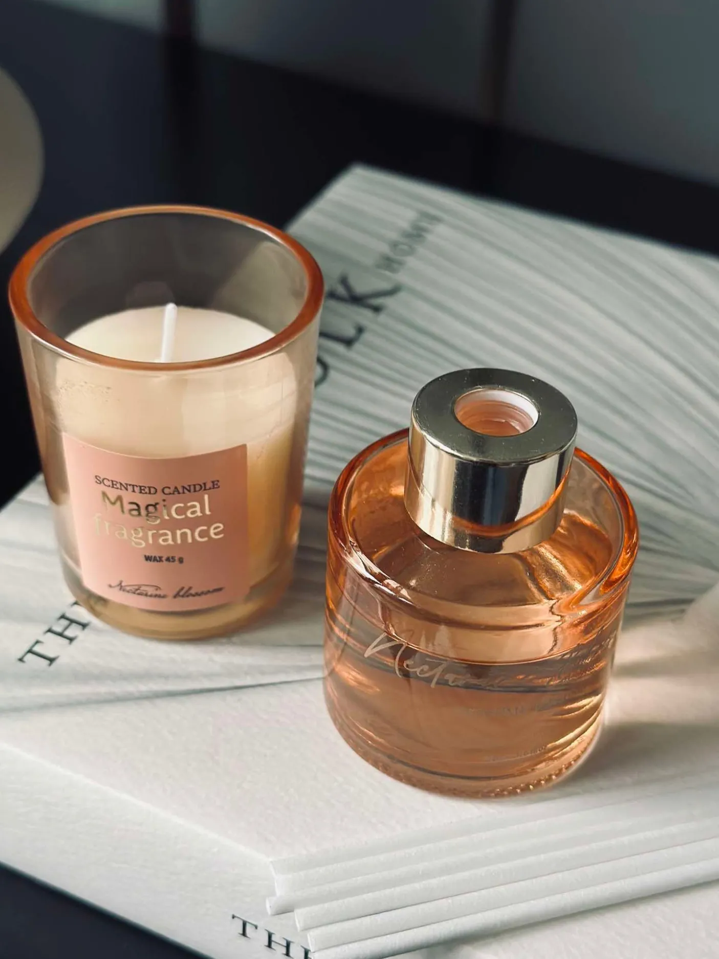 Aroma gavesæt bestående af et duftlys og en diffuser.