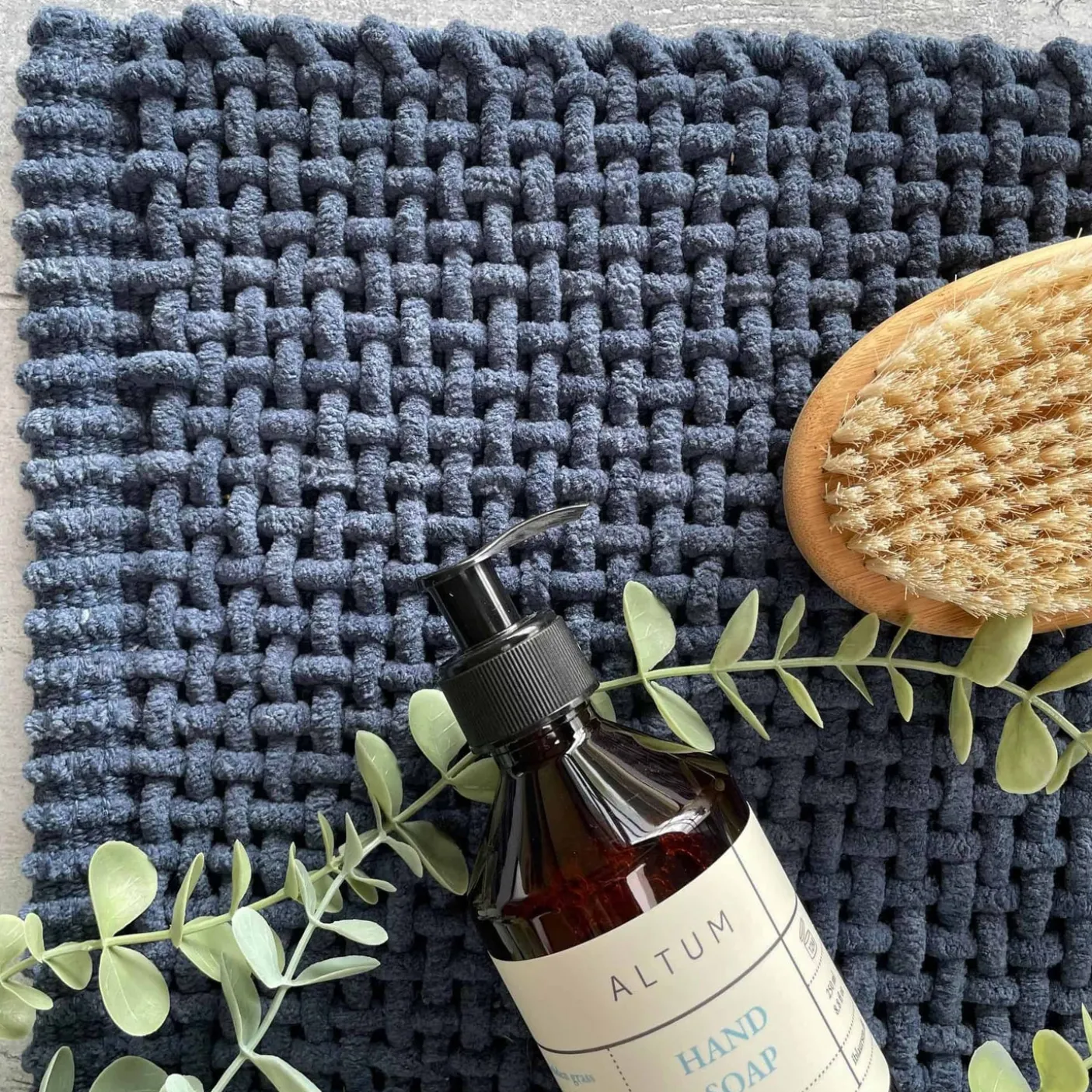 Bademåtten er vaskbar, og har en let skridsikker bagside.