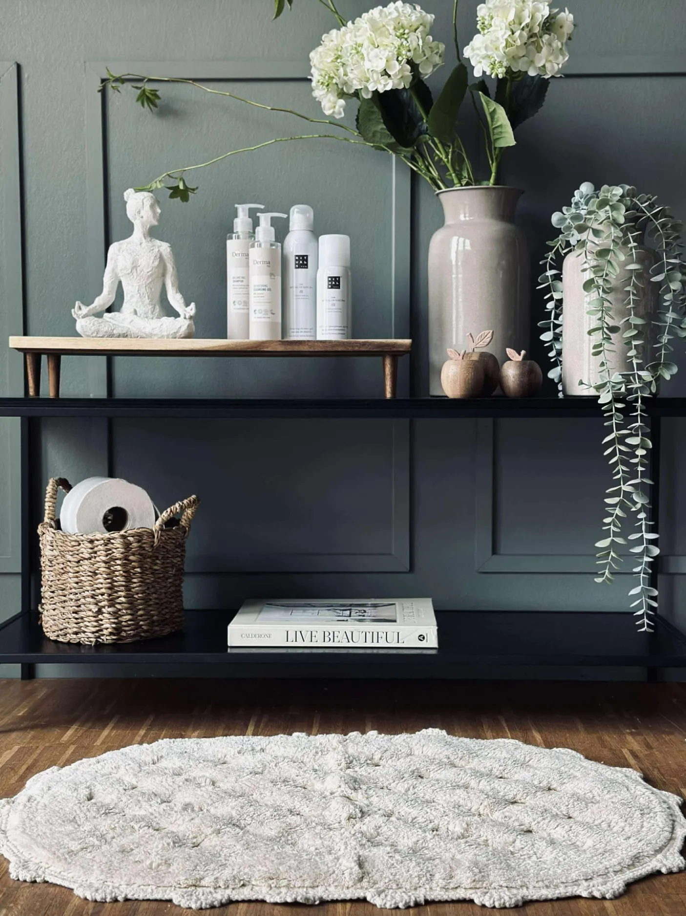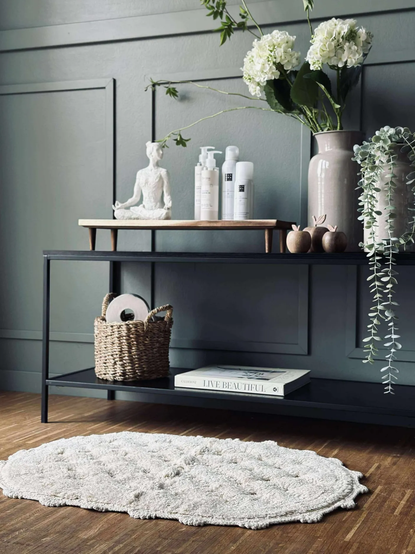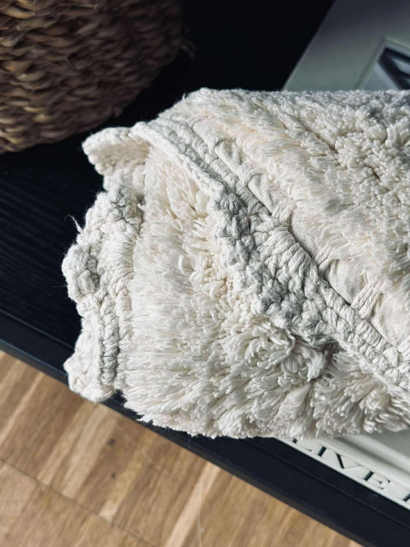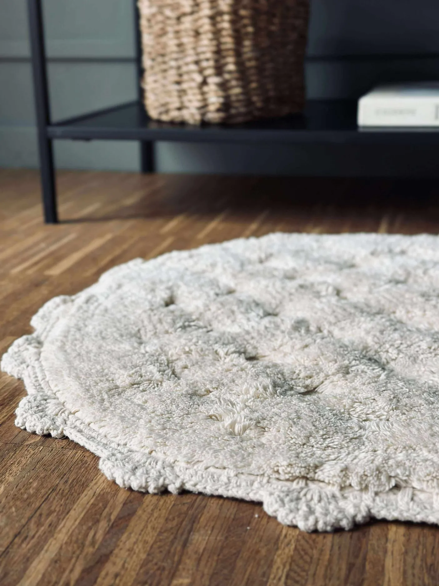 Bademåtten har en fin hæklet kant.