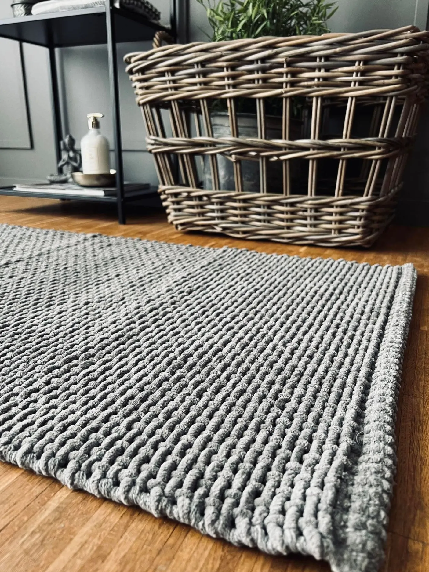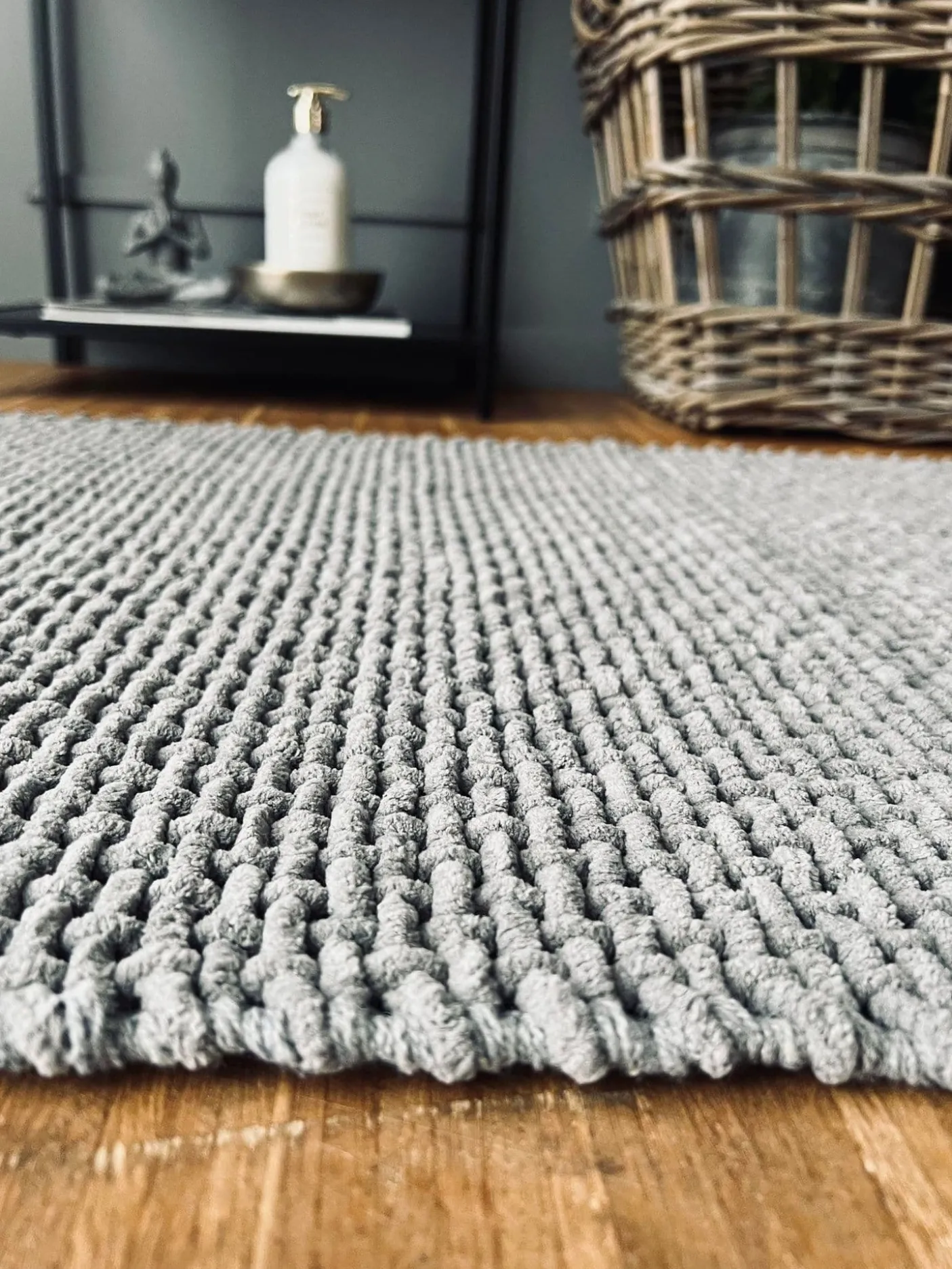 Bademåtten er vaskbar, og har en let skridsikker bagside.