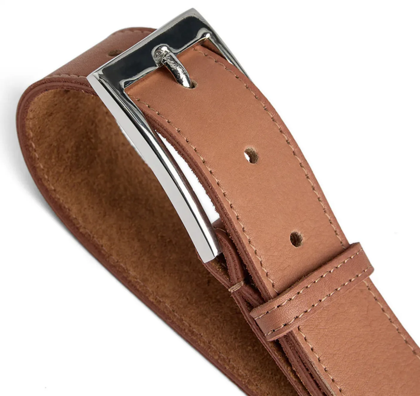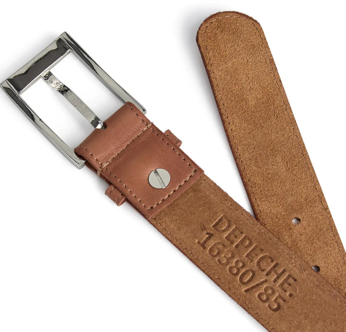 Materialet er skind, og bæltet har et ensfarvet look i cognac, som giver et varmt og tidløst udtryk.