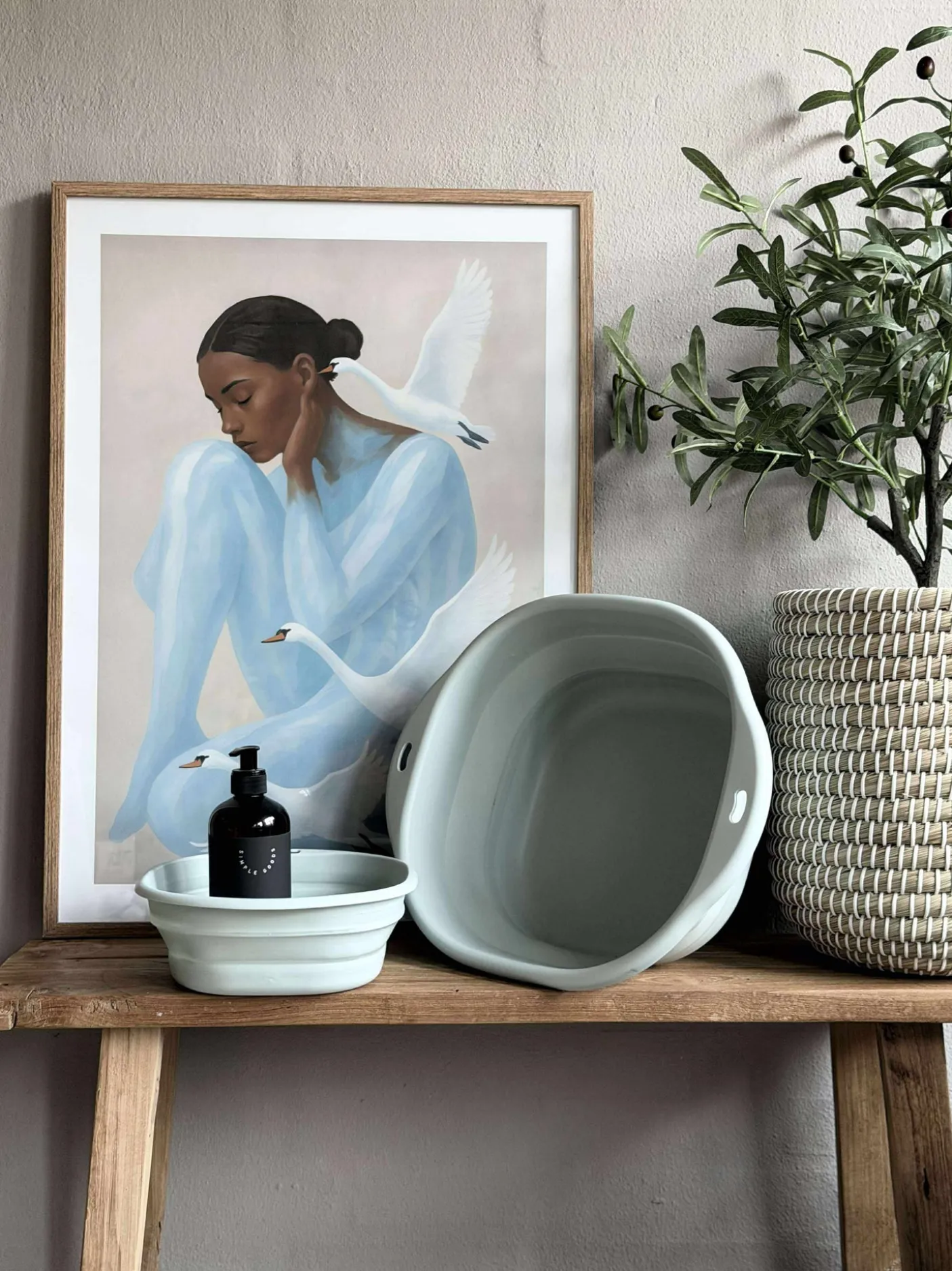 Baljen fylder minimalt under vasken når den er foldet sammen.
