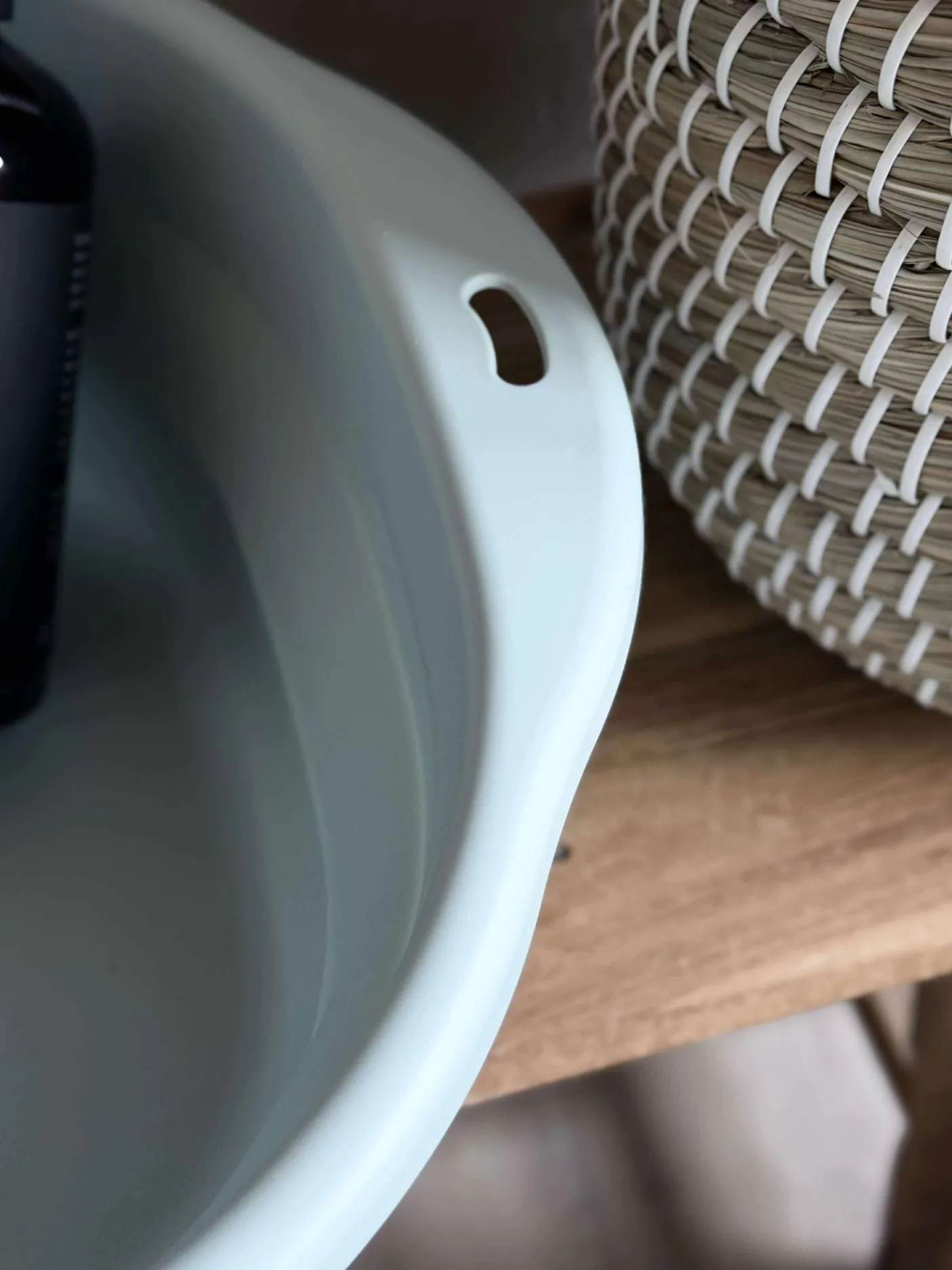 Baljen fylder minimalt under vasken når den er foldet sammen.