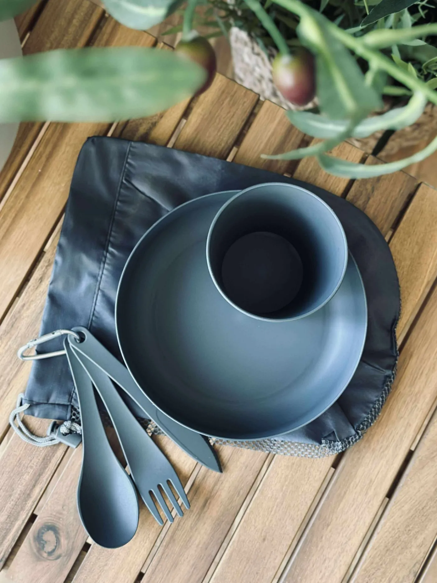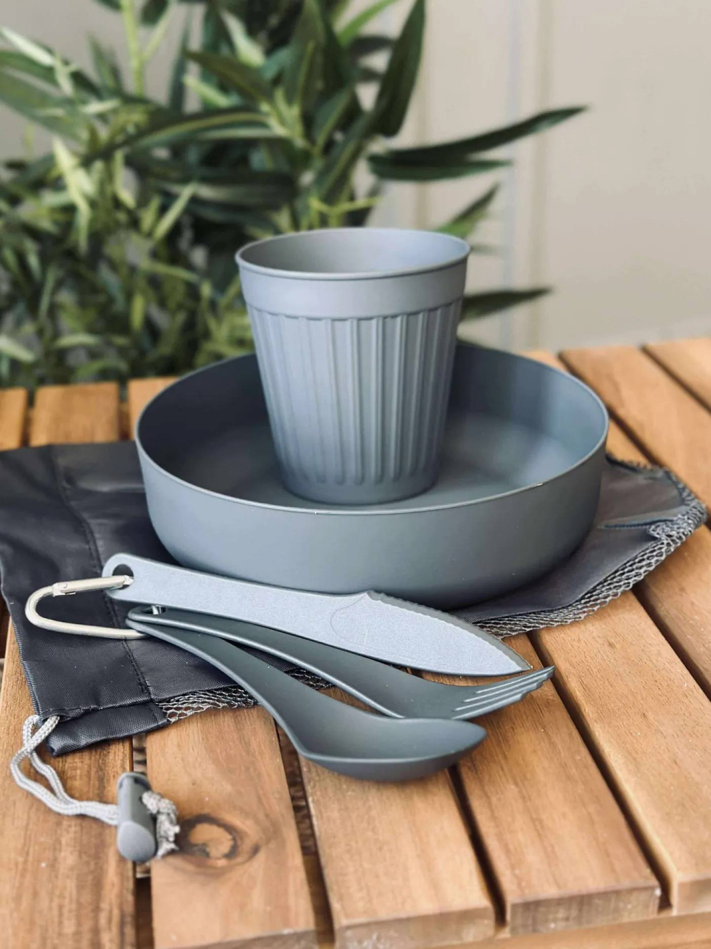 Bestik-sæt med alt du skal bruge til camping , overnatning i telt eller shelter.