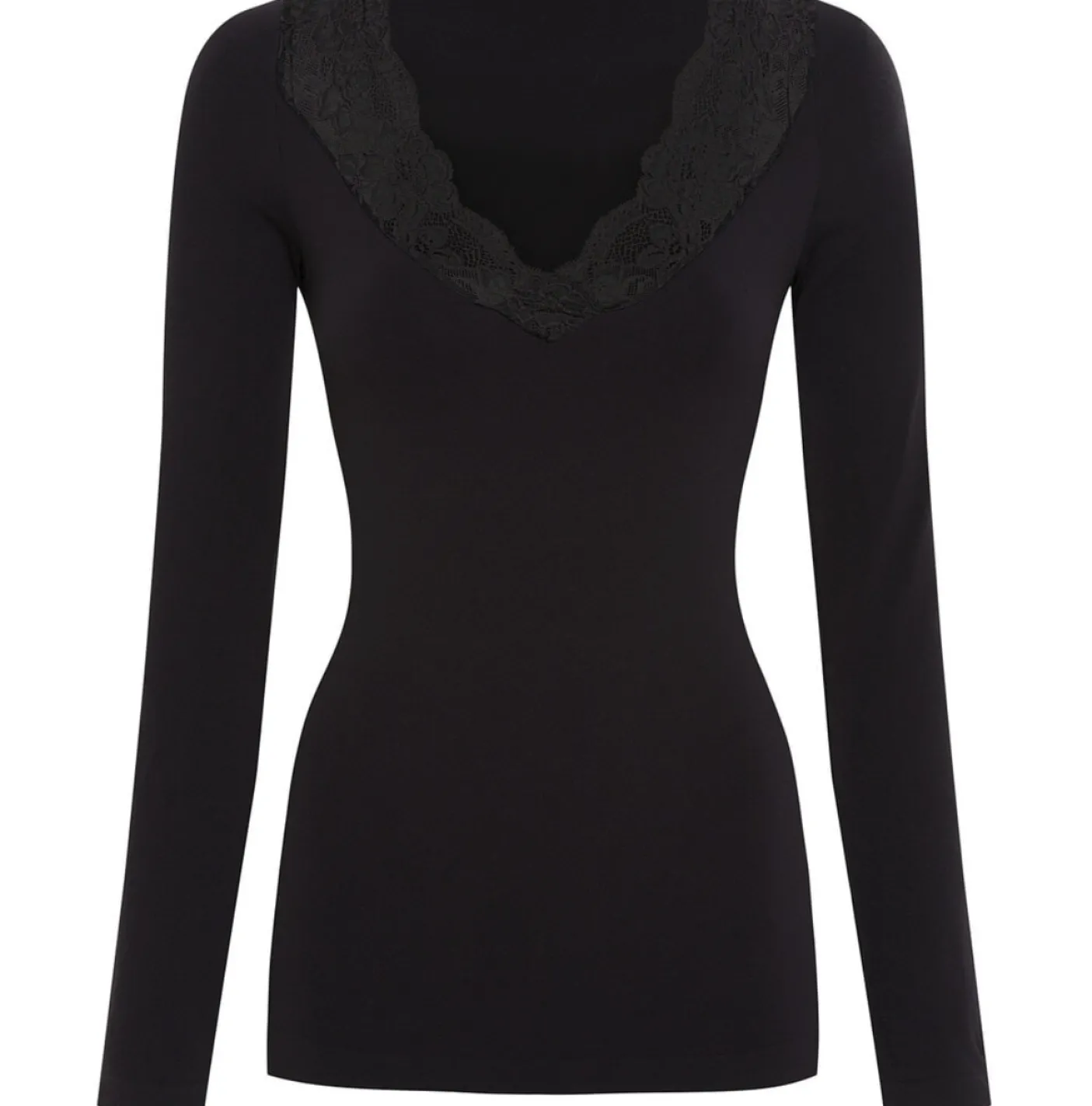Bluse med blonde og V-udskæring i blød mikrofiber.