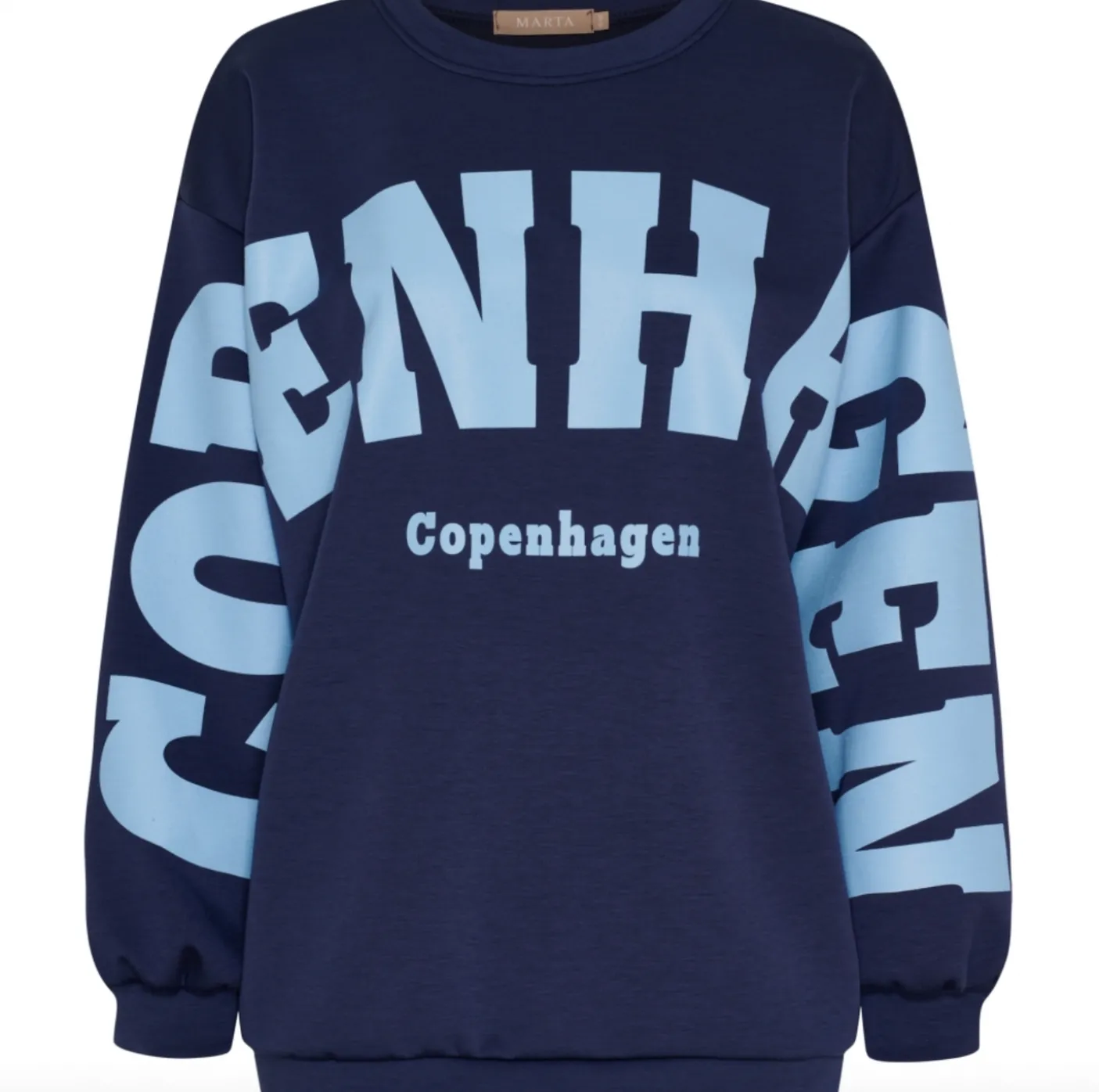 Cool og trendy sweatshirt fra Marta Du Chateau i farvekombinationen Navy / sky. Style den med et par jeans og chunky boots for et råt hverdagsudtryk. Modellen tilbydes i størrelsesgrupperne S/M og L/XL og fungerer som et afslappet, moderne lag i garderoben.