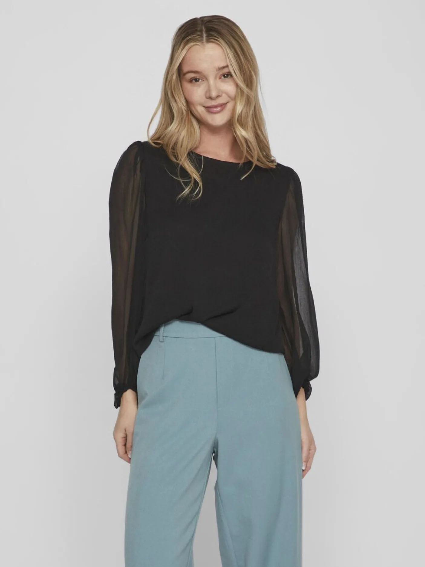 Smuk og elegant bluse med gennemsigtige lange ærmer.