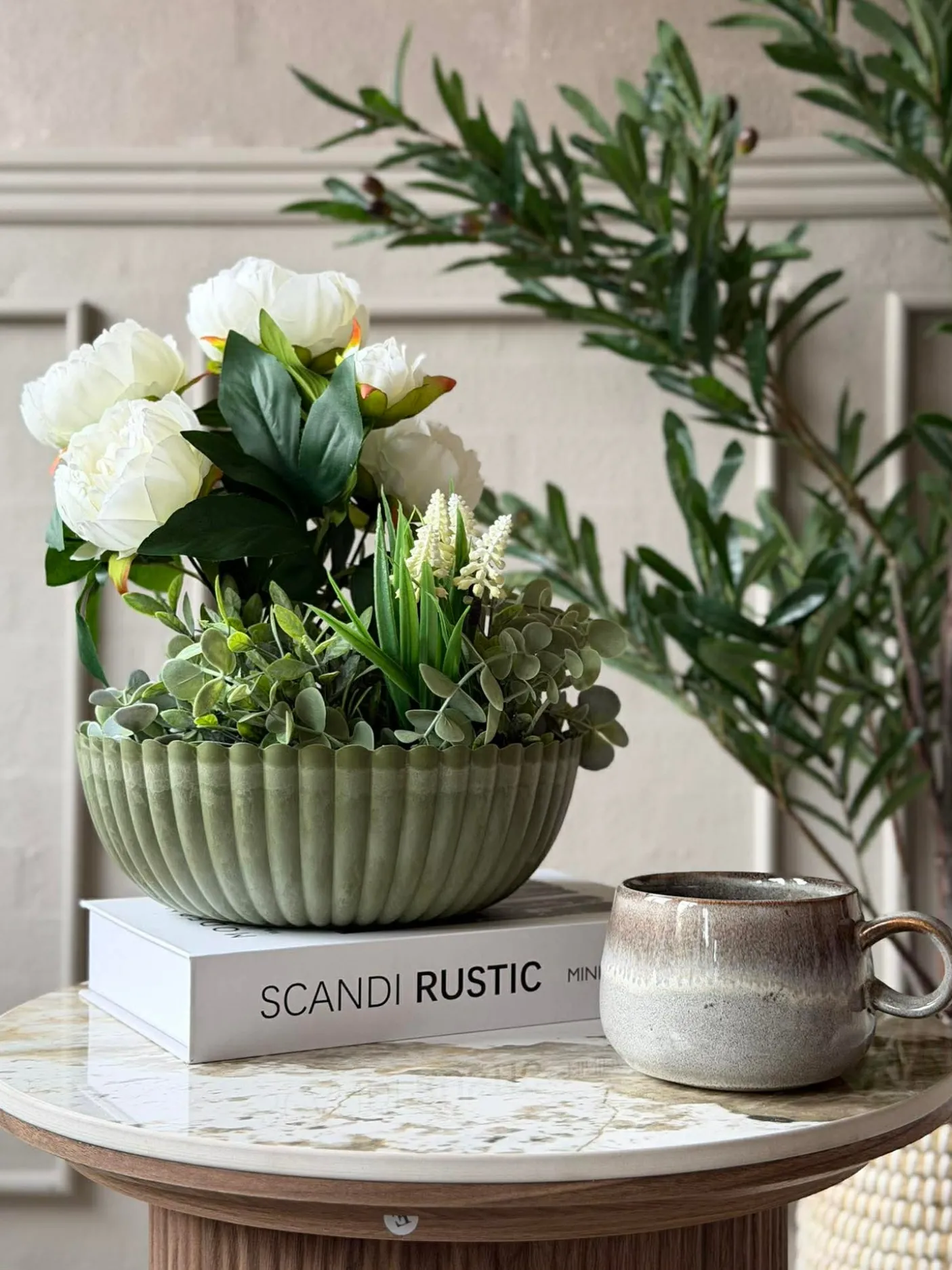 Drop bekymringerne om utætte potter. Denne skål i beton look er lavet af plastik og lækker ikke.