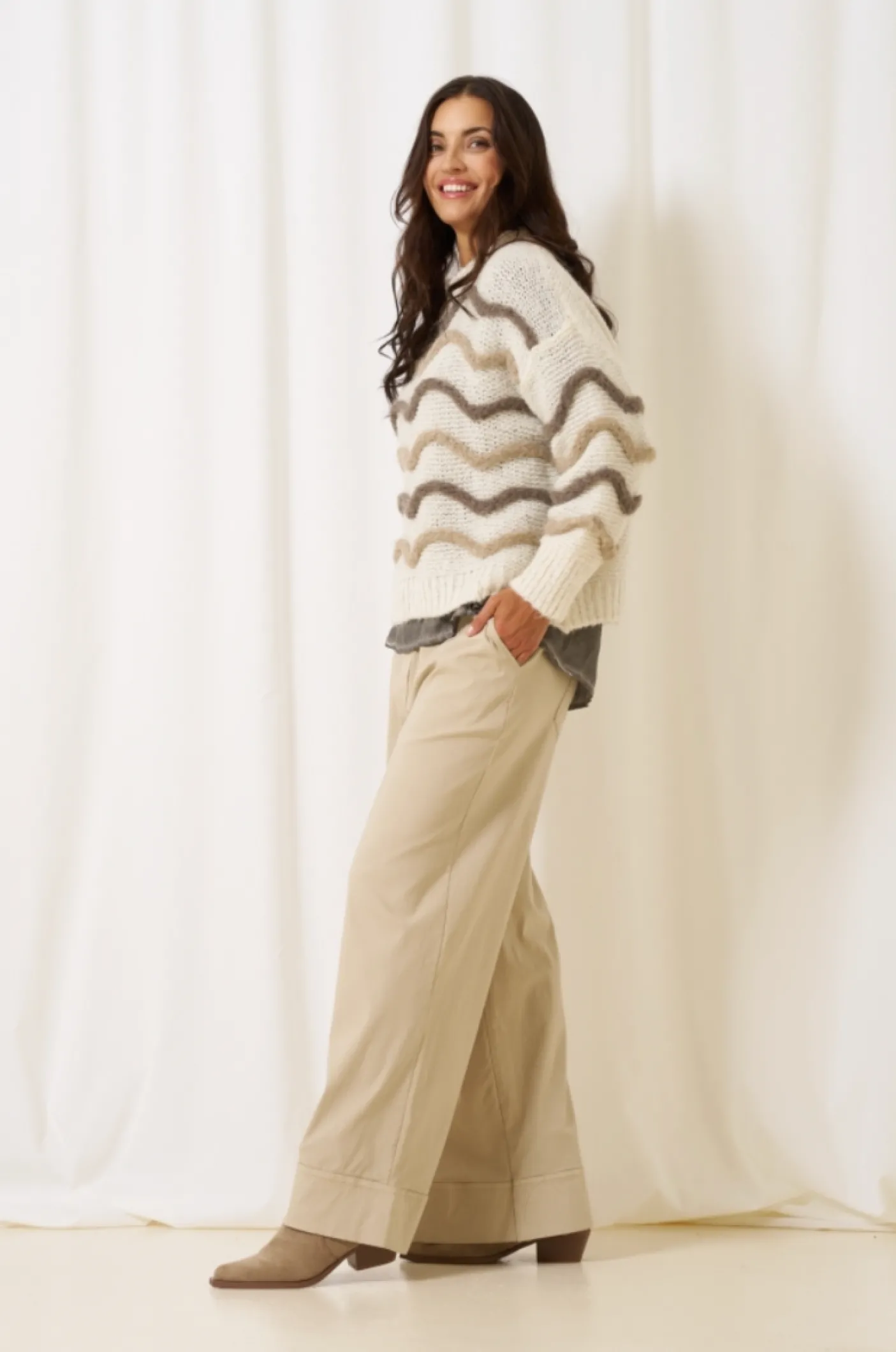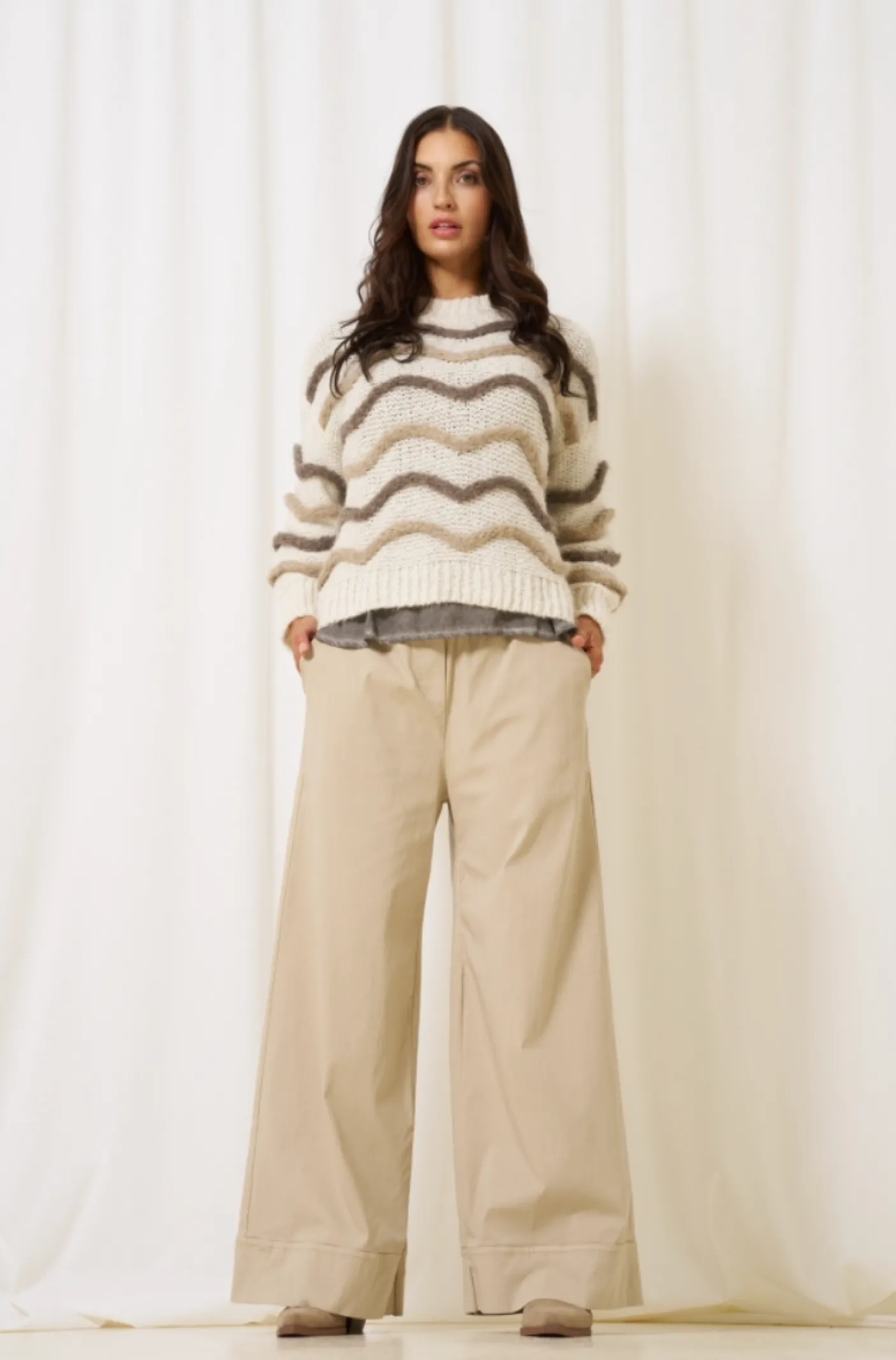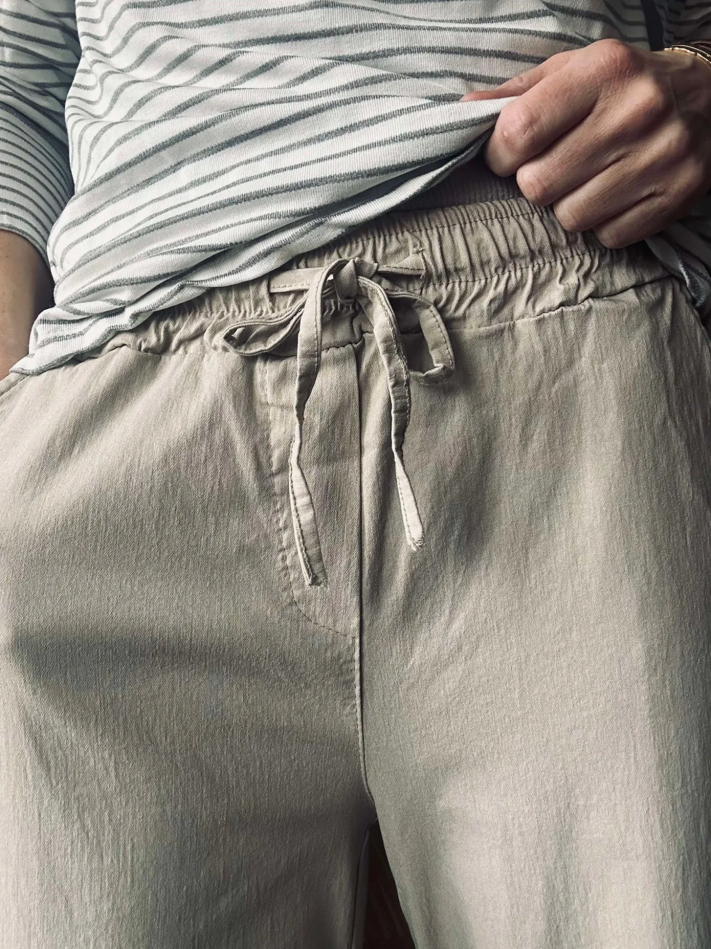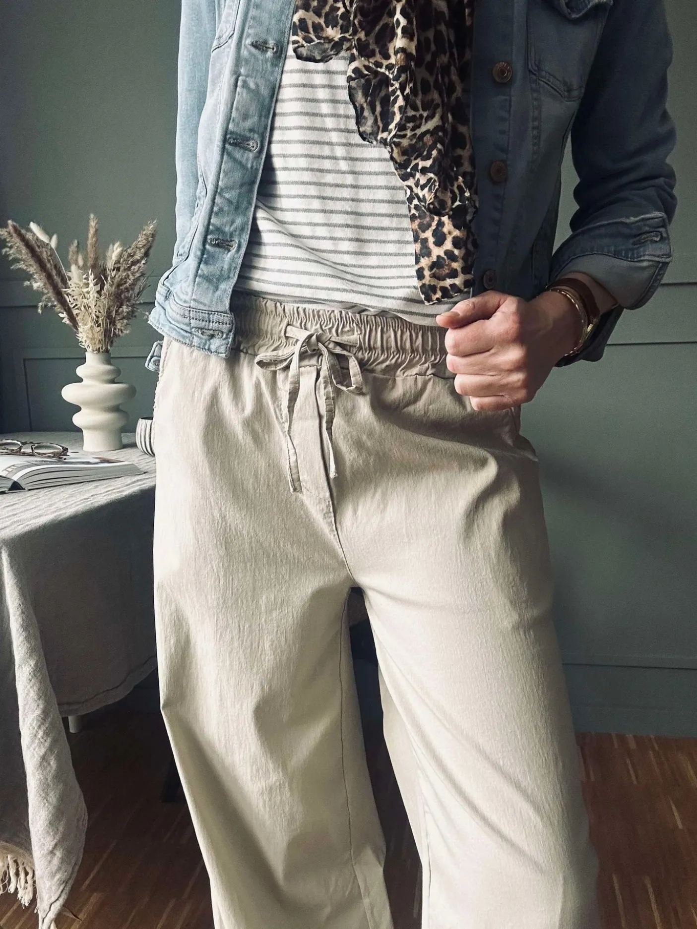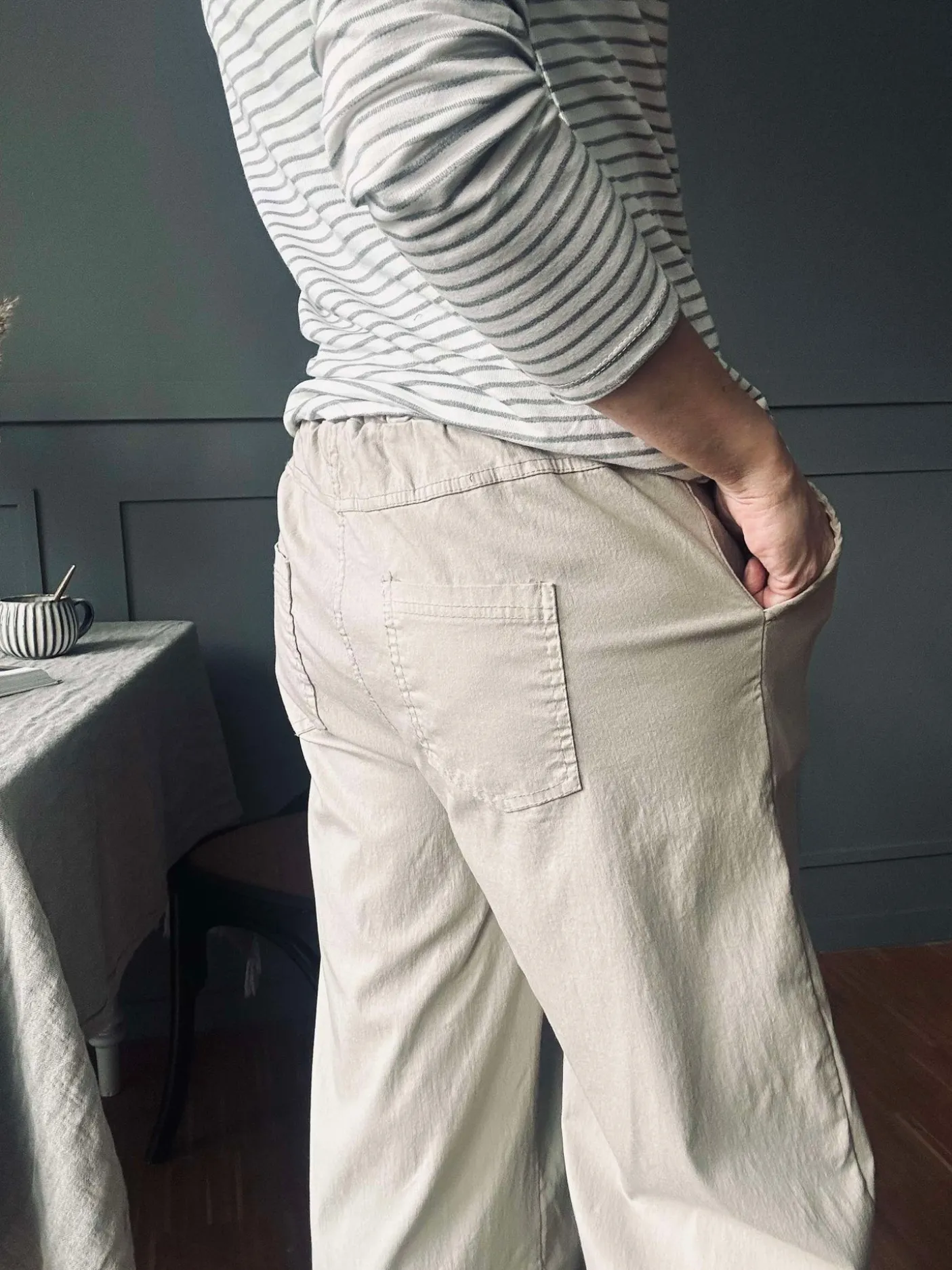 Lette bukser med brede bukseben og elastik fra siden. Kan bruges til både hverdag og fest. Materiale: viskoseblend. Udtryk: et let, flydende snit med et roligt, afdæmpet look.