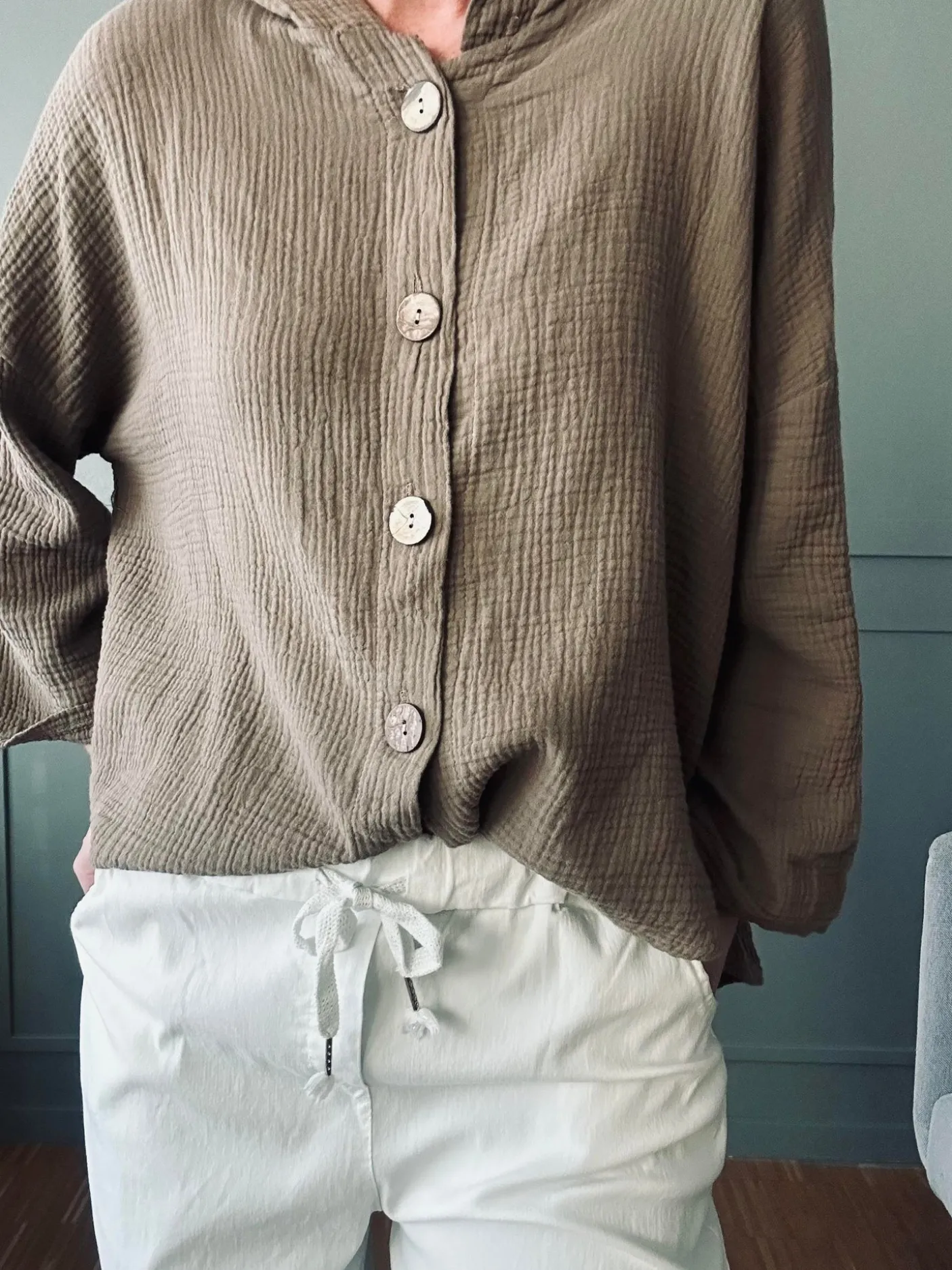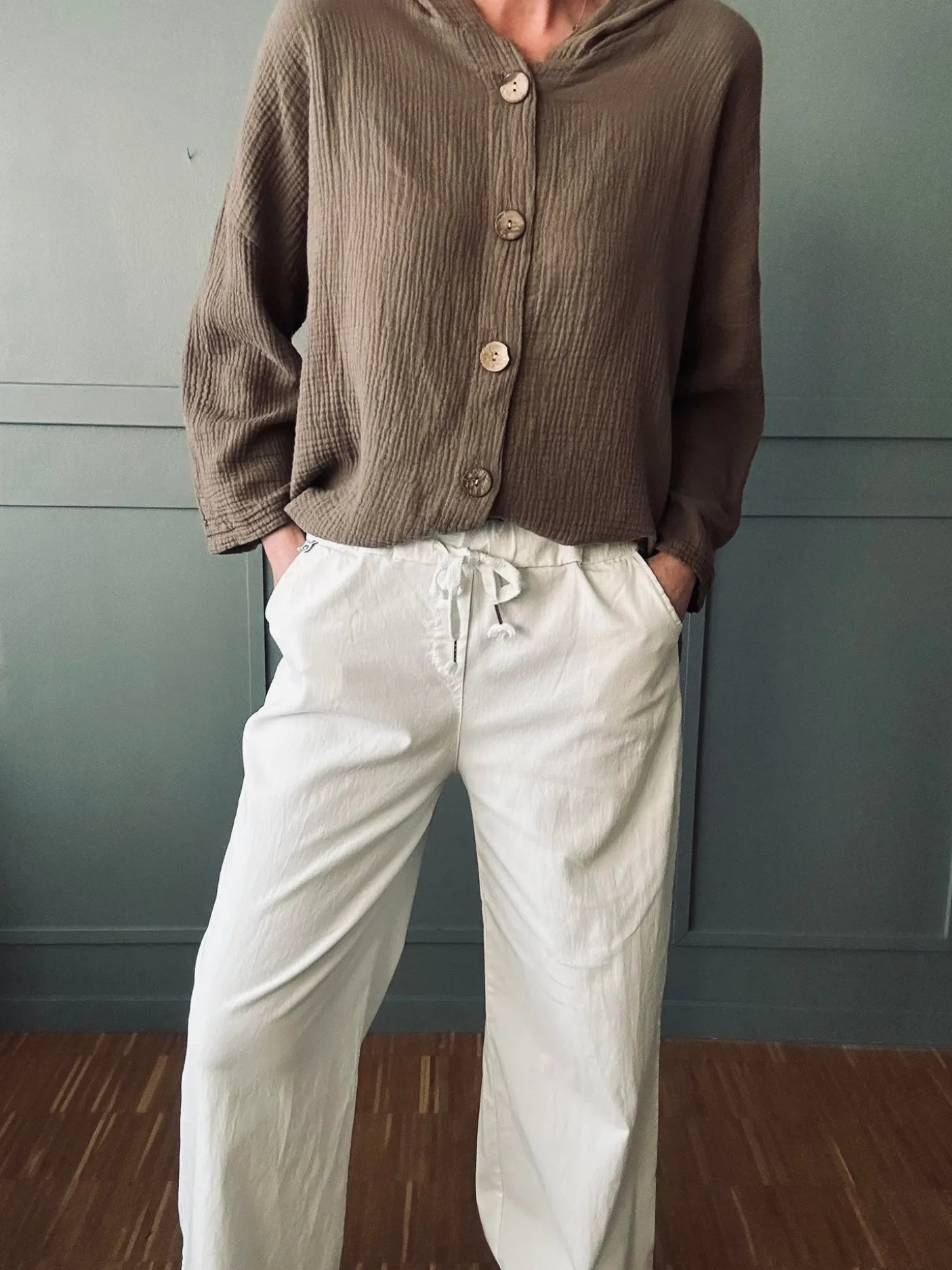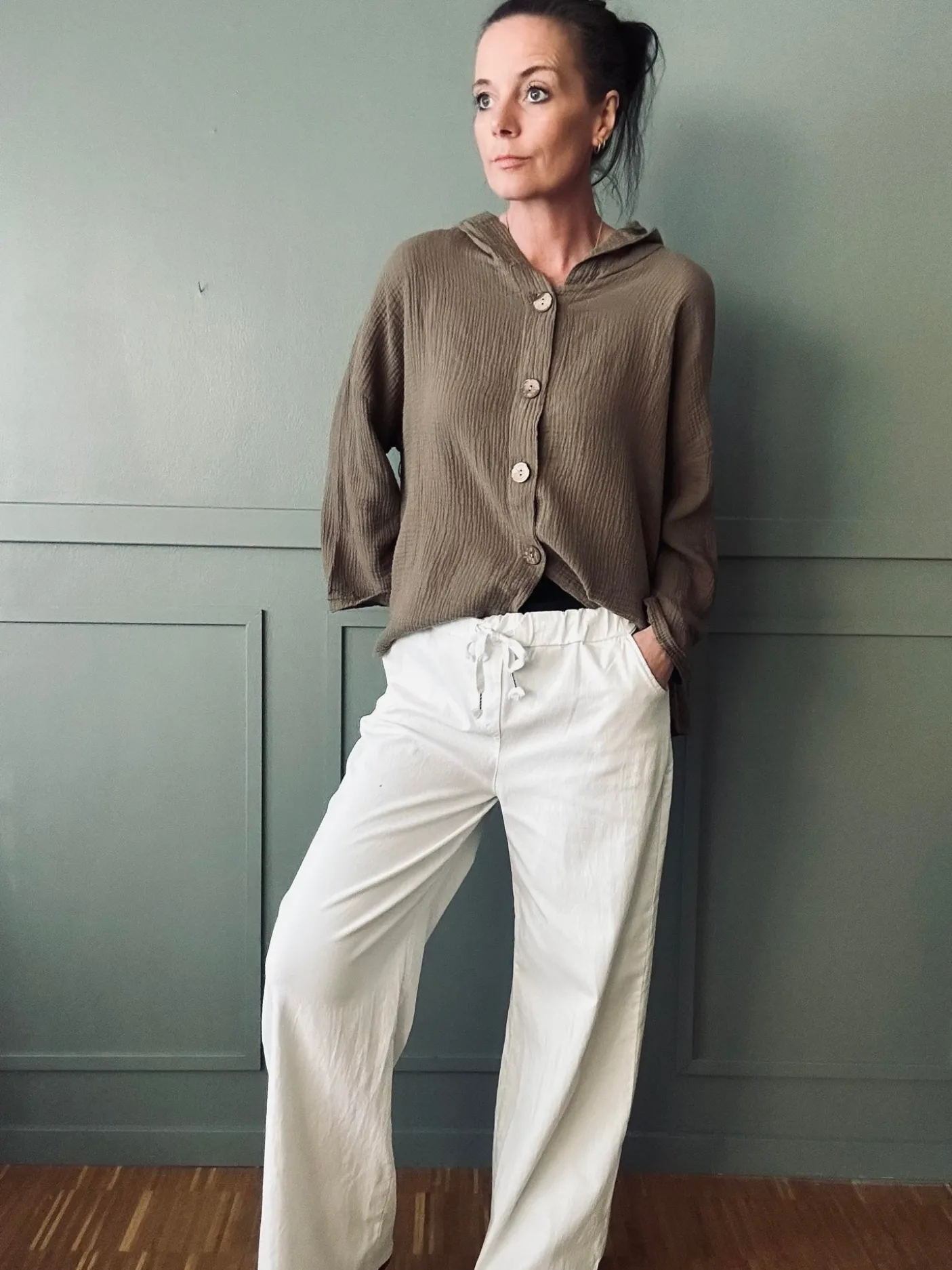 Bukserne fungerer som et komfortabelt hverdagsvalg eller som afslappet basis i en enkel garderobe. Det neutrale hvide udtryk gør dem lette at kombinere med både farvede og dæmpede overdele.