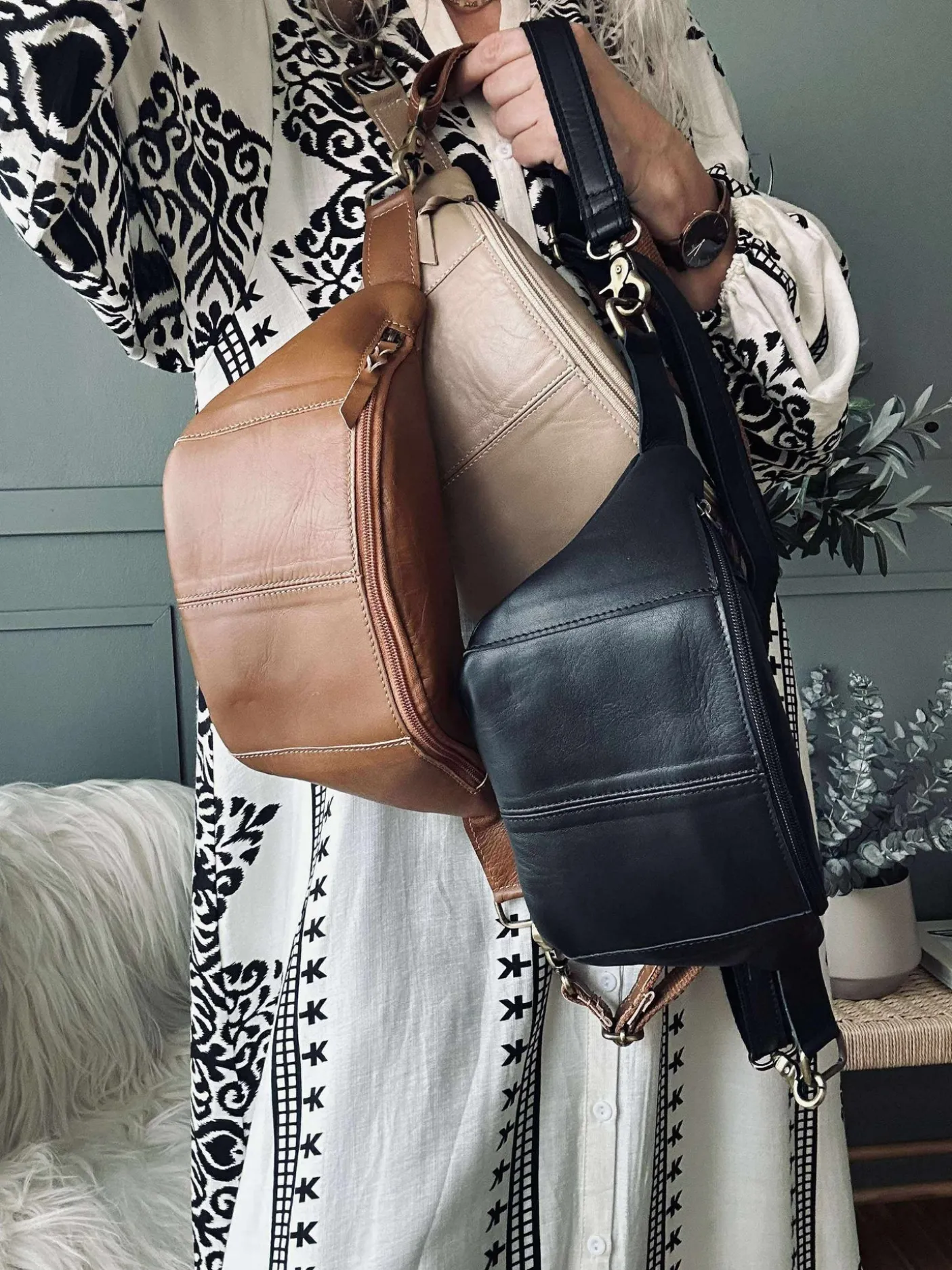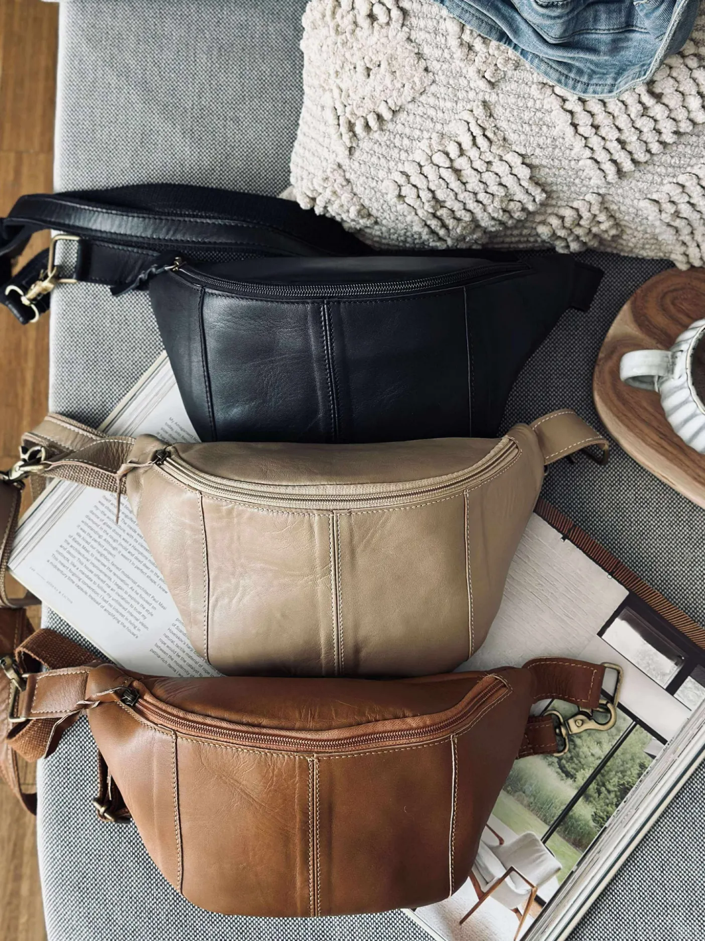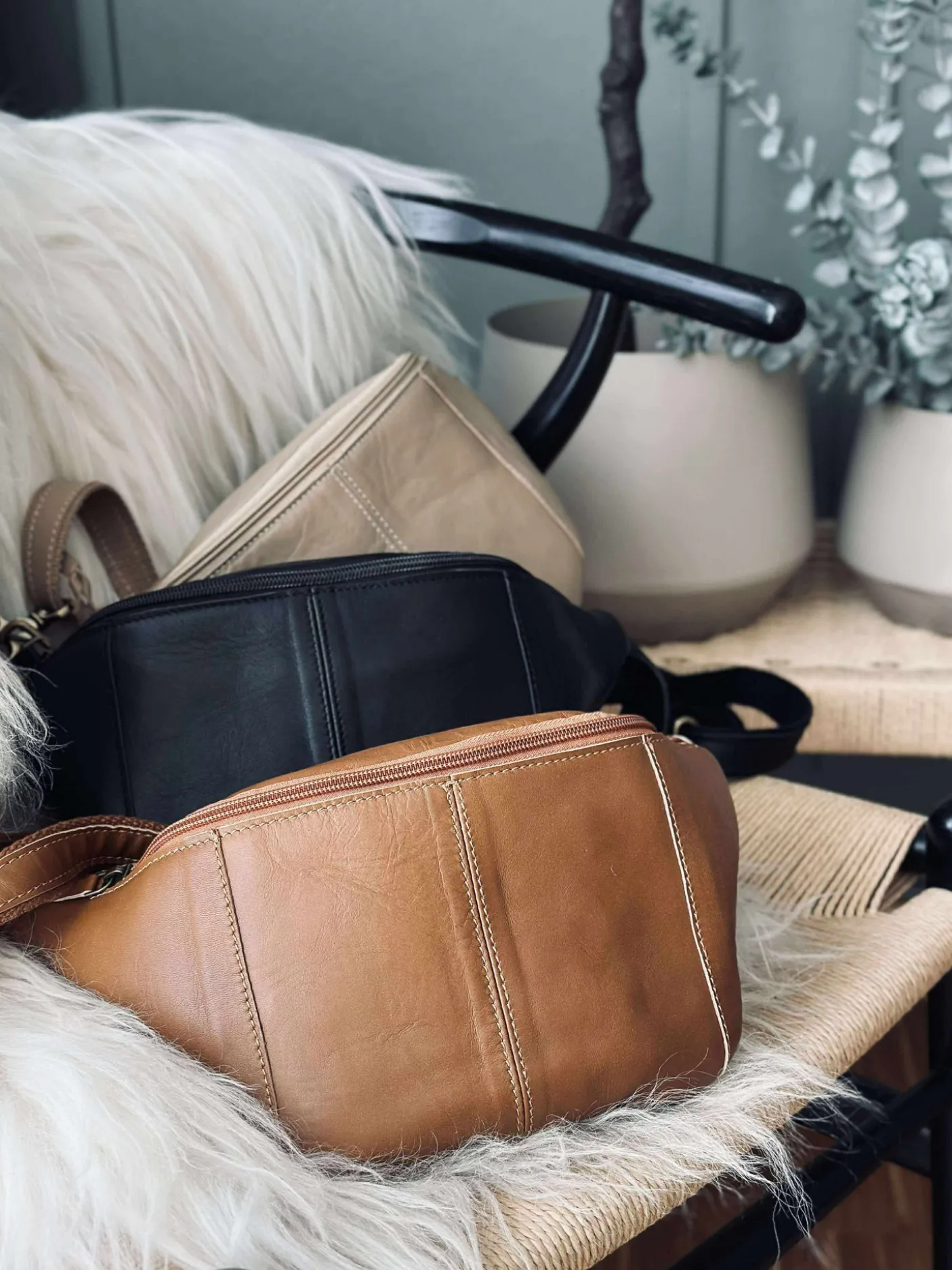 Anna bumbagen findes i 3 farver : Cognac , Sort og Beige