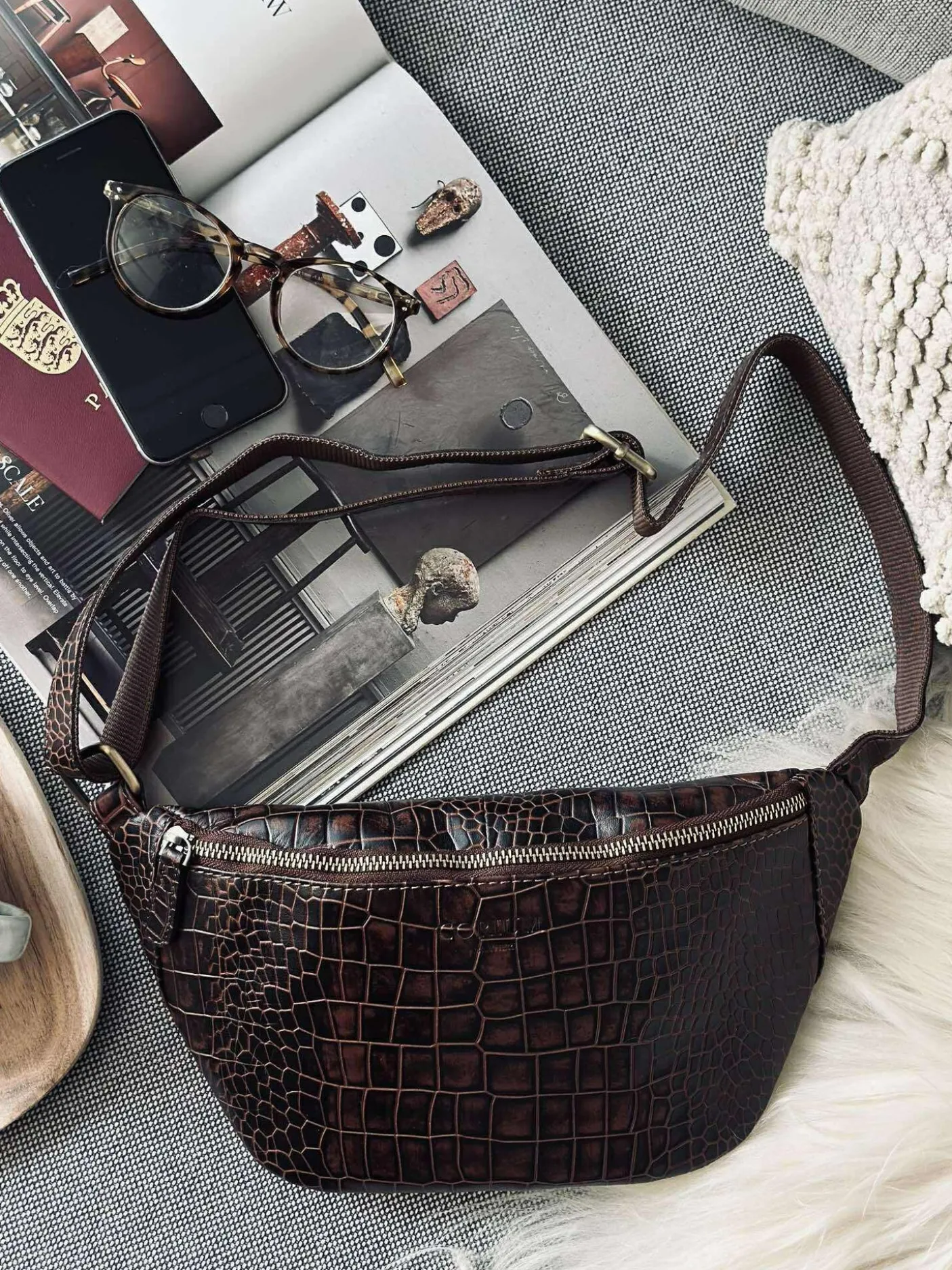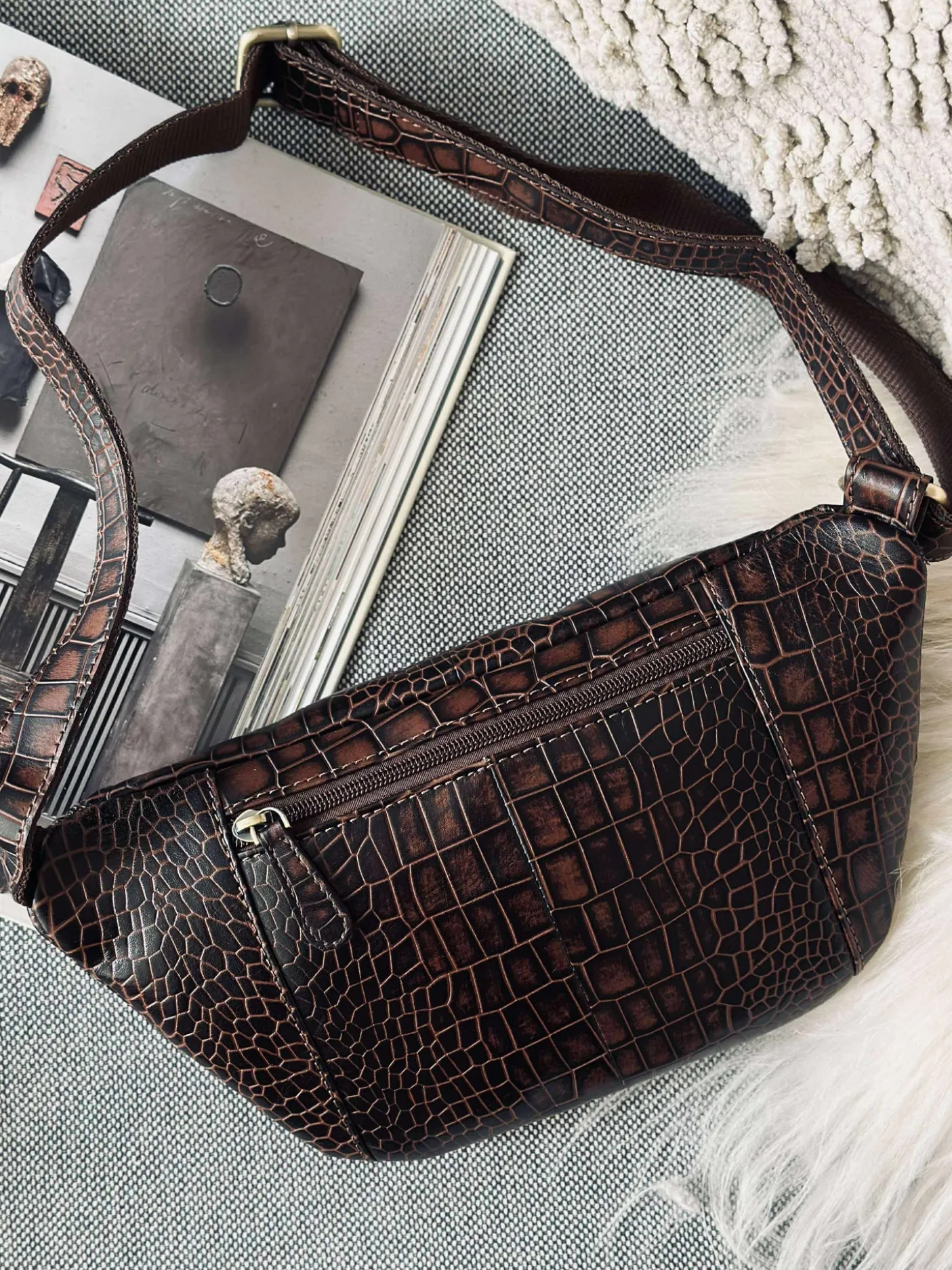 Lækker bumbag i skind med croco mønster.