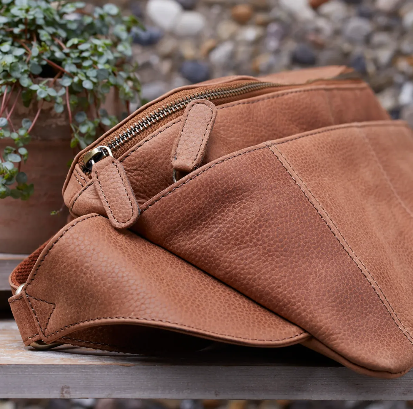 Vores store bæltetaske kombinerer funktionalitet med et sofistikeret udtryk, hvilket gør den perfekt til at holde styr på alle dine ejendele uden at gå på kompromis med stilen. Bumbag fremstillet i kvalitetslæder, hvilket sikrer holdbarhed og et tidløst design, der passer til enhver lejlighed, fra hverdagens ærinder til rejser.