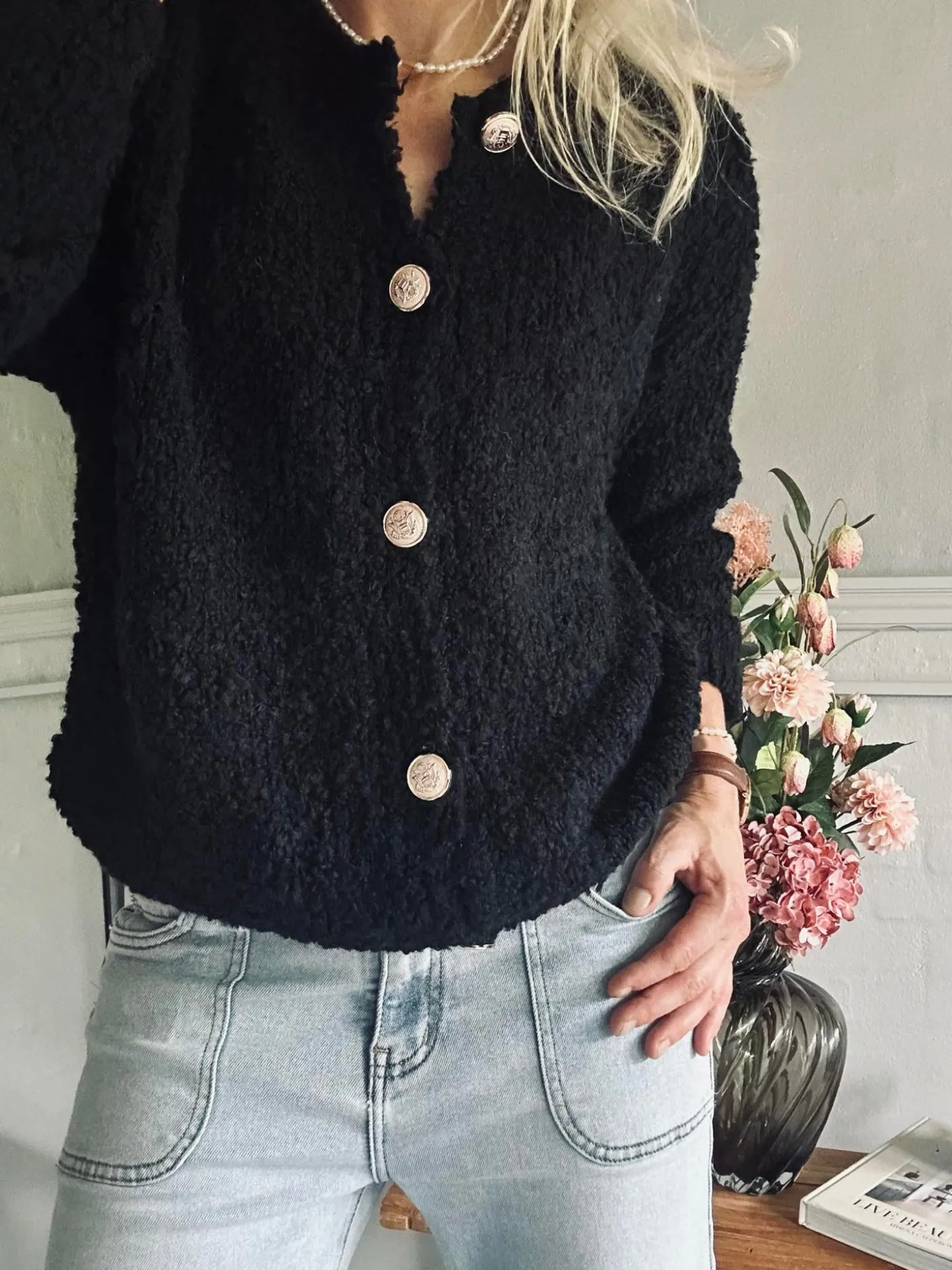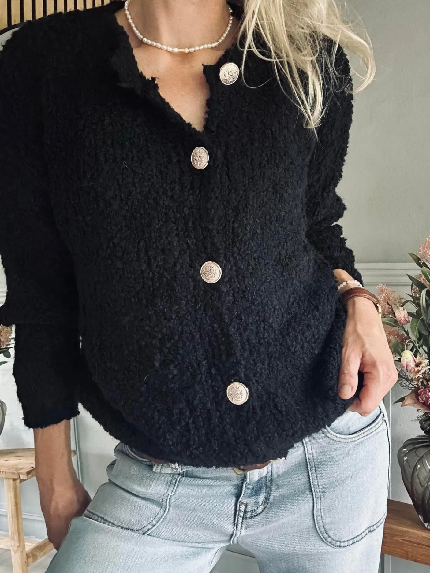 Lækker cardigan med flotte knapper.