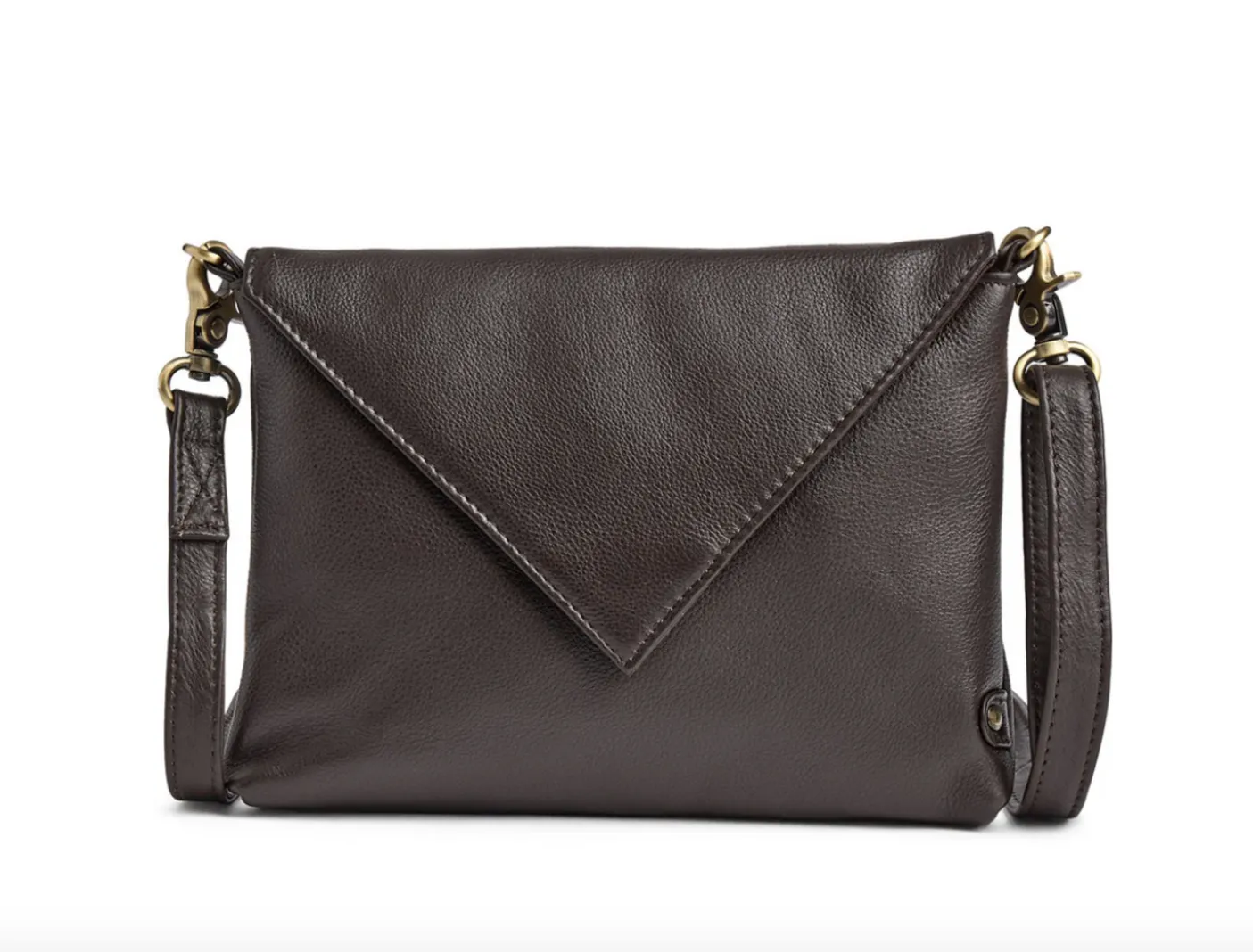 Denne clutch er en moderne klassiker med et cool og eksklusivt twist. Fremstillet i smukt skind udstråler den elegance, luksus og tidløs stil. Det stilrene design brydes af den trekantede flap foran, som tilfører tasken kant og karakter. Den grafiske form gør clutchen trendy og moderne, samtidig med at den bevarer sit klassiske udtryk.