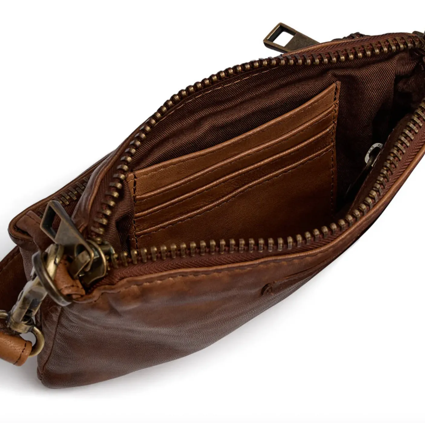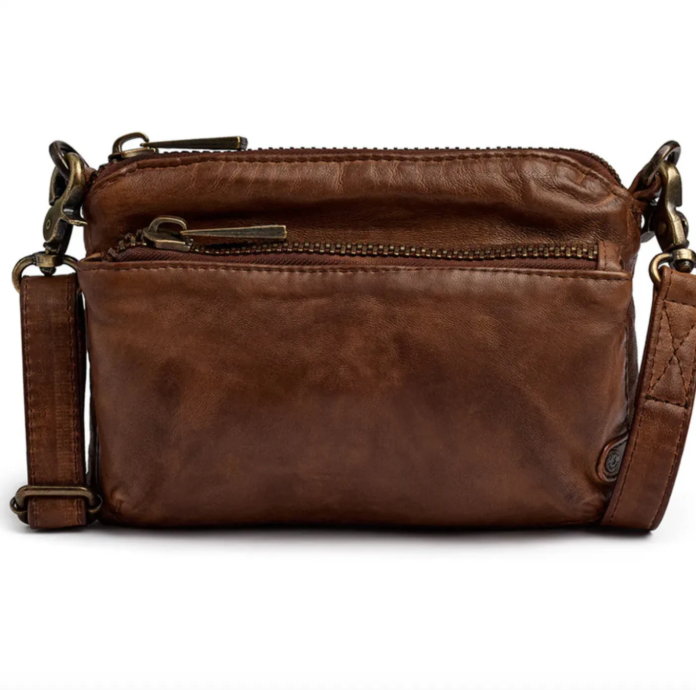 Tasken har to separate rum, begge med lynlåslukning – ét på fronten og ét øverst – så du nemt kan organisere dine ejendele og holde styr på det vigtigste. Det gør tasken ideel til mobil, kort, nøgler og lidt ekstra.